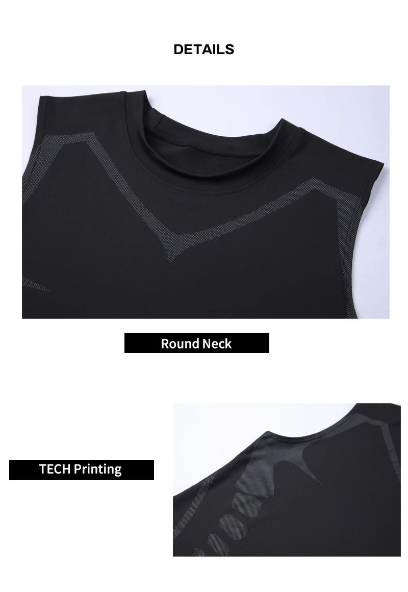 Compression Tank Top Men Gym Shirt Sleeveless Quick Dry Printing Sportswear Male Fitness Bodybuilding Vest Workout Muscle Top