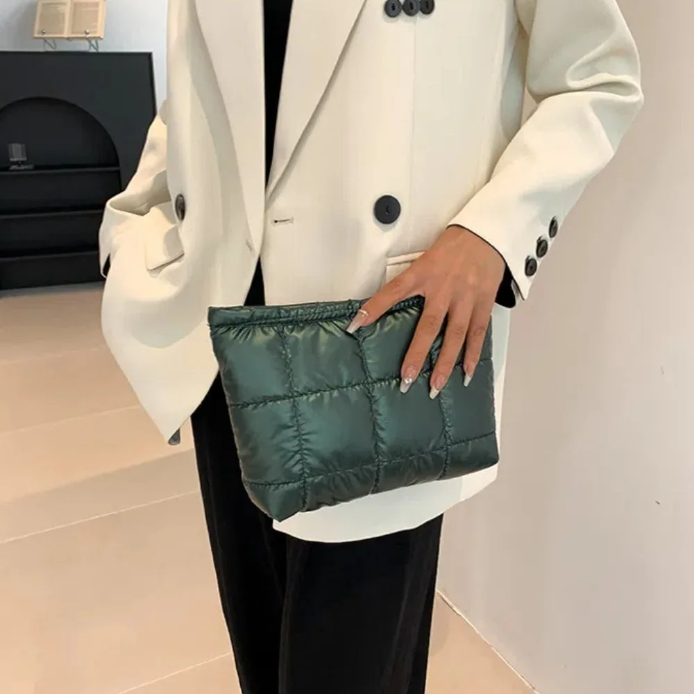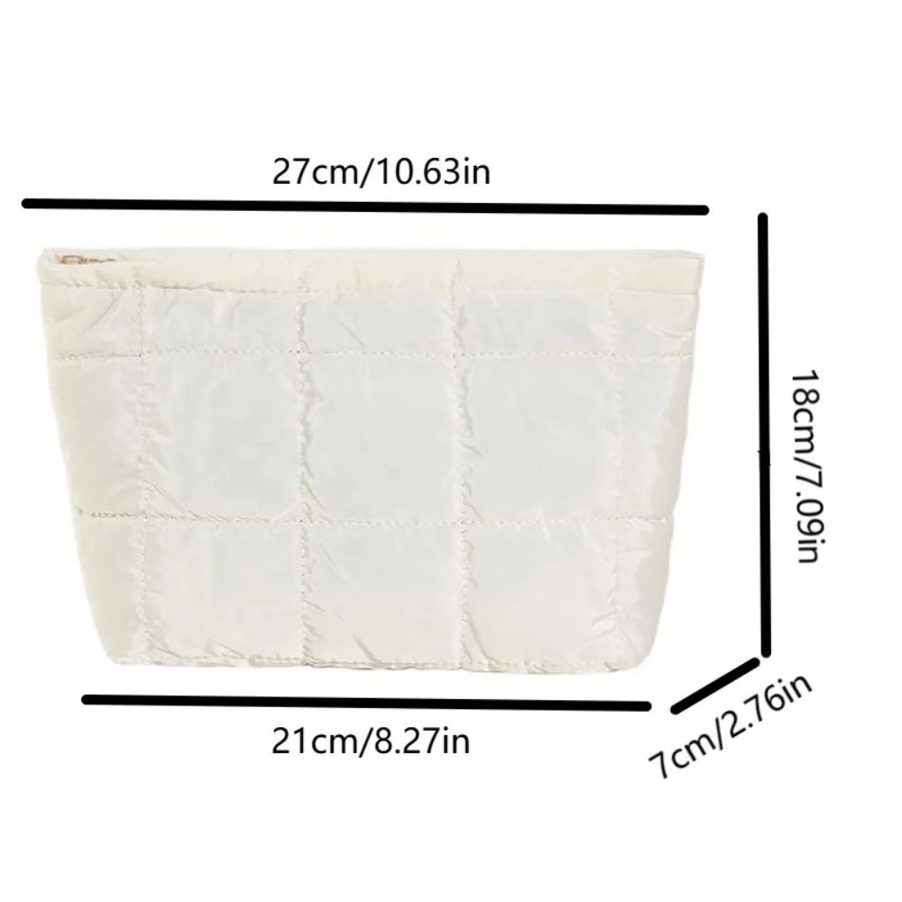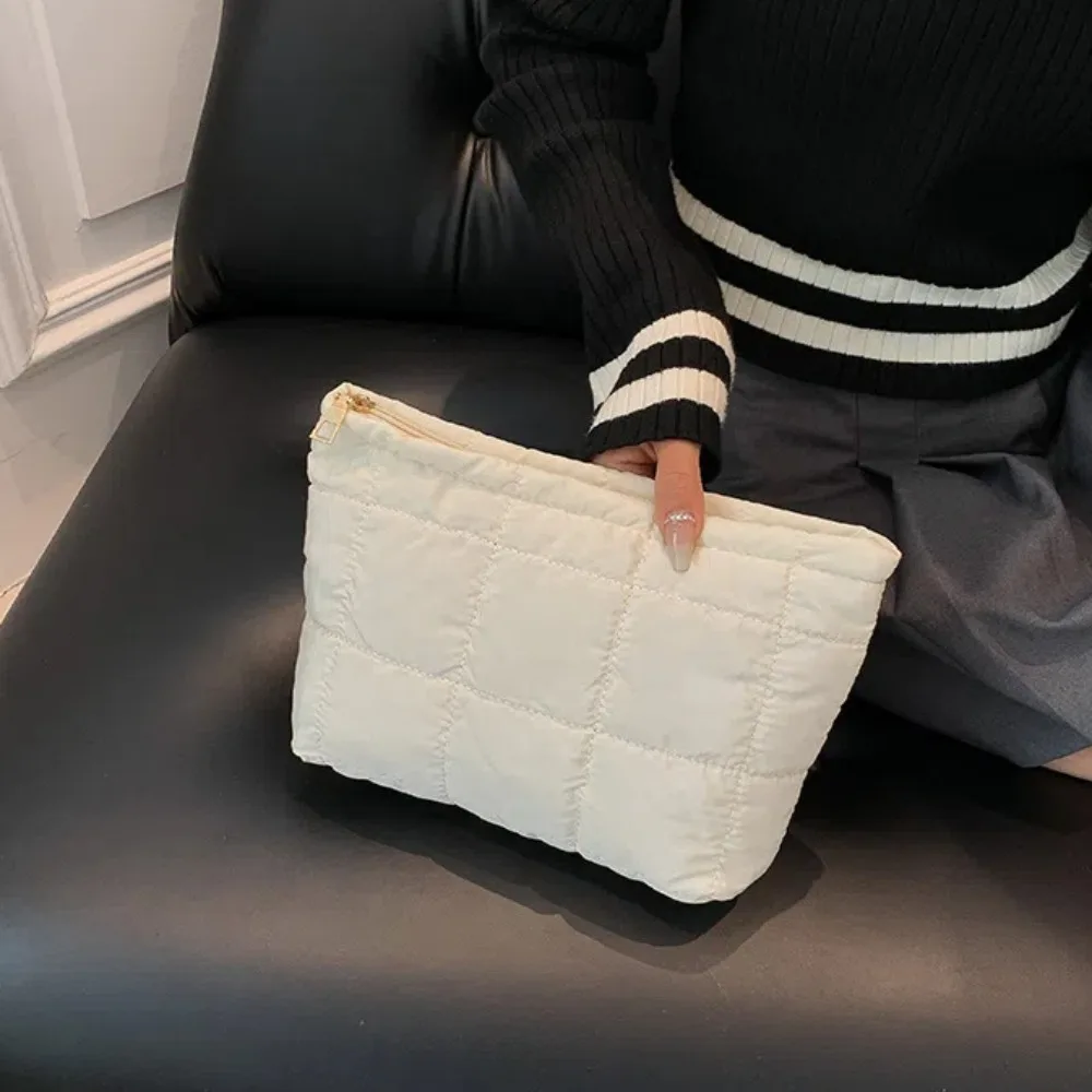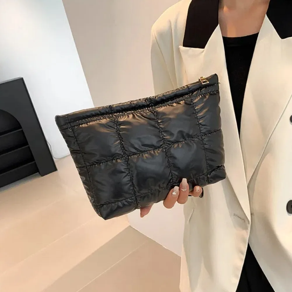 Cotton Filled Puffer Pouch PU Leather Storage Purse Puffer Padded Makeup Bag Waterproof Solid Color Thick Plaid Clutch Bag Work