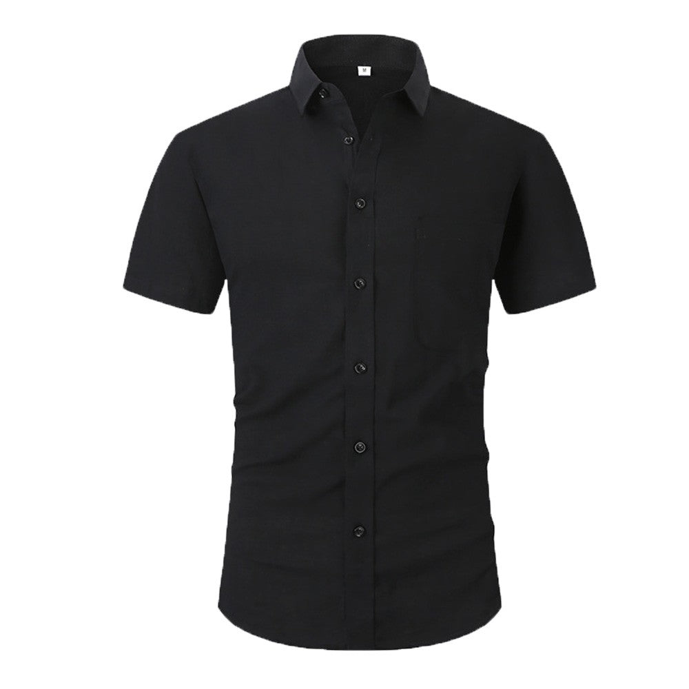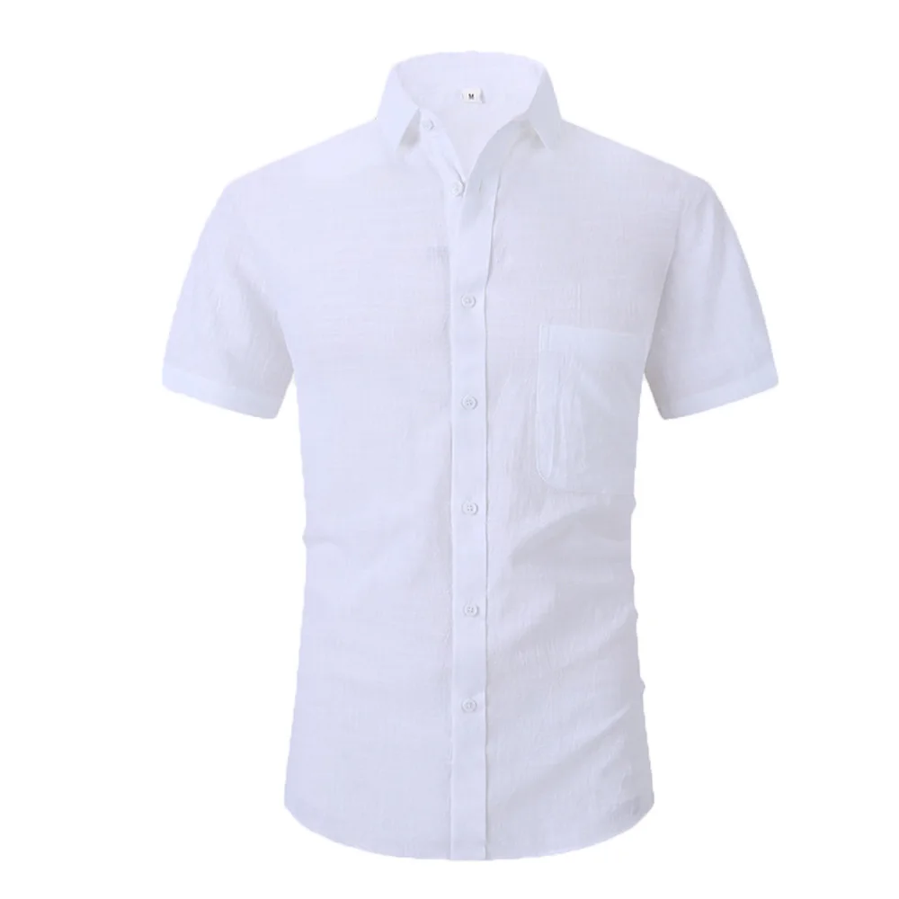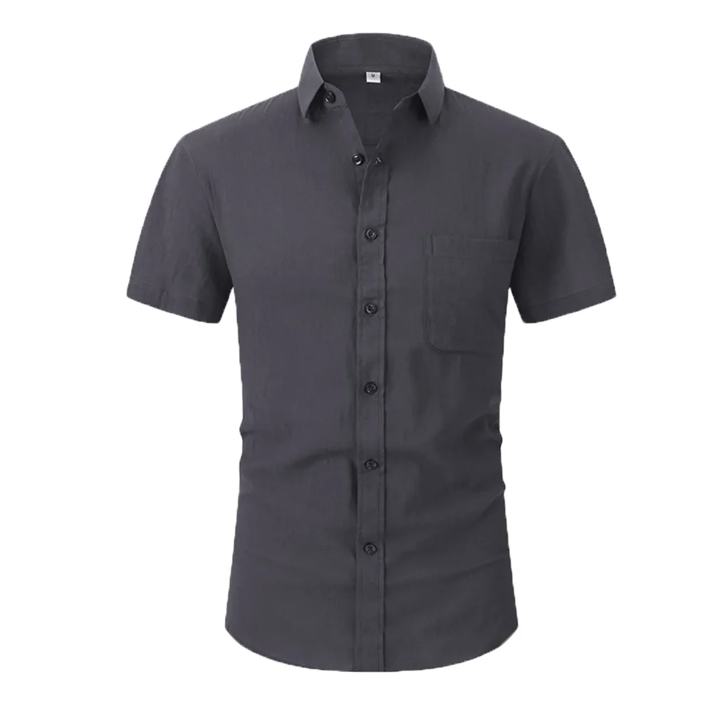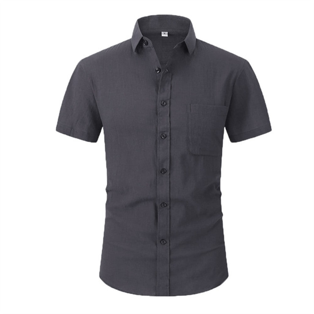 Cotton Line Hot Sale Men's Short-Sleeved Shirts Summer Solid Color Turn-down collar Casual Beach Style Plus Size