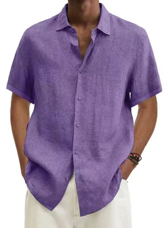 Cotton Linen Blouse Summer Men Turn Down Collar Short Sleeve Button Loose Blouse Tops Oversized S-5XL SZE-ST22092