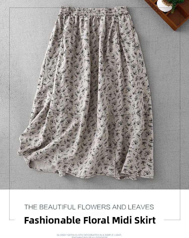 Cotton Linen High Waist Printed Summer New Sle Cool Slimming Hip Covering Floral Skirt Loose Fit Casual Long Skirt