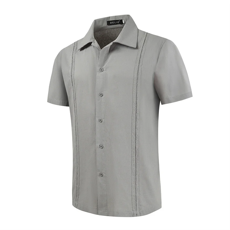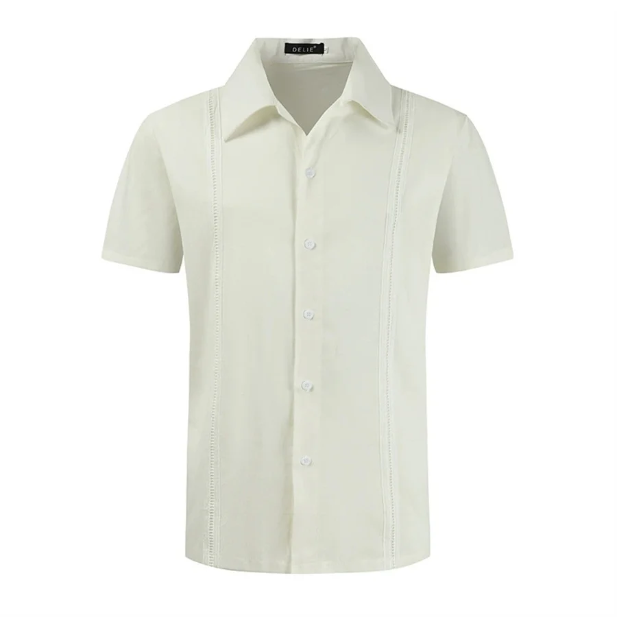 Cotton Linen Men's Guayabera Shirt 2026 New Fashion Short Sleeve Shirts for Men Mexican Cuban Beach Shirt Solid Color Tees