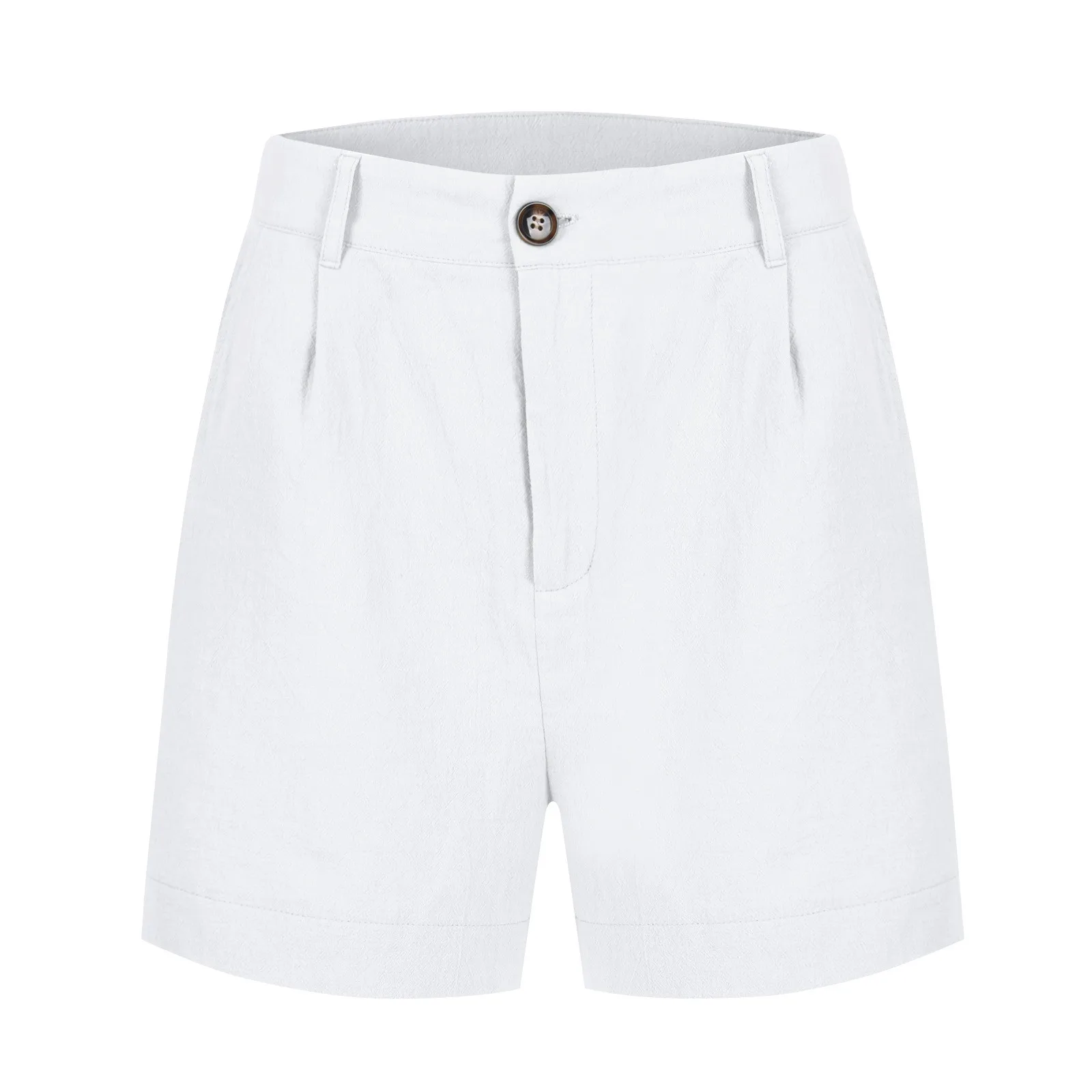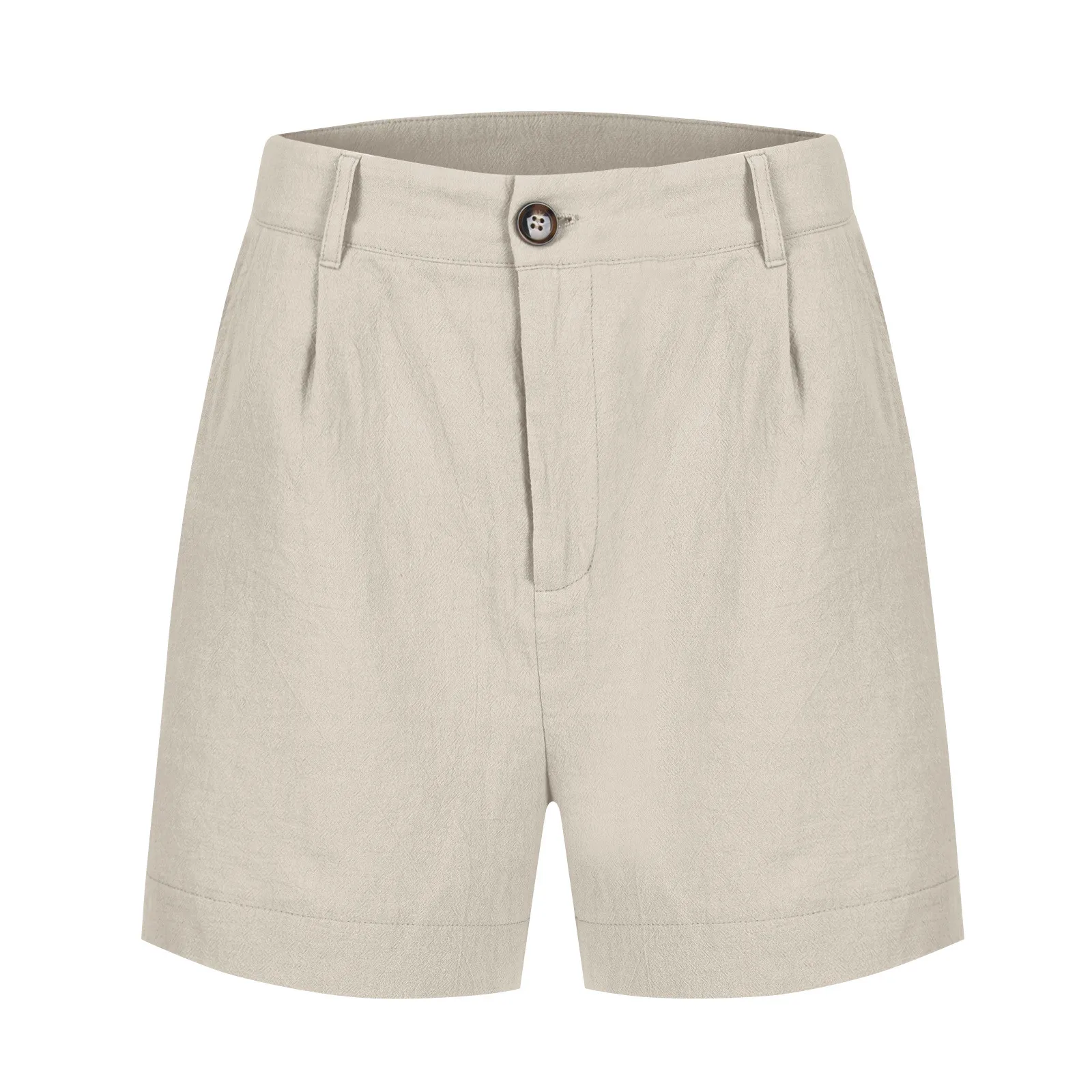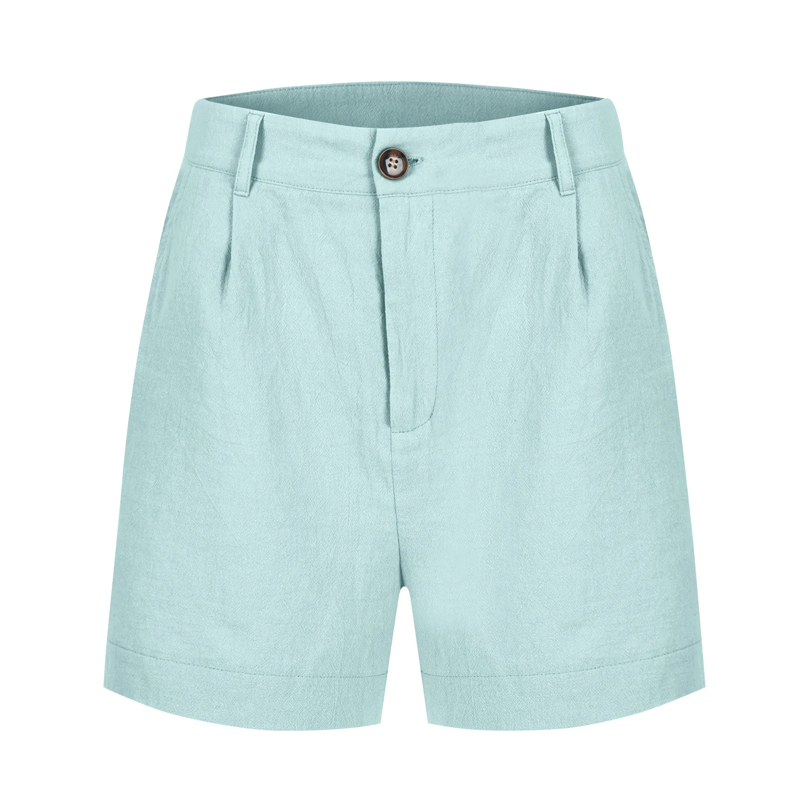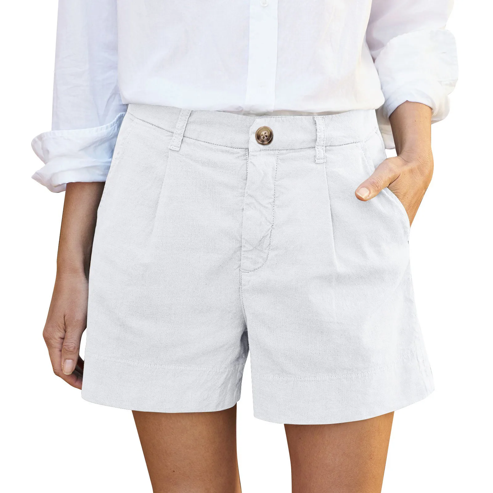 Cotton Linen Solid Shorts For Women Button High Waist Summer Loose Casual Pockets Shorts Female Pants Women Clothing