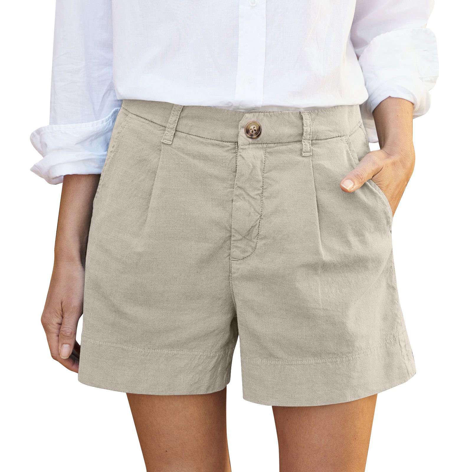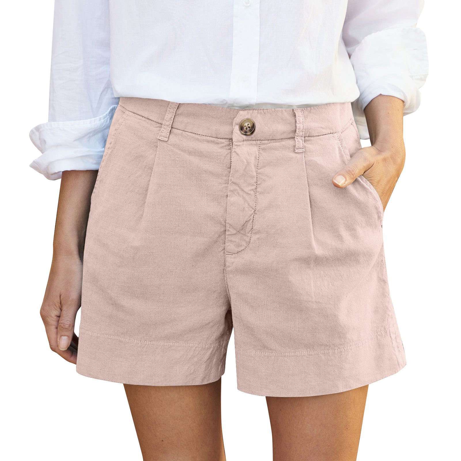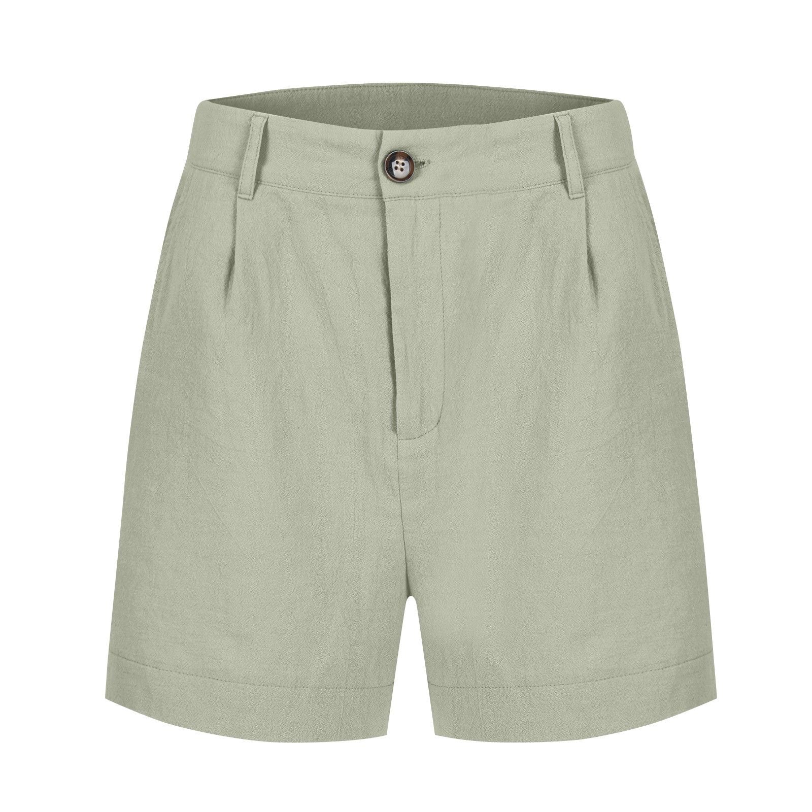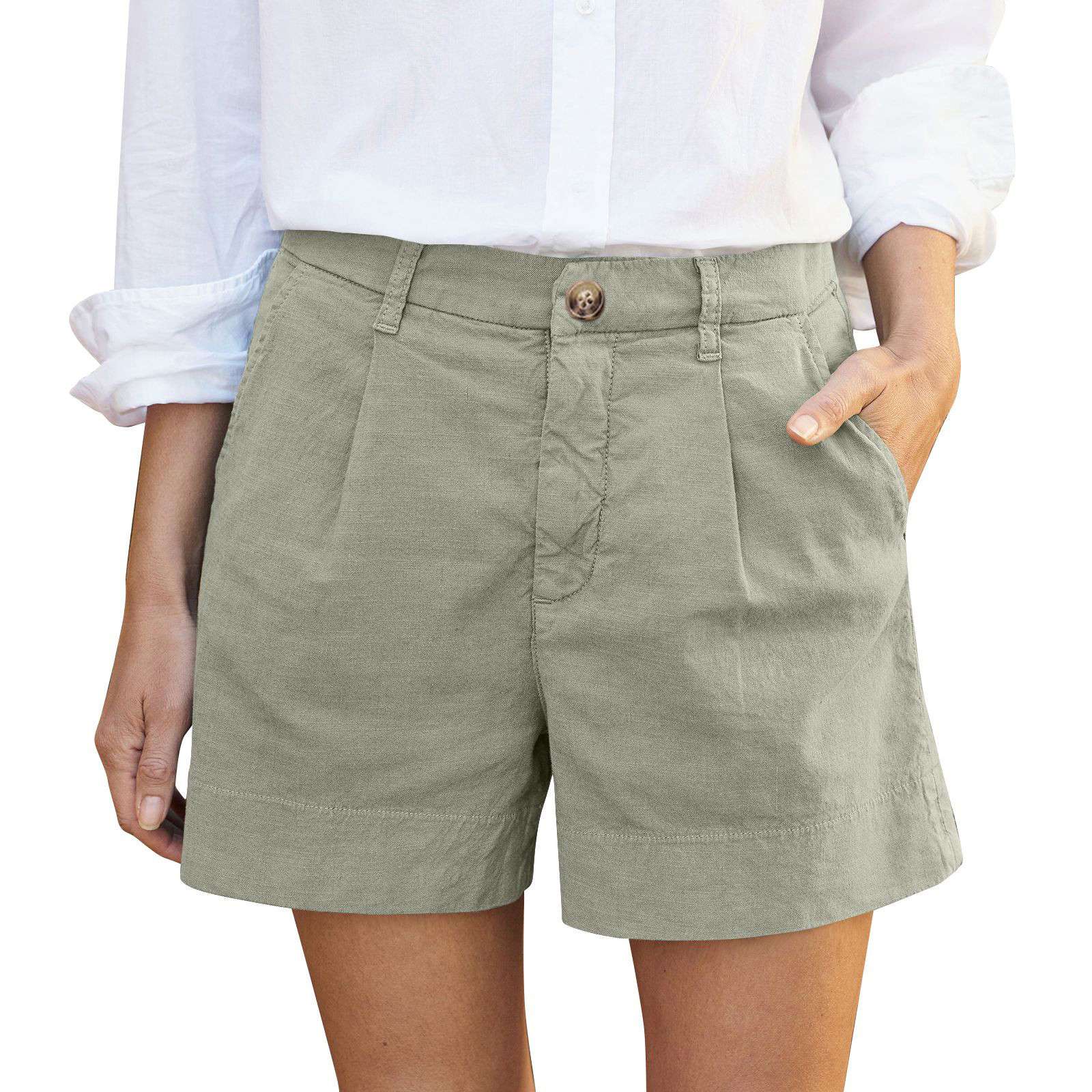 Cotton Linen Solid Shorts For Women Button High Waist Summer Loose Casual Pockets Shorts Female Pants Women Clothing