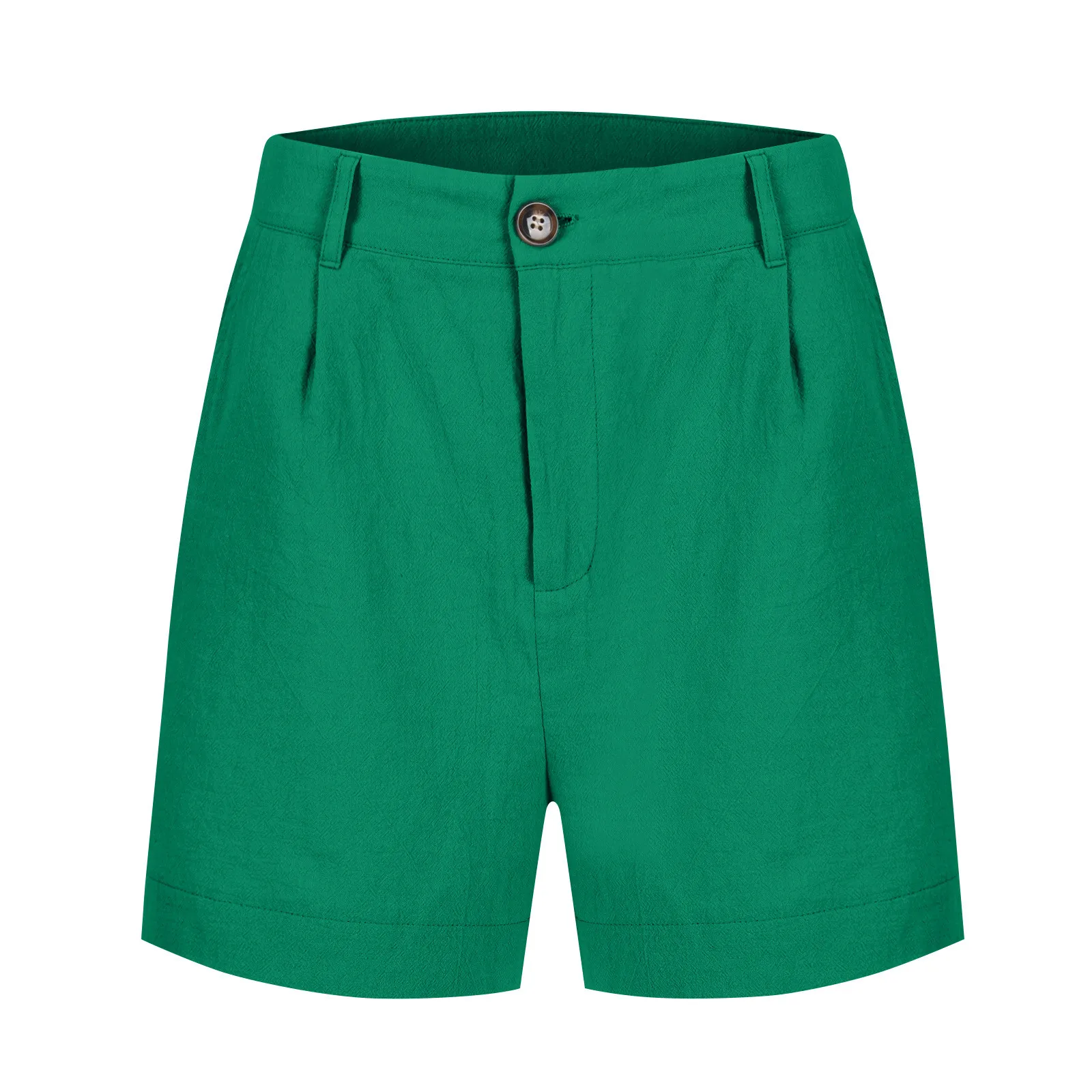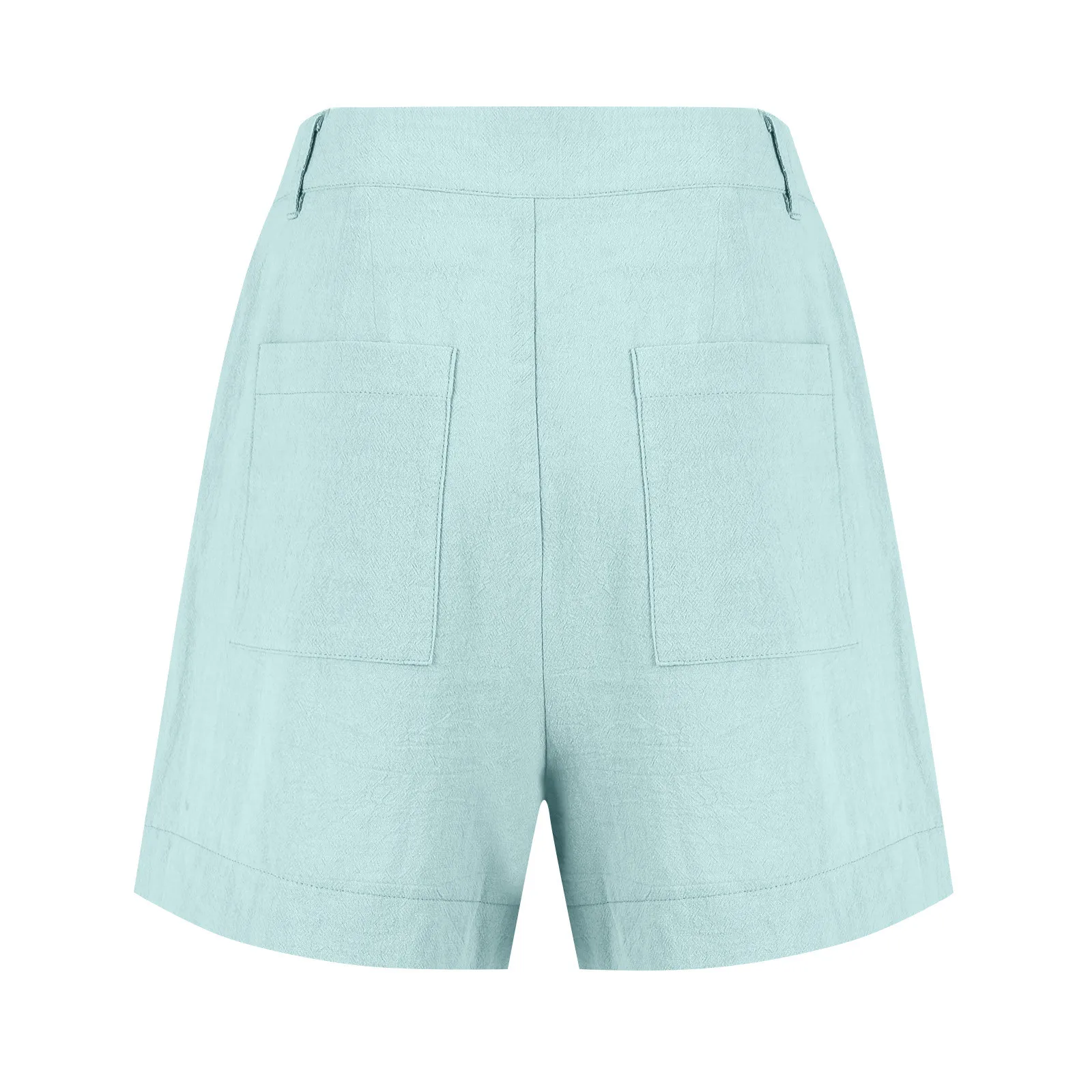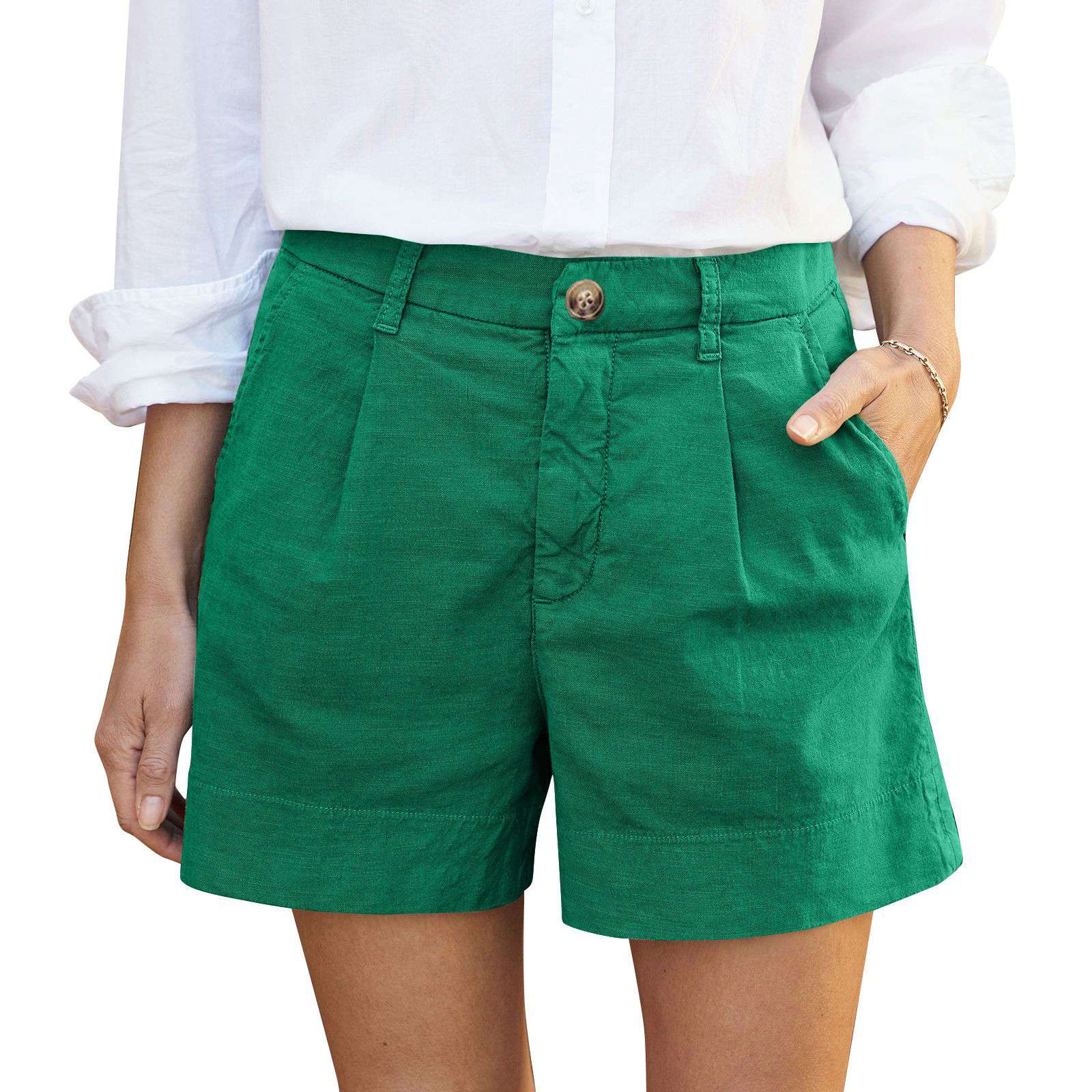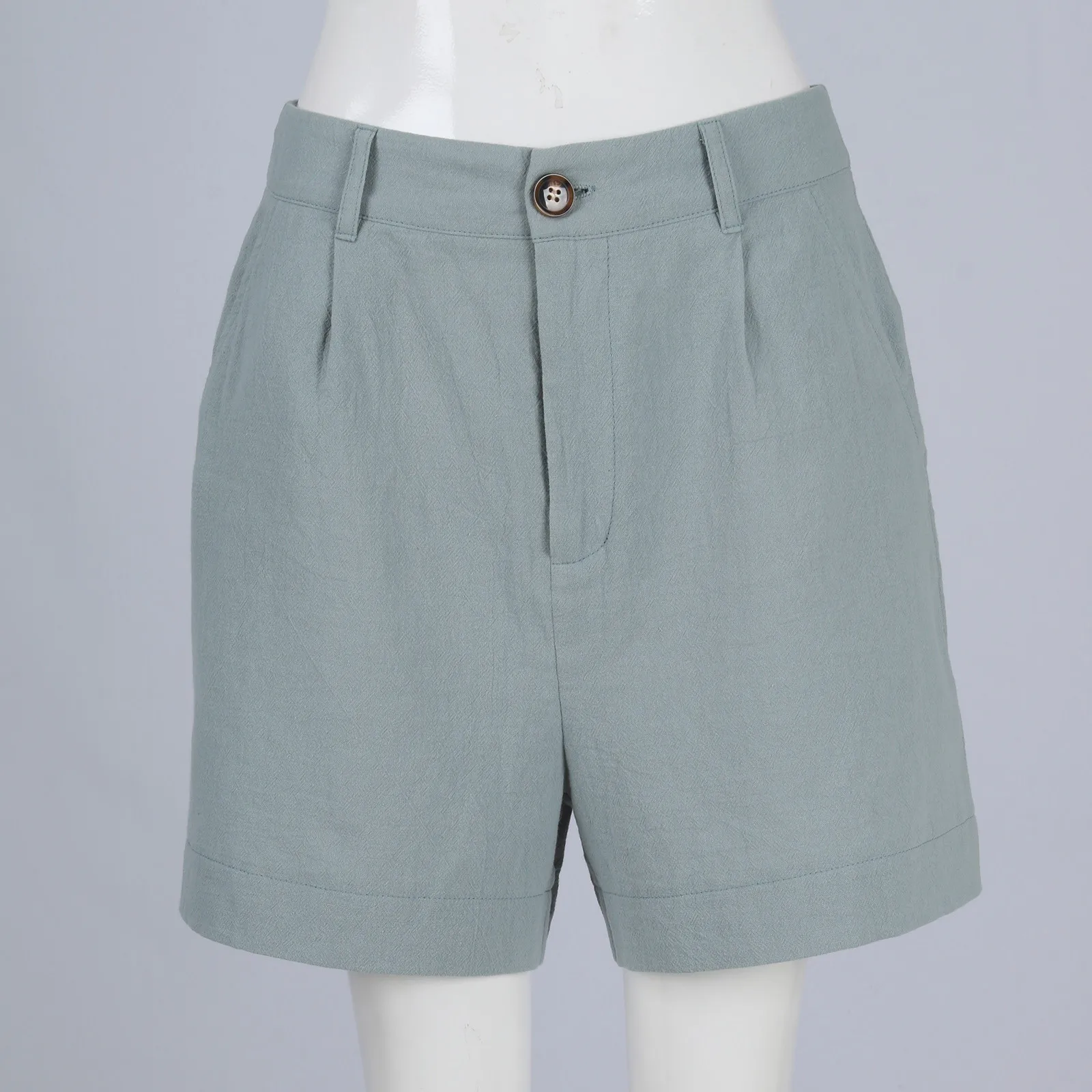Cotton Linen Solid Shorts For Women Button High Waist Summer Loose Casual Pockets Shorts Female Pants Women Clothing