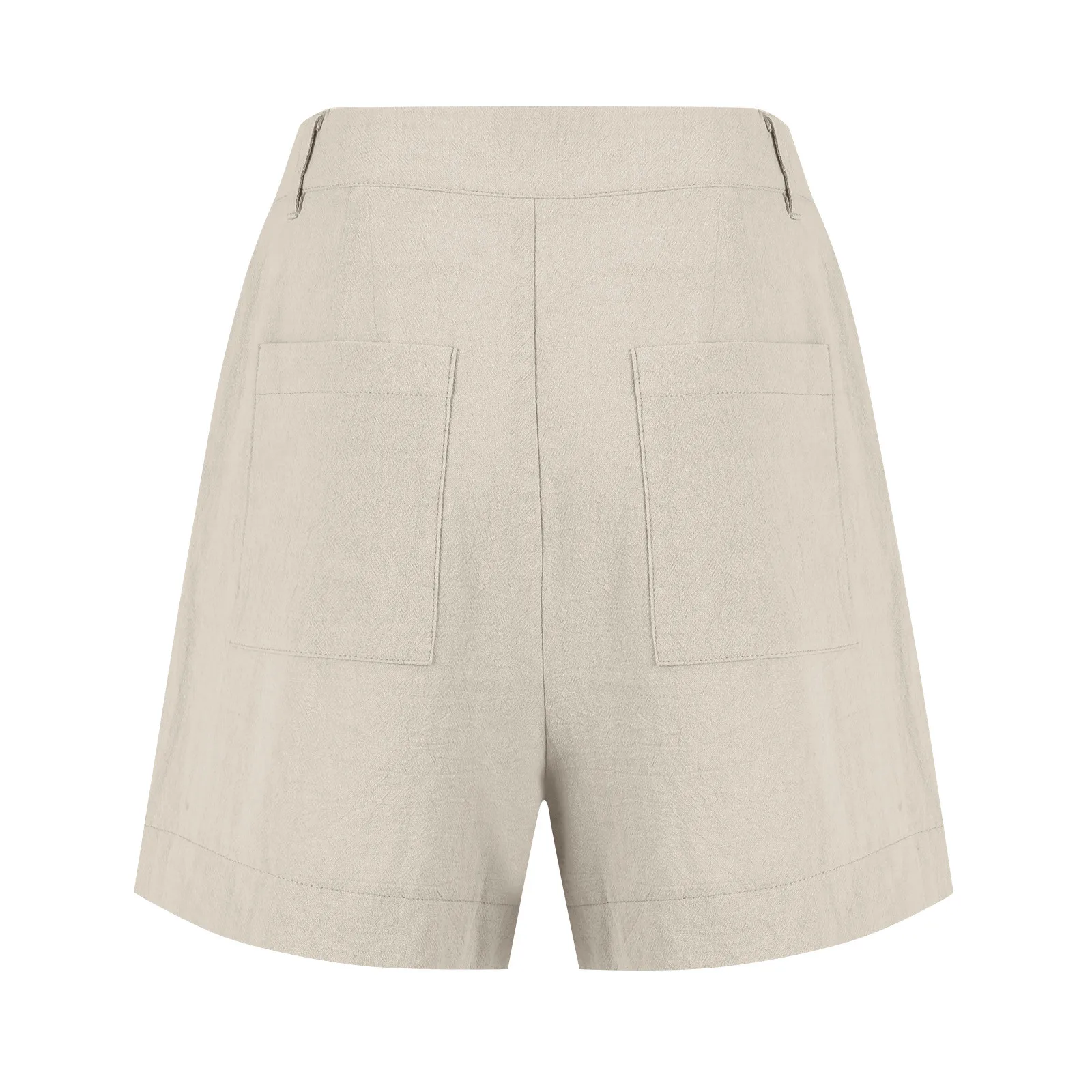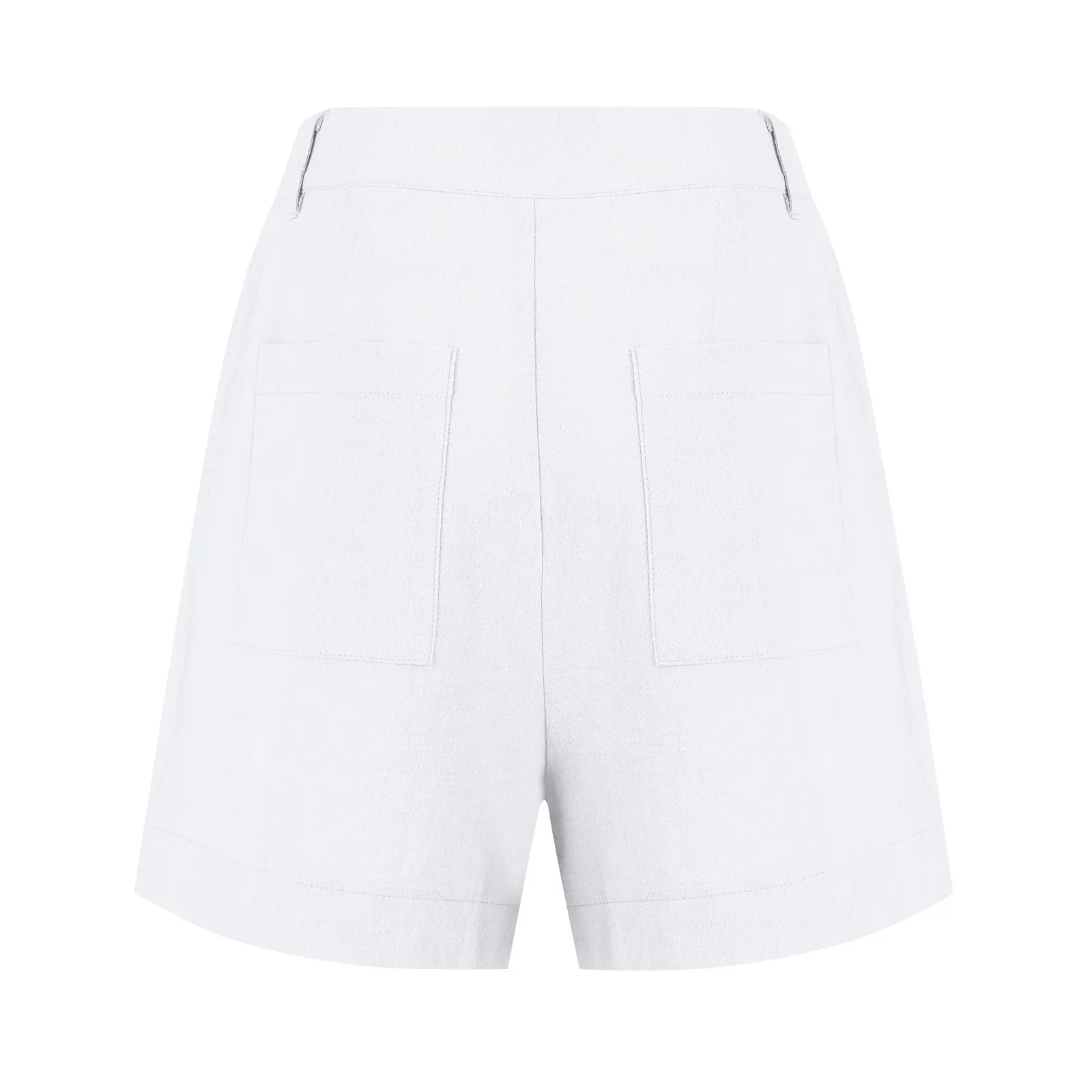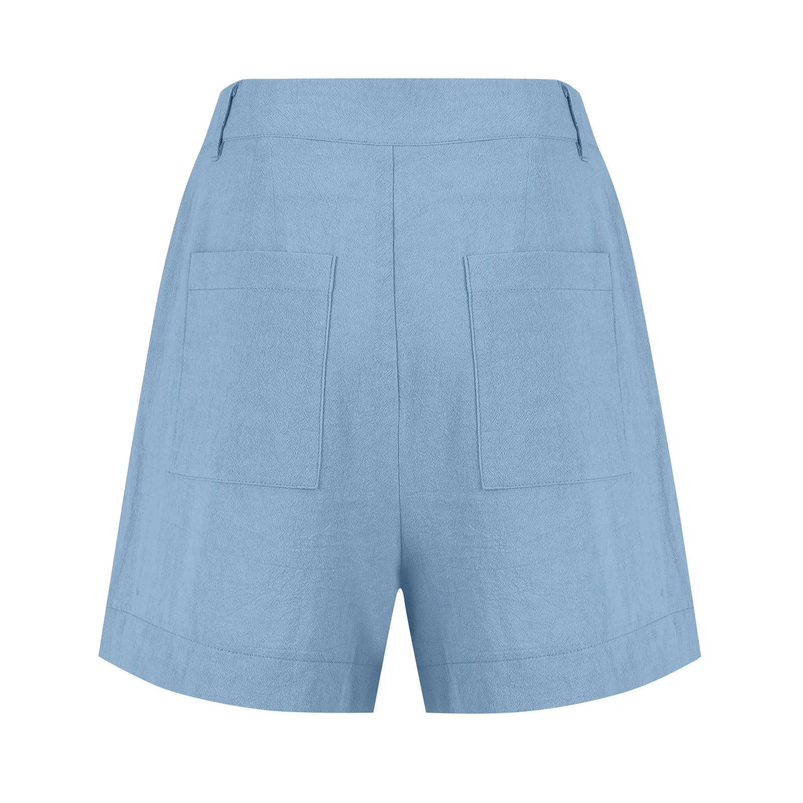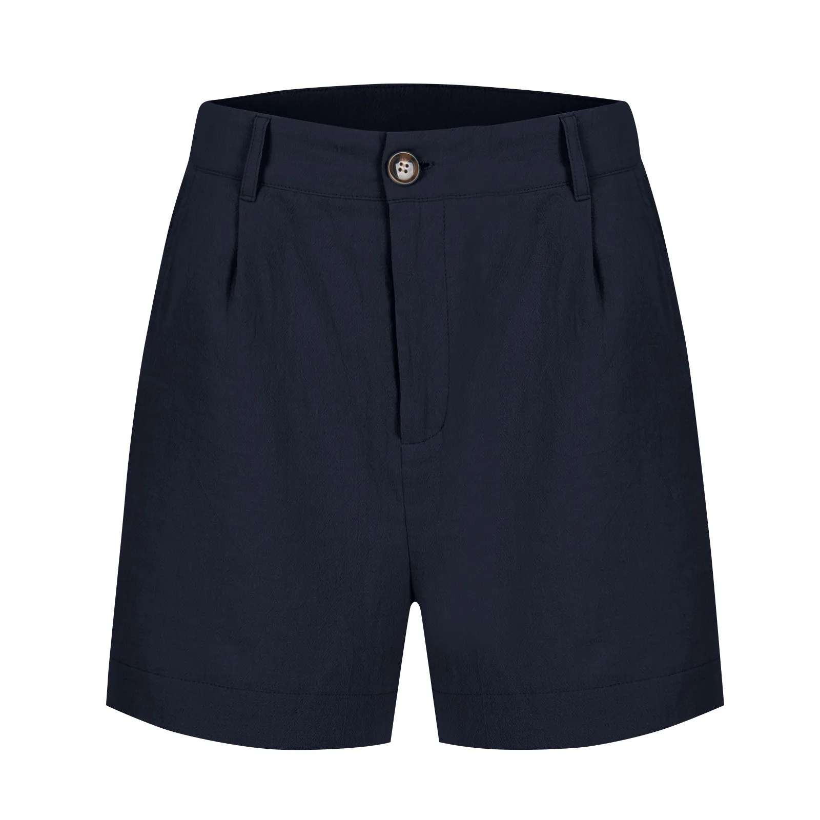 Cotton Linen Solid Shorts For Women Button High Waist Summer Loose Casual Pockets Shorts Female Pants Women Clothing