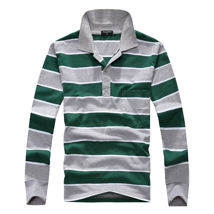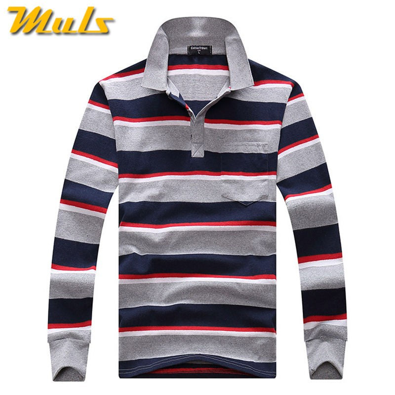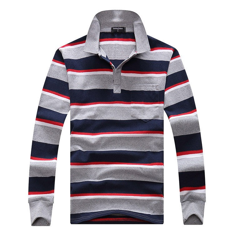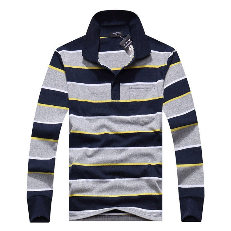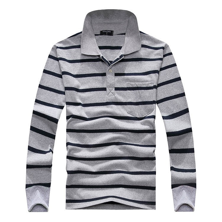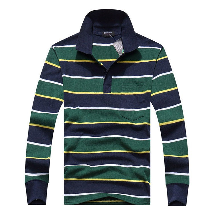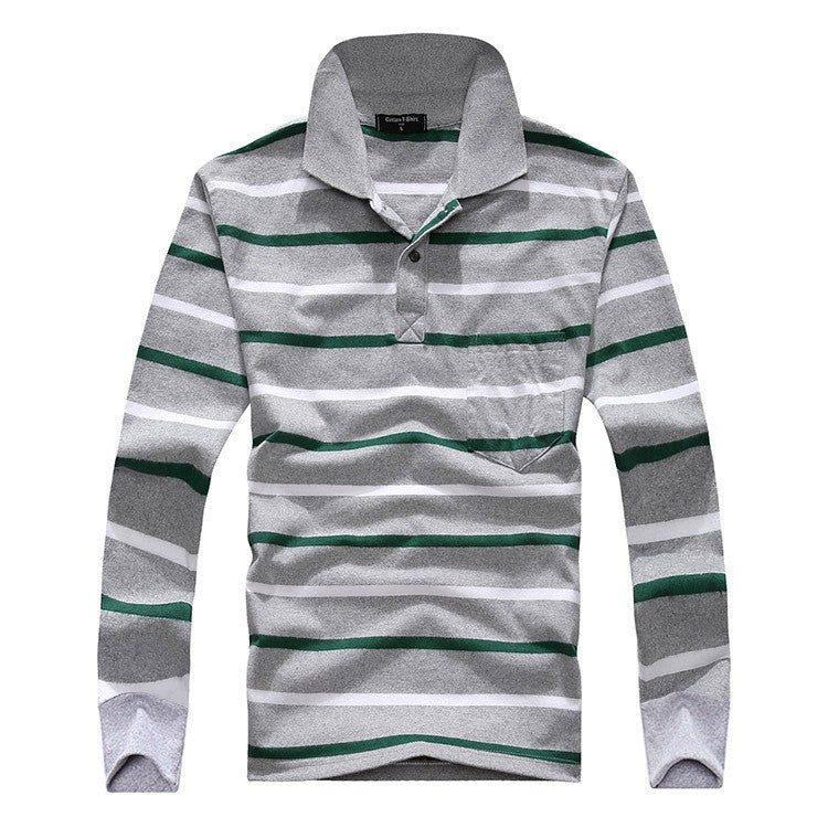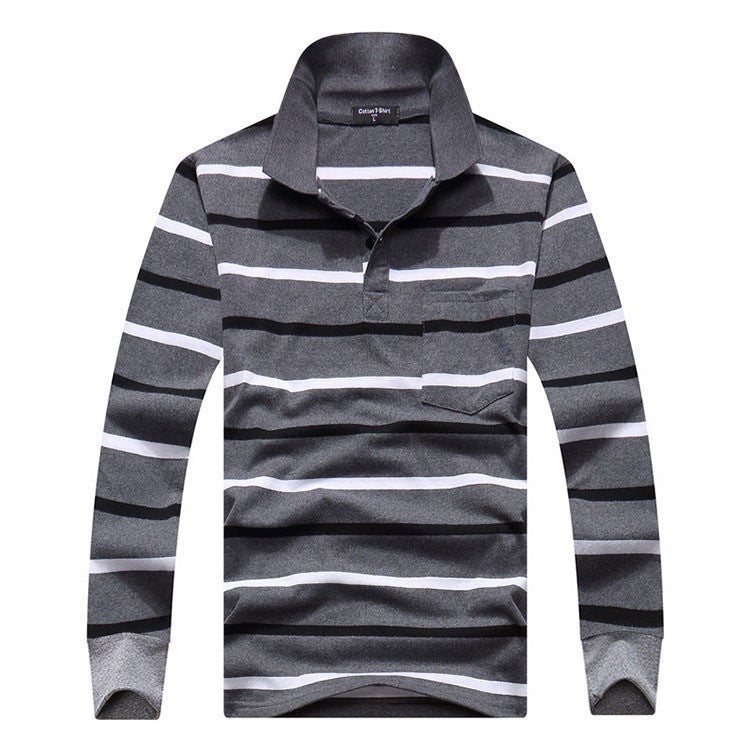 Cotton Polos Men Long Sleeve Mens Polo Shirt Spring Autumn Striped Male Polo Dress Classic Business 2018 Father Gift Drop Ship