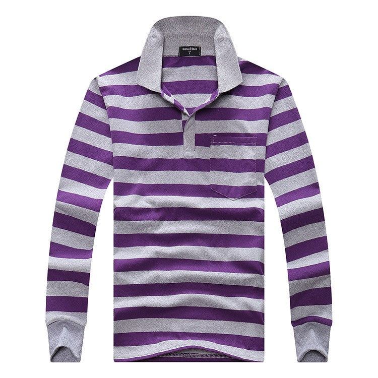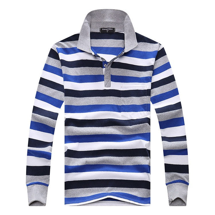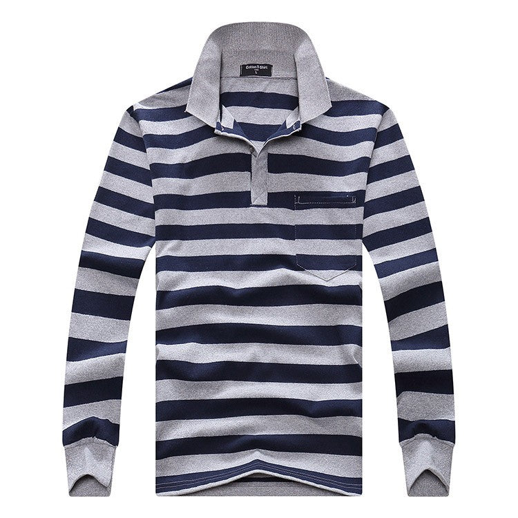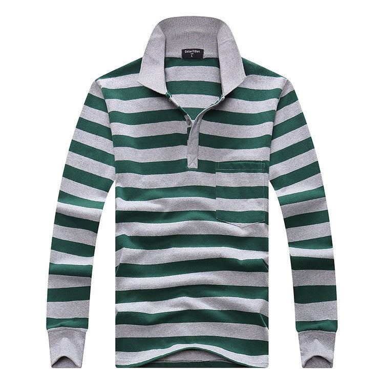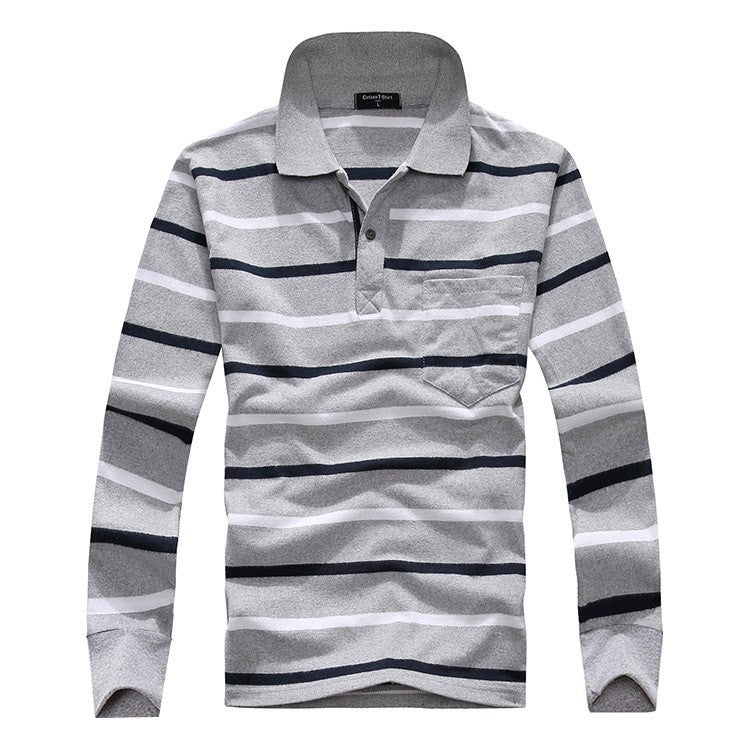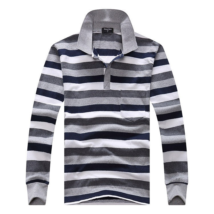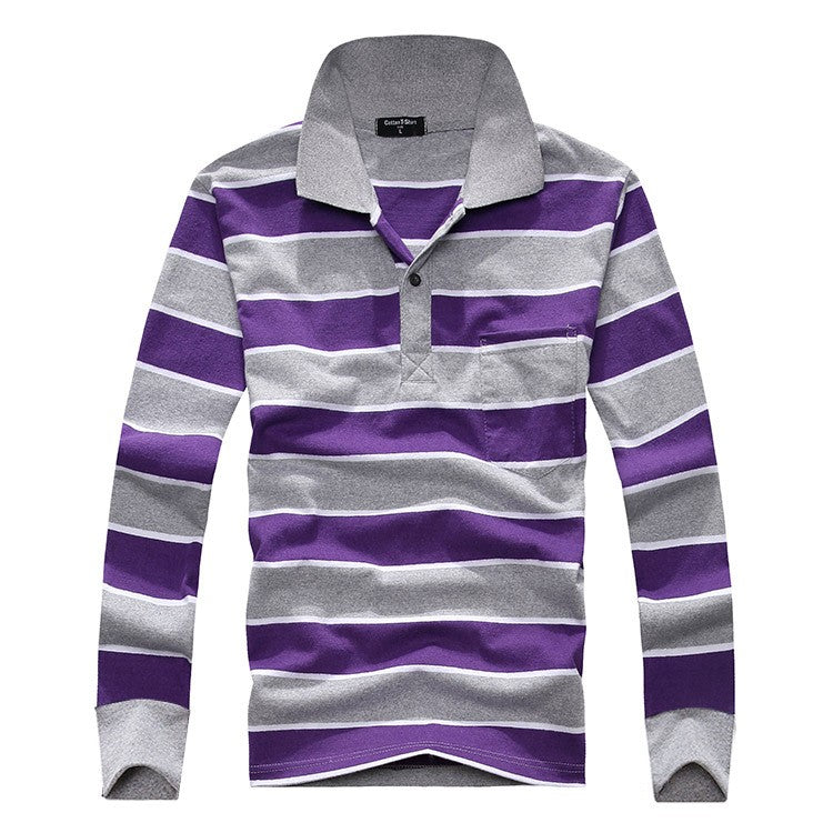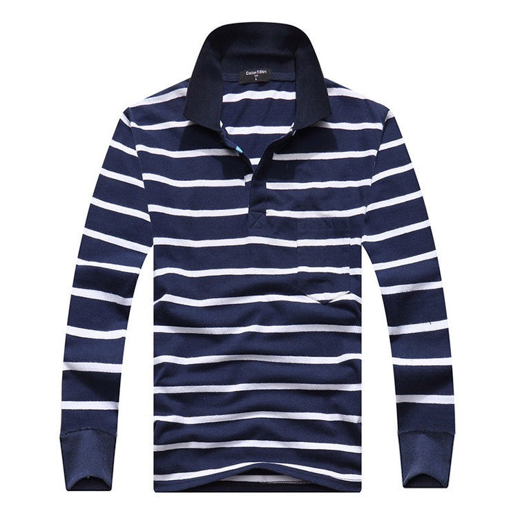 Cotton Polos Men Long Sleeve Mens Polo Shirt Spring Autumn Striped Male Polo Dress Classic Business 2018 Father Gift Drop Ship