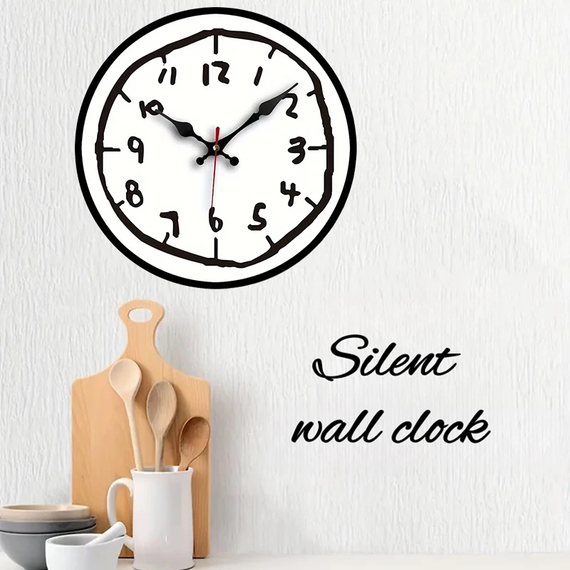 Creative Hand Drawing Wooden Silent Hanging Wall Clock, For Living Room, Office, Study Room, Bedroom, Home Decoration