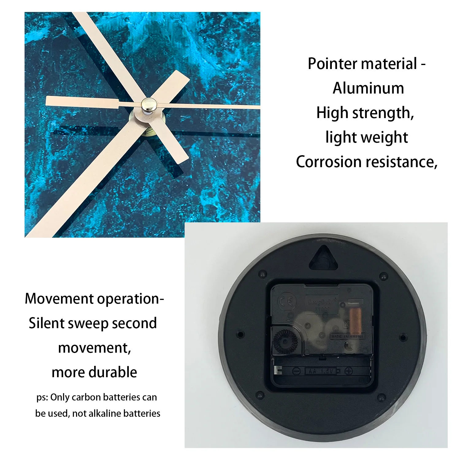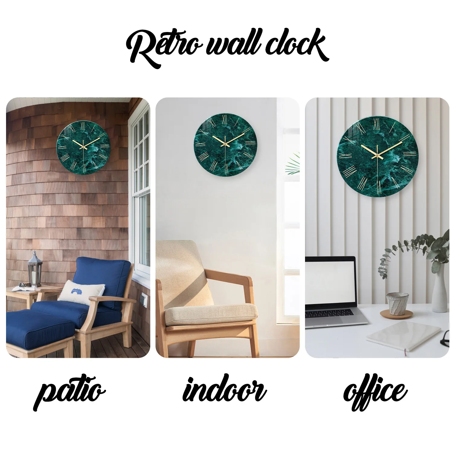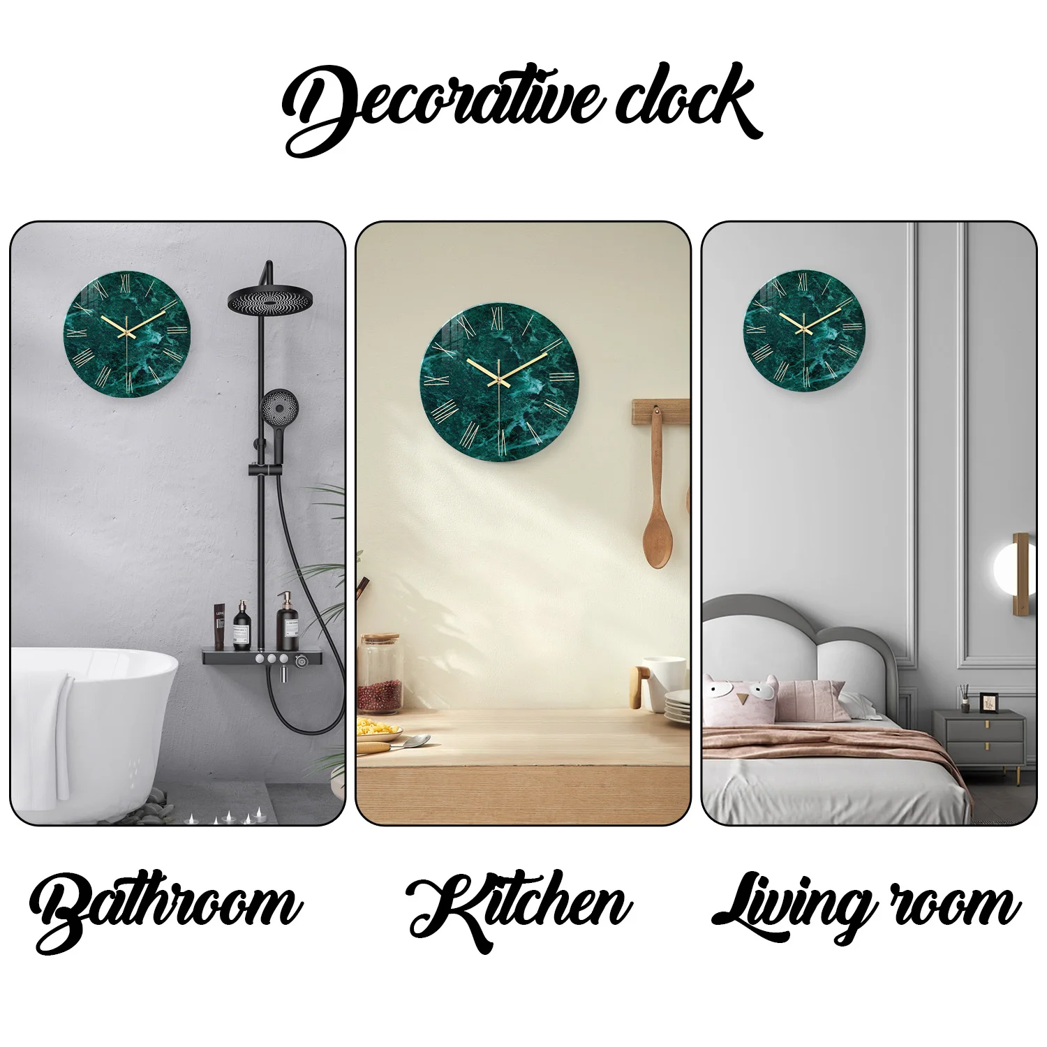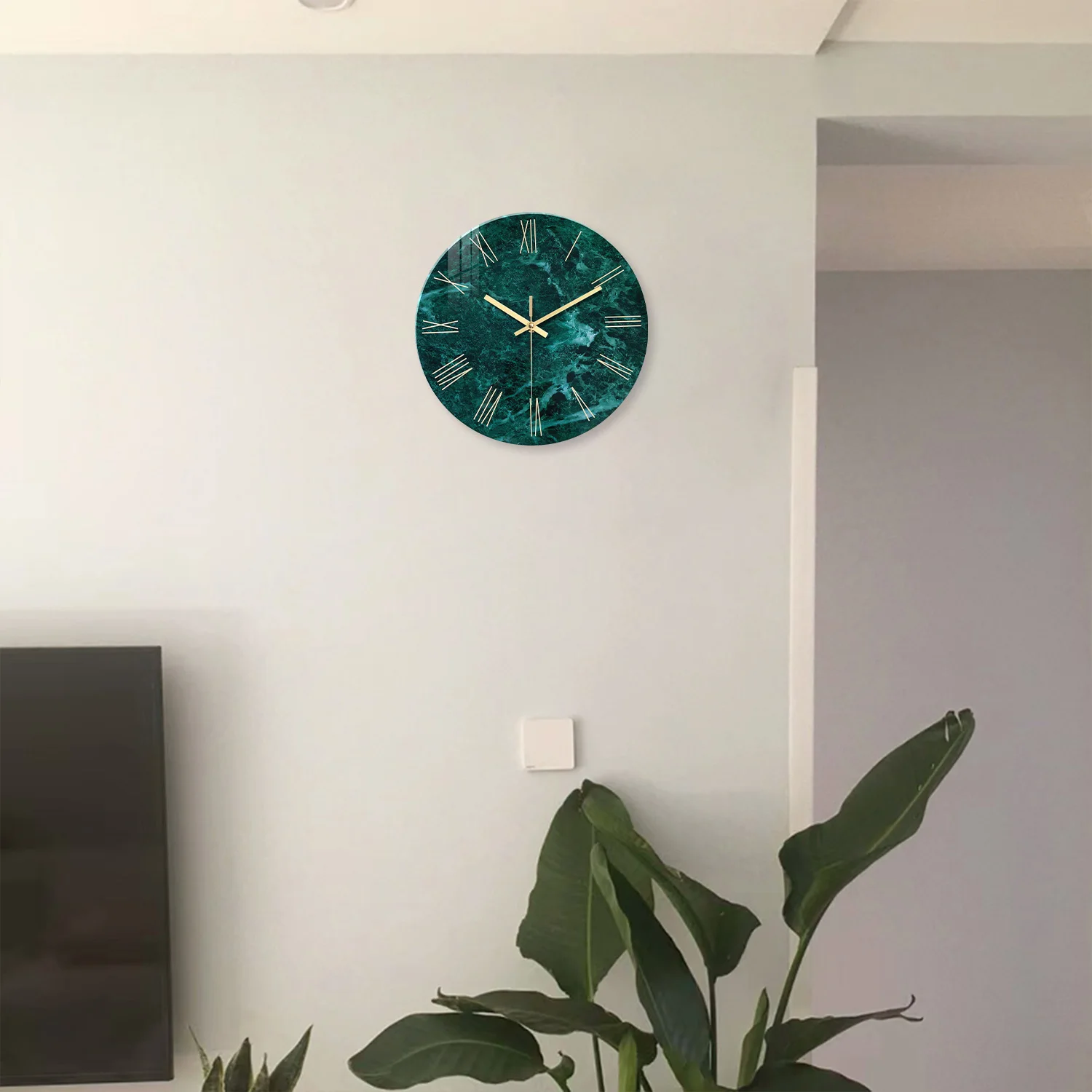 Creative Stylish Dark Green Marble Texture Pattern Tempered Glass Wall Clock Living Room Bedroom Kitchen Home Decoration Wall Clock Silent Quartz Clock Holiday Gift 12 Inches 14 Inches 16inch (Without Batteries)