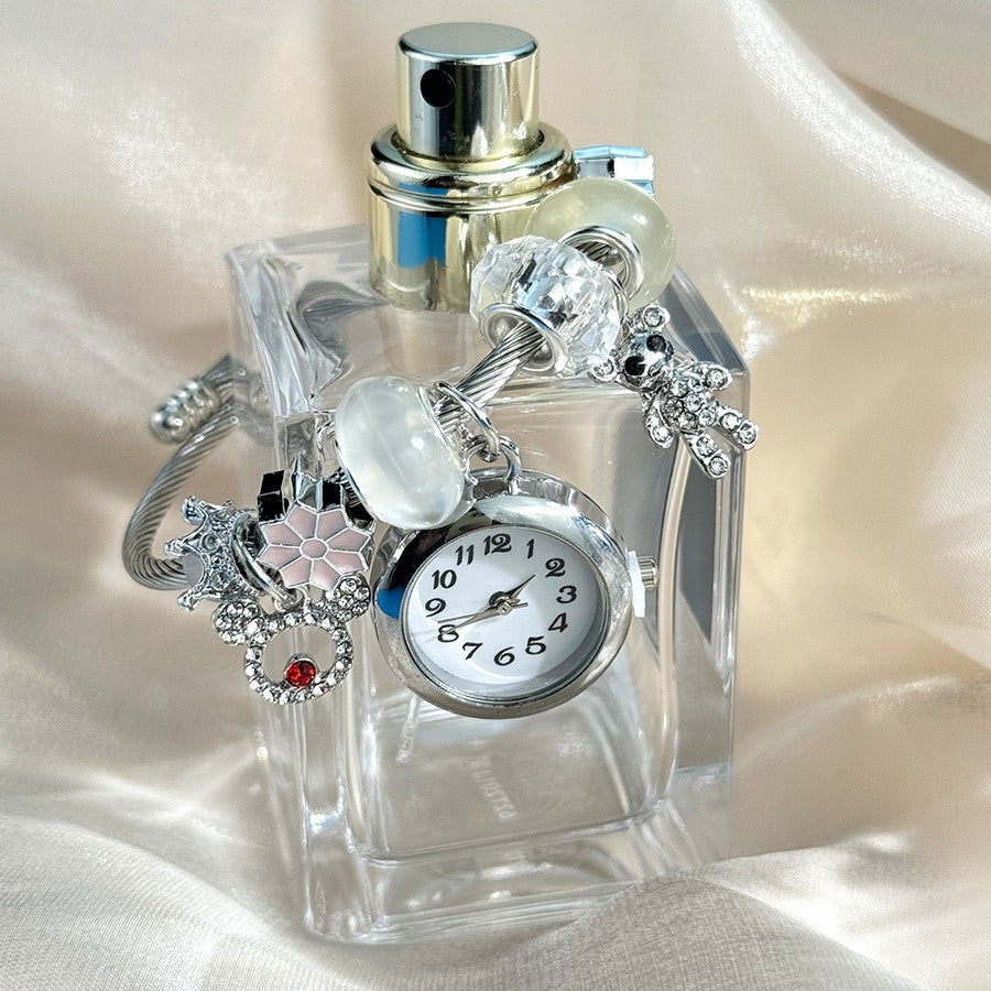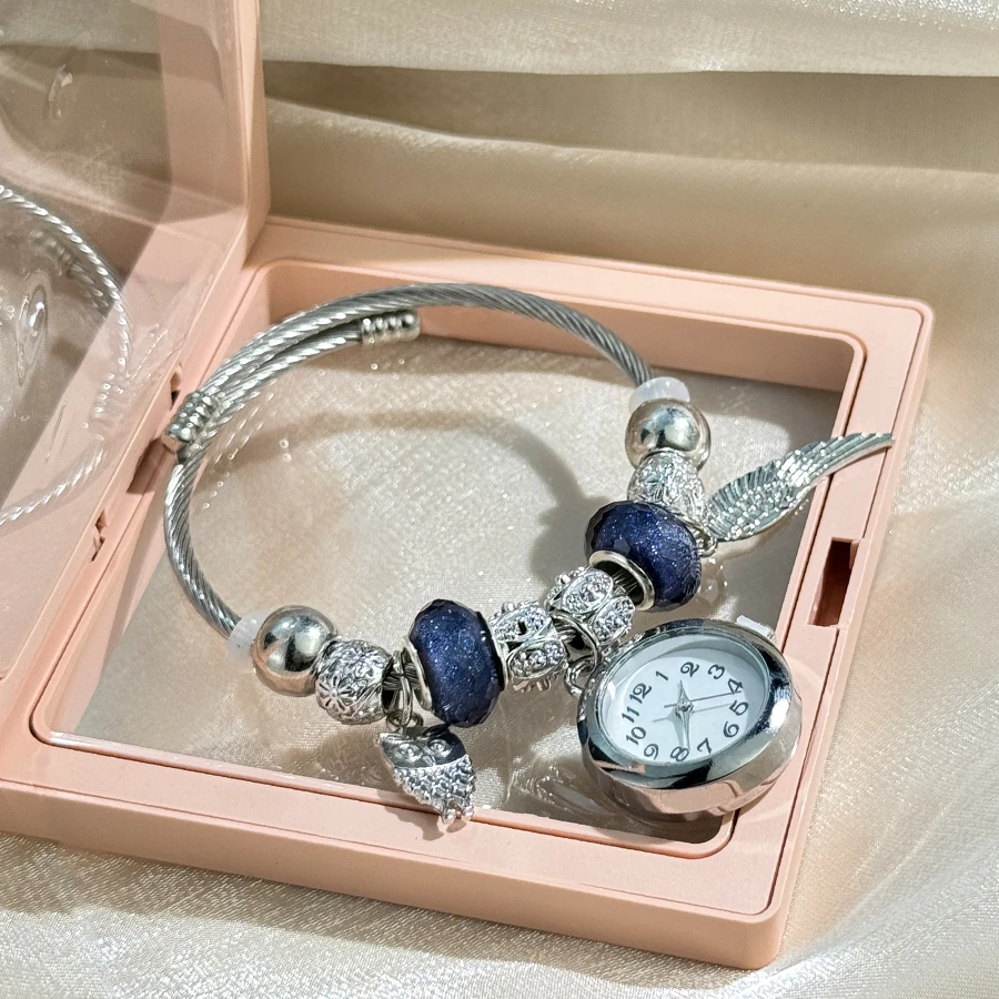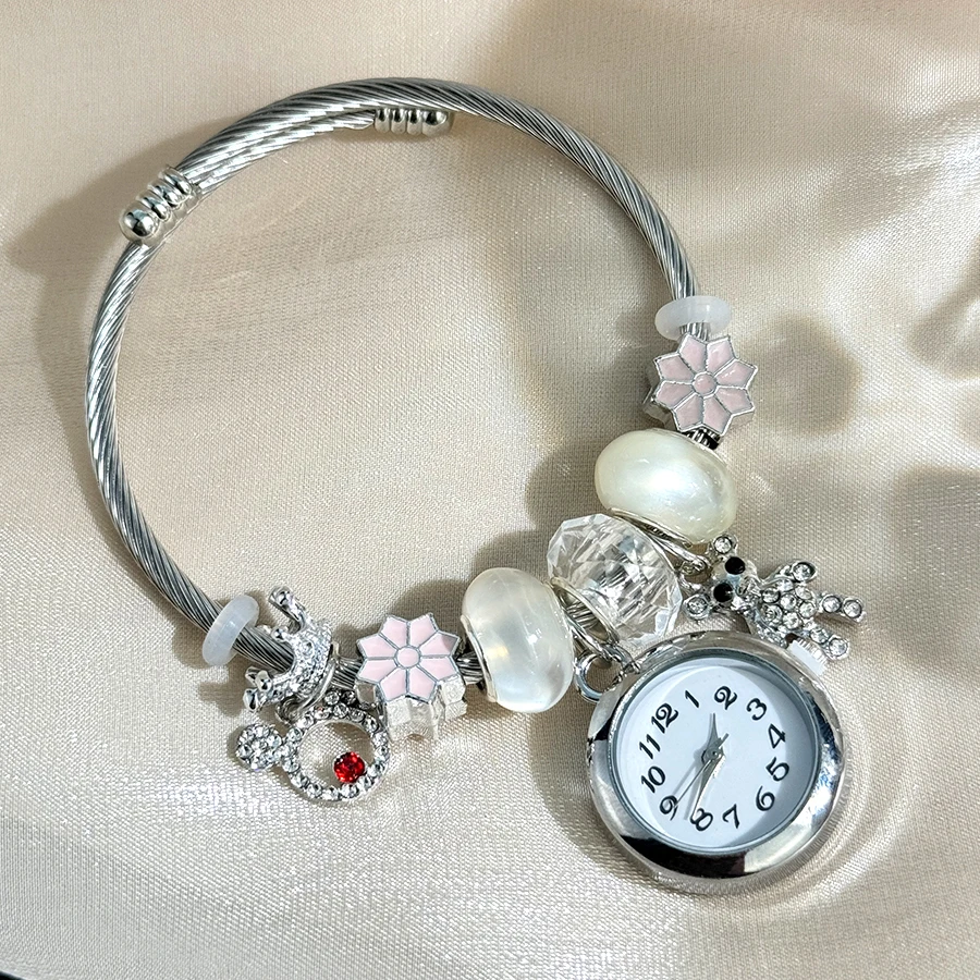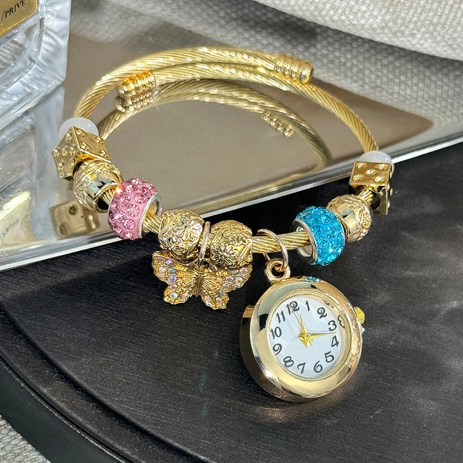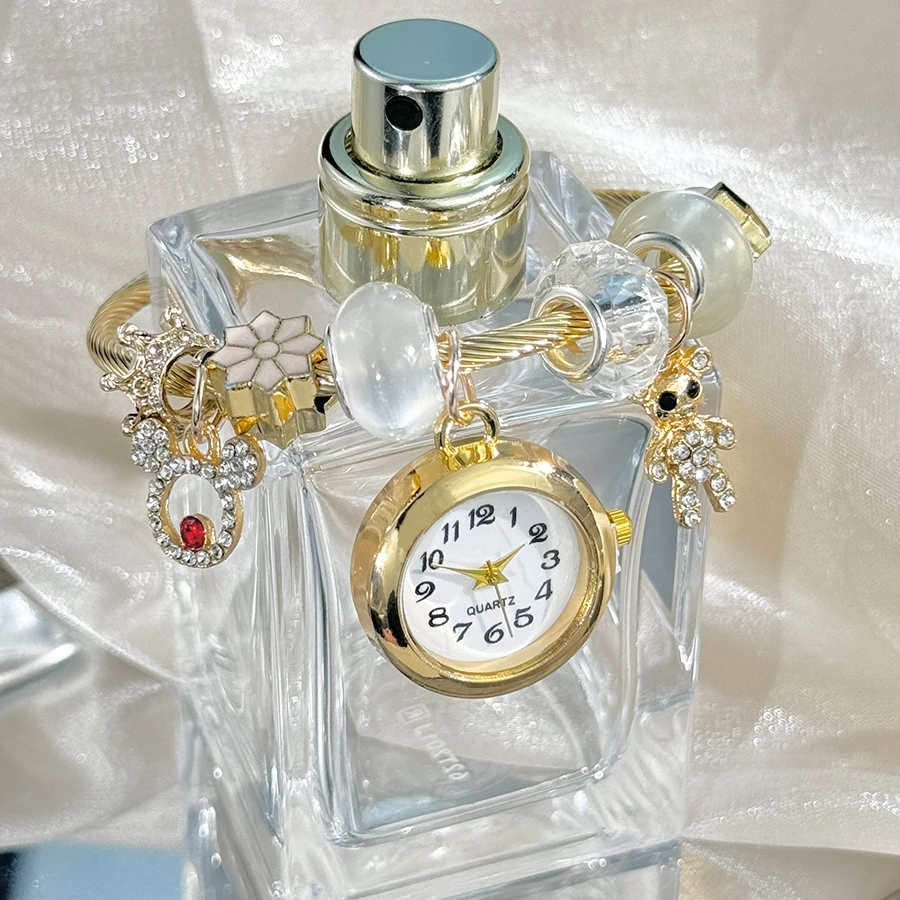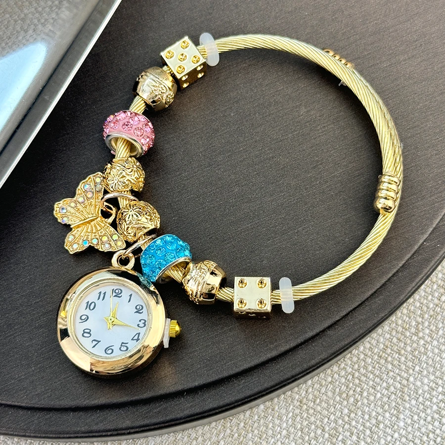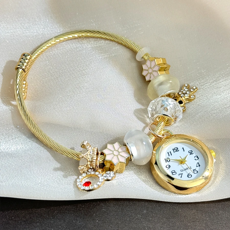 Cross-border Gold Bracelet Watch Adjustable opening Alloy bracelet Quartz Watch Beaded Small flower bracelet Watch
