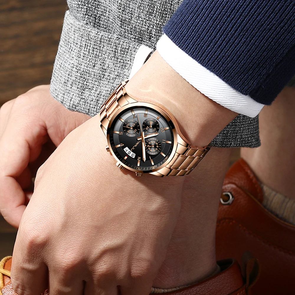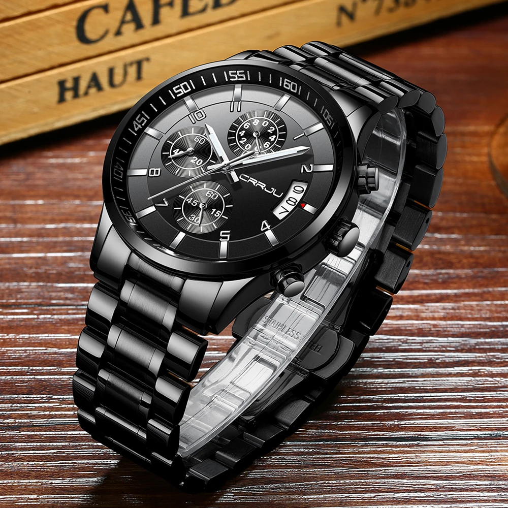 CRRJU Men Quartz Wristwatches Luxury Brand Sporty Chronograph Watches with 316 Stainless Steel Luminous Hands Male Clock Red
