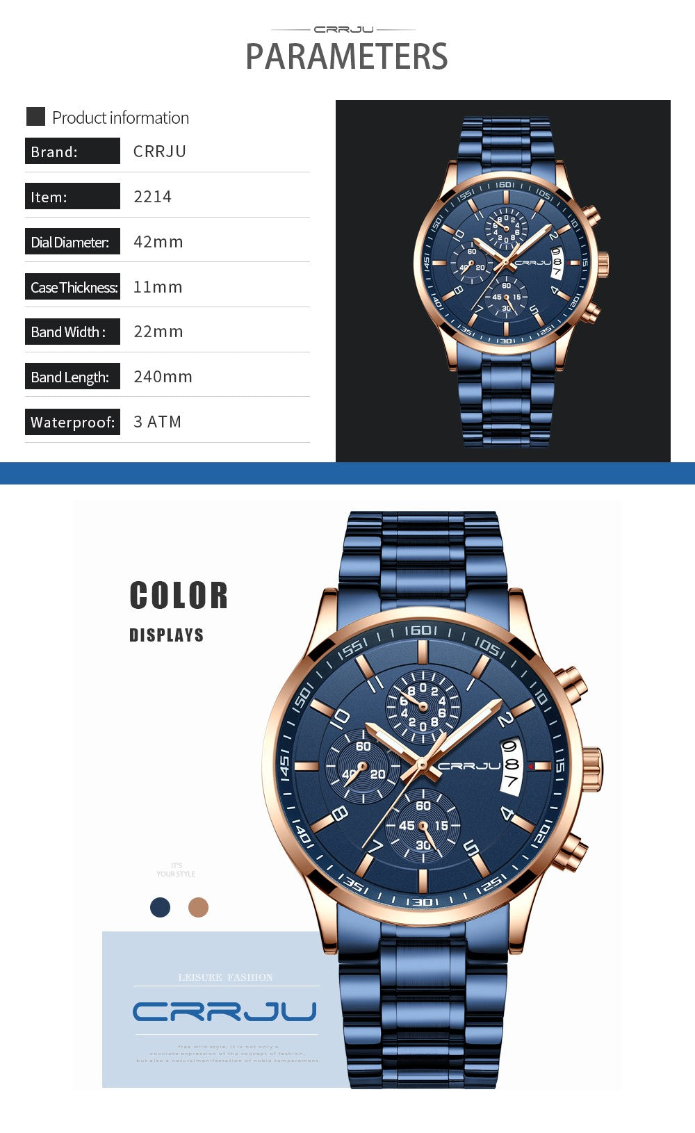 PERFECT GIFT BOX:with a luxurious CRRJU watch box,a watch tool,Warranty card and manual.this wristwatch is a intimategift for yourself or for that special someone