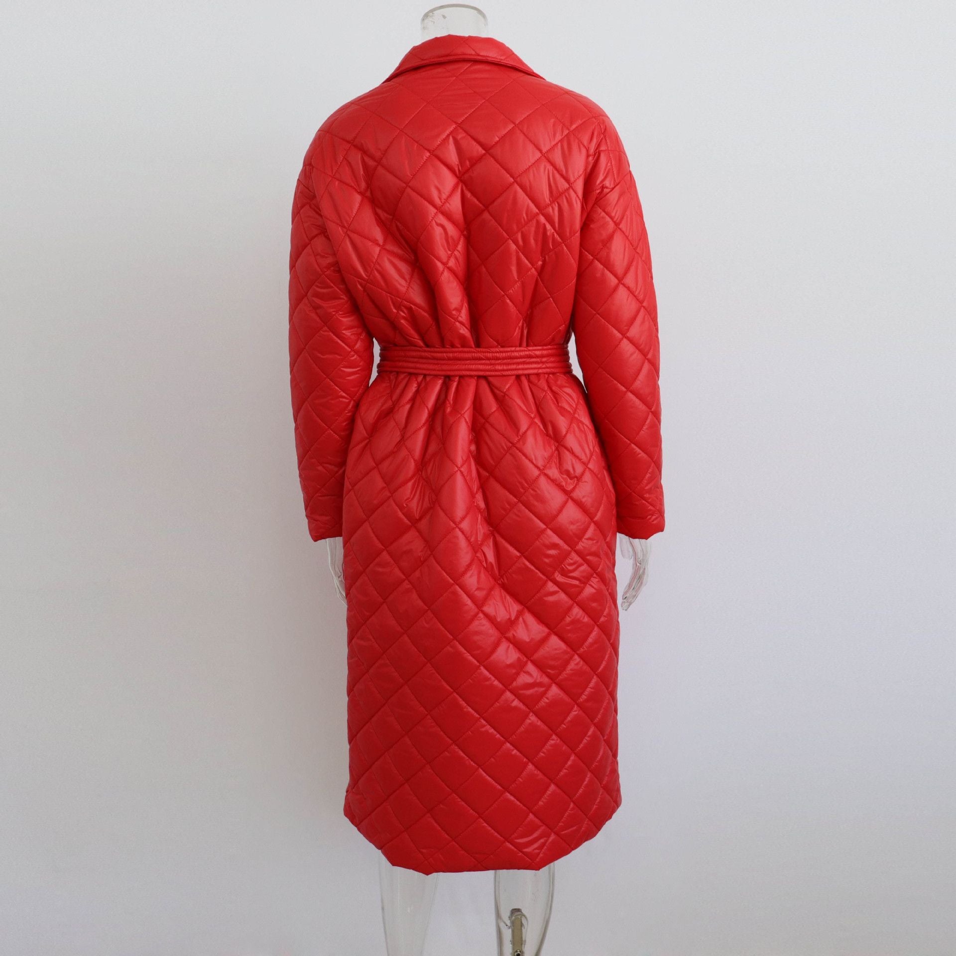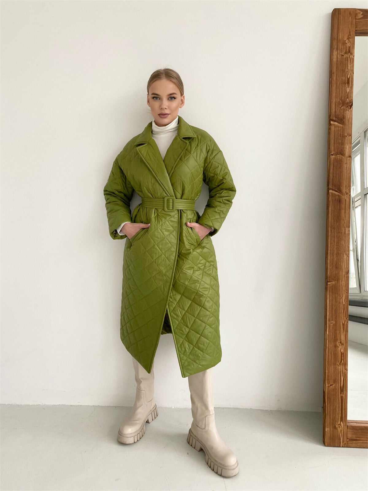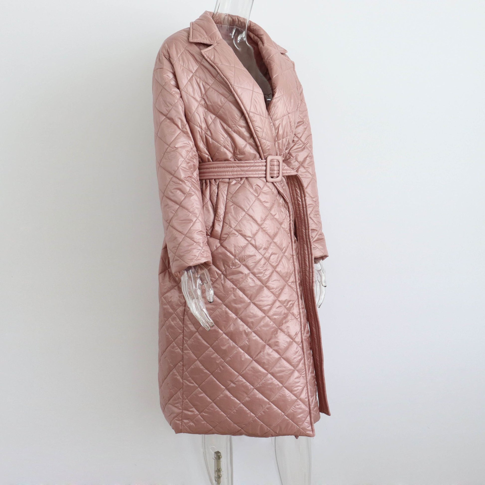 Cryptographic Fall Winter Long Sleeve Parkas Quilted Coats and Jackets for Women Warm Belt Trench Coat Warm Down Jackets Clothes