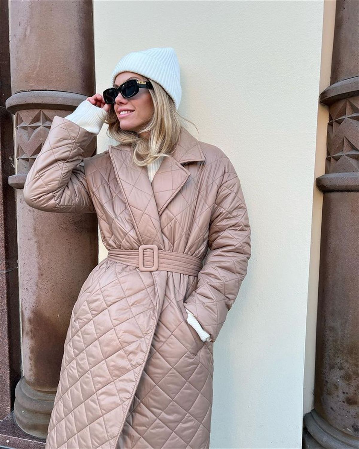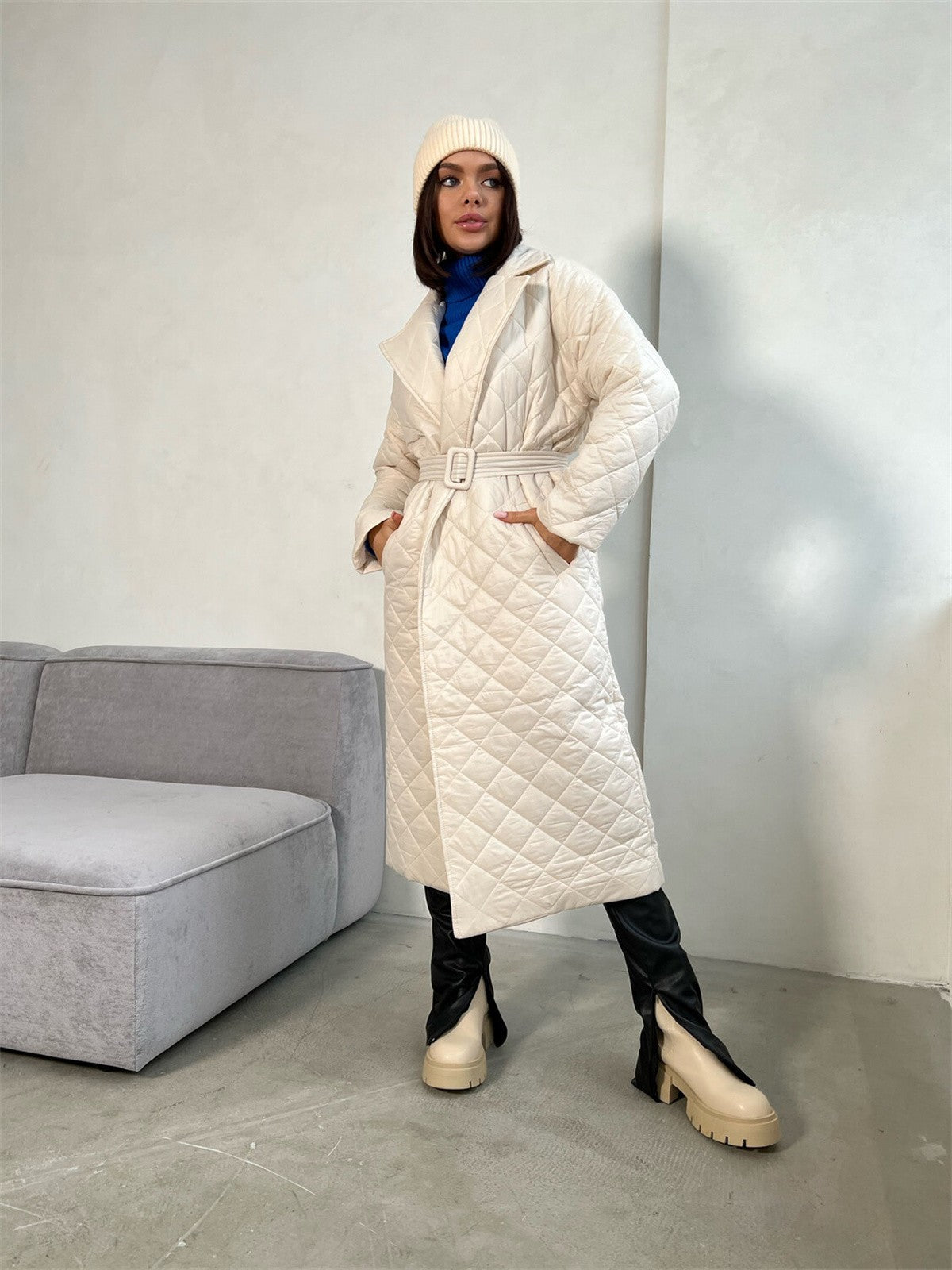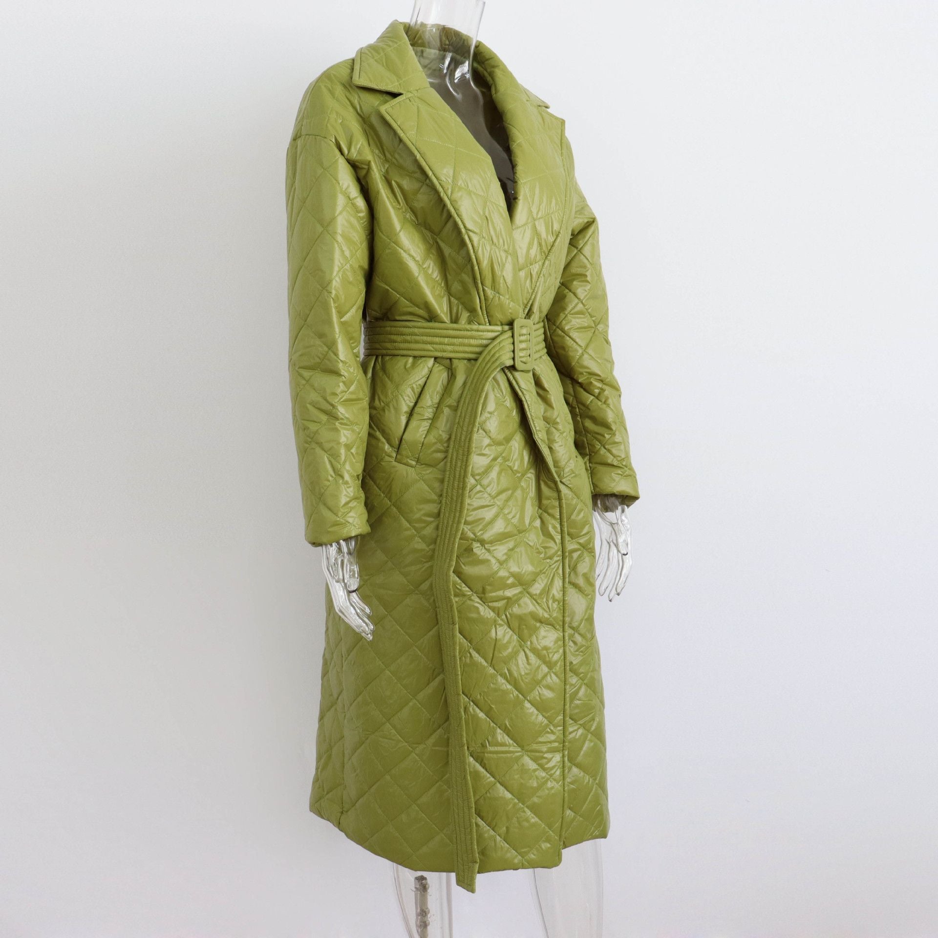 Cryptographic Fall Winter Long Sleeve Parkas Quilted Coats and Jackets for Women Warm Belt Trench Coat Warm Down Jackets Clothes