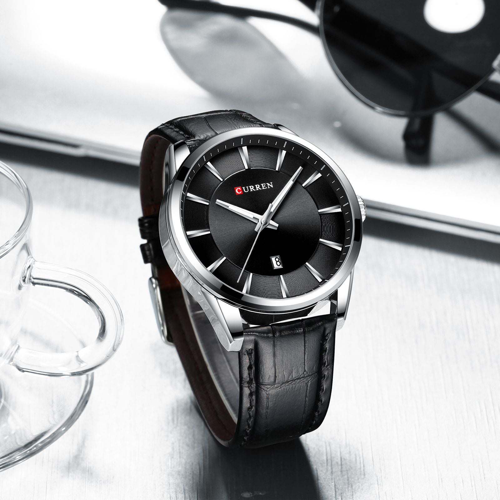 CURREN Quartz Watches for Men Leather Strap Male Wristwatches Top Luxury Brand Business Men's Clock 45 mm Reloj Hombres