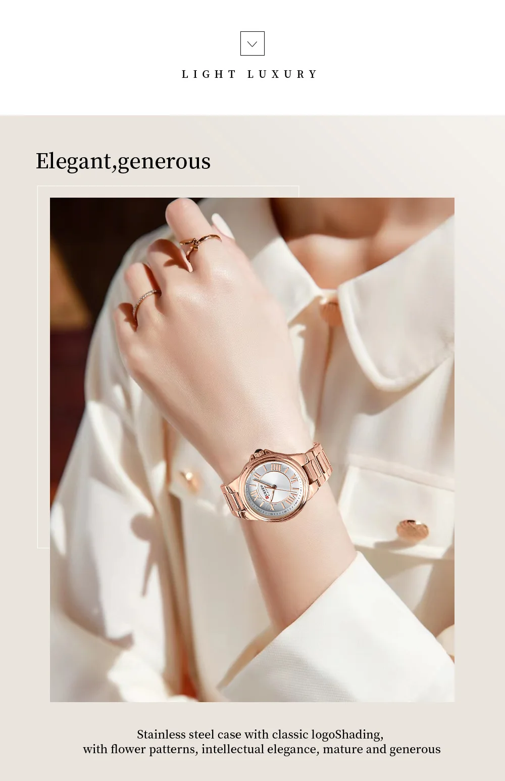CURREN Romantic Charm Women's Wristwatches Fashion Design Thin Quartz Watch with Luminous Hands Stainless Steel Bracelet