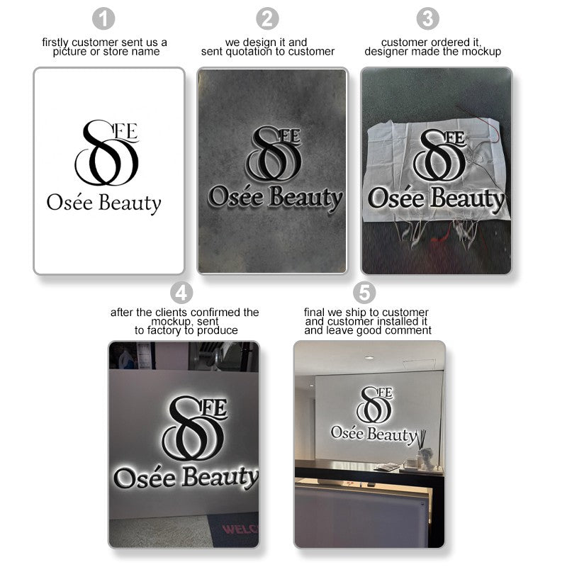 3. Please note your raised lettering, Rim Color, Lighting Color, Acrylic board (clear/frosted)