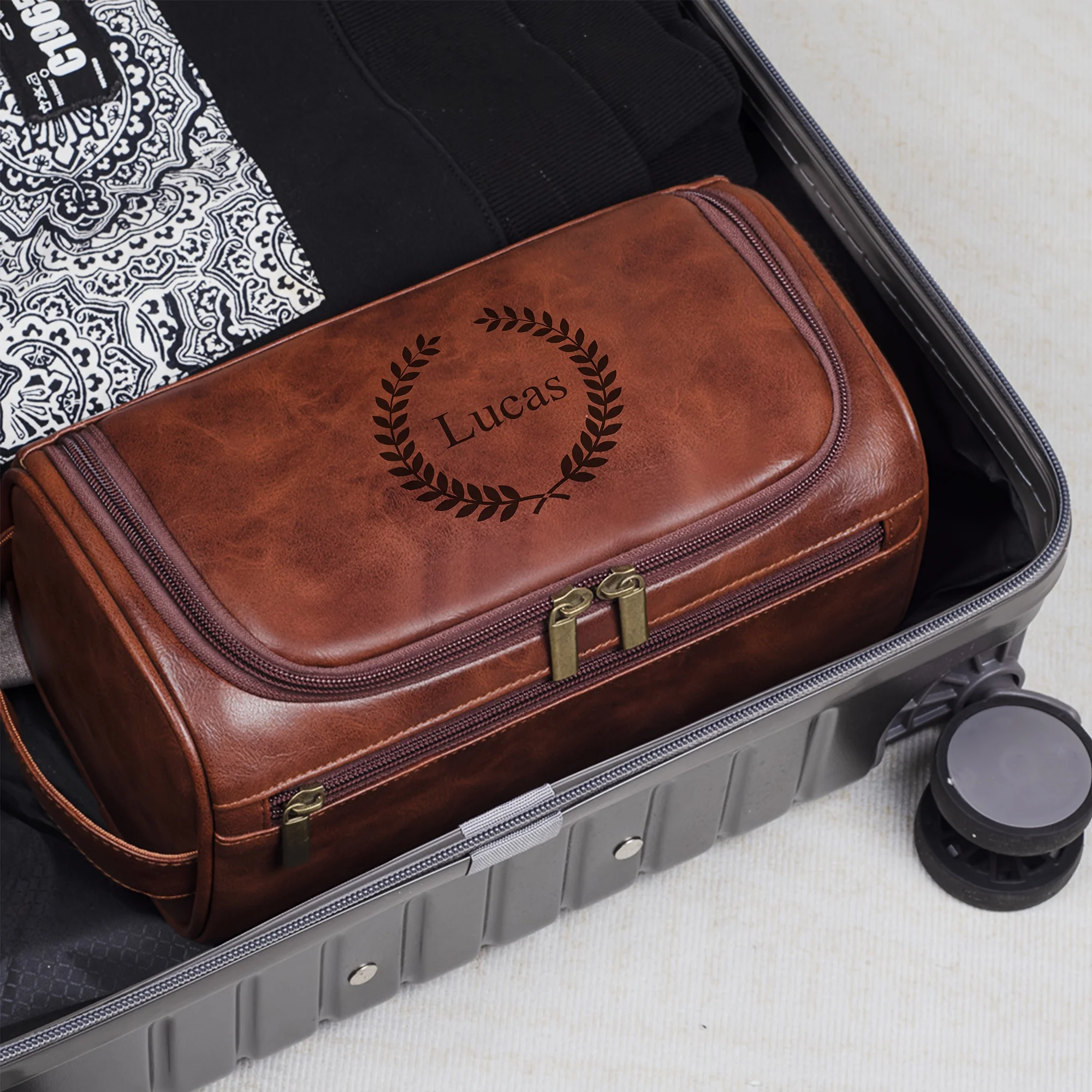 Custom Laser-Engraved Waterproof Multifunction Men's Wallet and Toiletry Bag Personalized Gift for Hi Birthday Anniversary ?