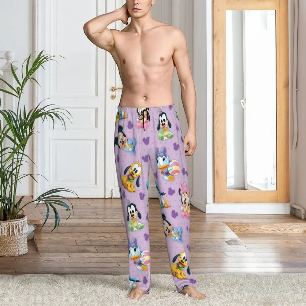Custom Print Mickey Mouse Donald Duck Pajama Pants Men Sleep Sleepwear Bottoms with Pockets