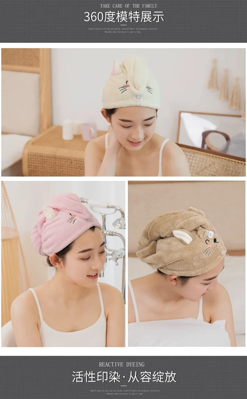 Cute Soft Microfiber Towels Shower Cap Towel Bath Hats Dry Hair Cap Quick Drying Cat Hat for Women Lady Turban Head Girl Towel