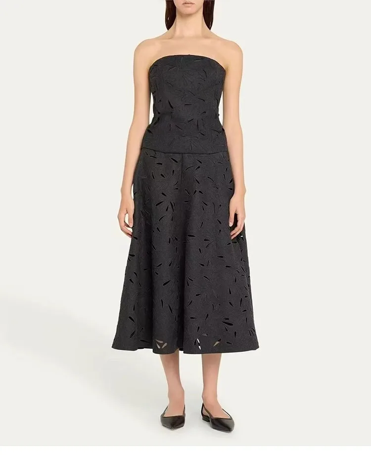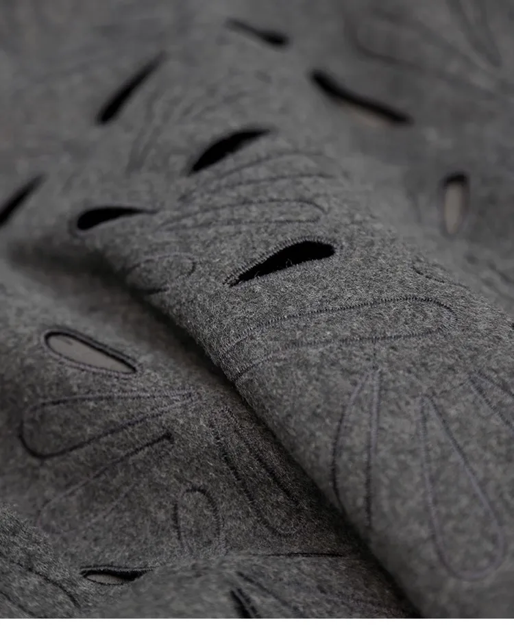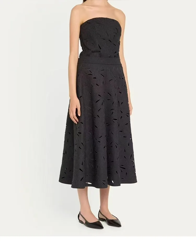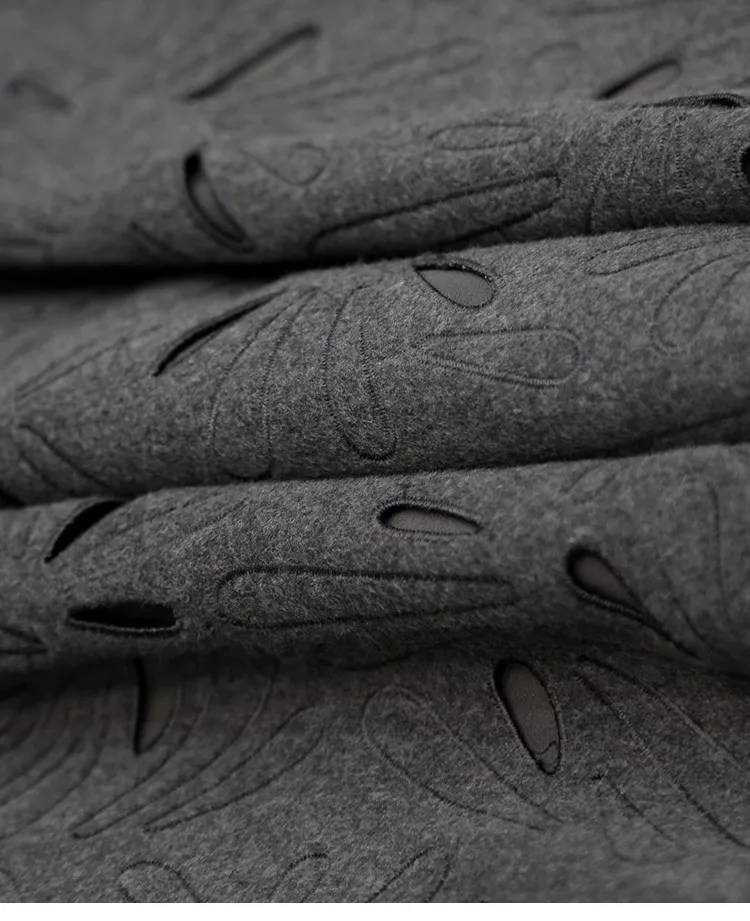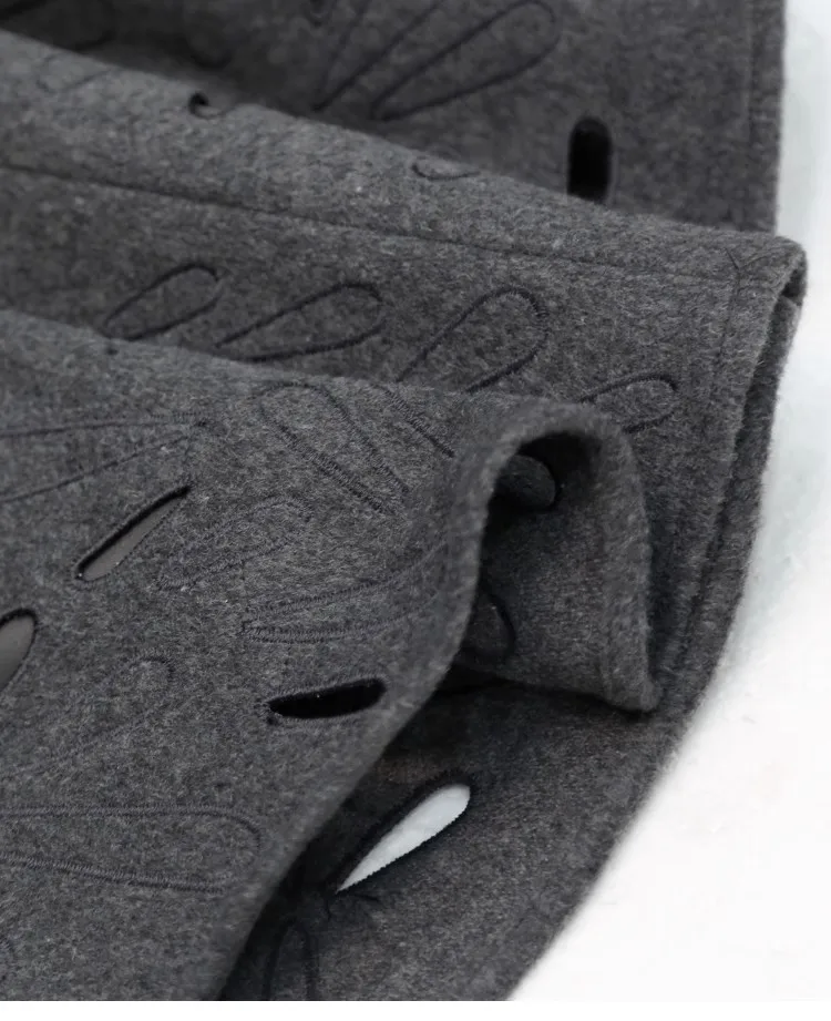 Dark Grey Wool Skirts for women 2024 Autumn Winter Big Swing A-Line Long Skirt Elegant Elastic waist Zipper Hollow Out Skirt