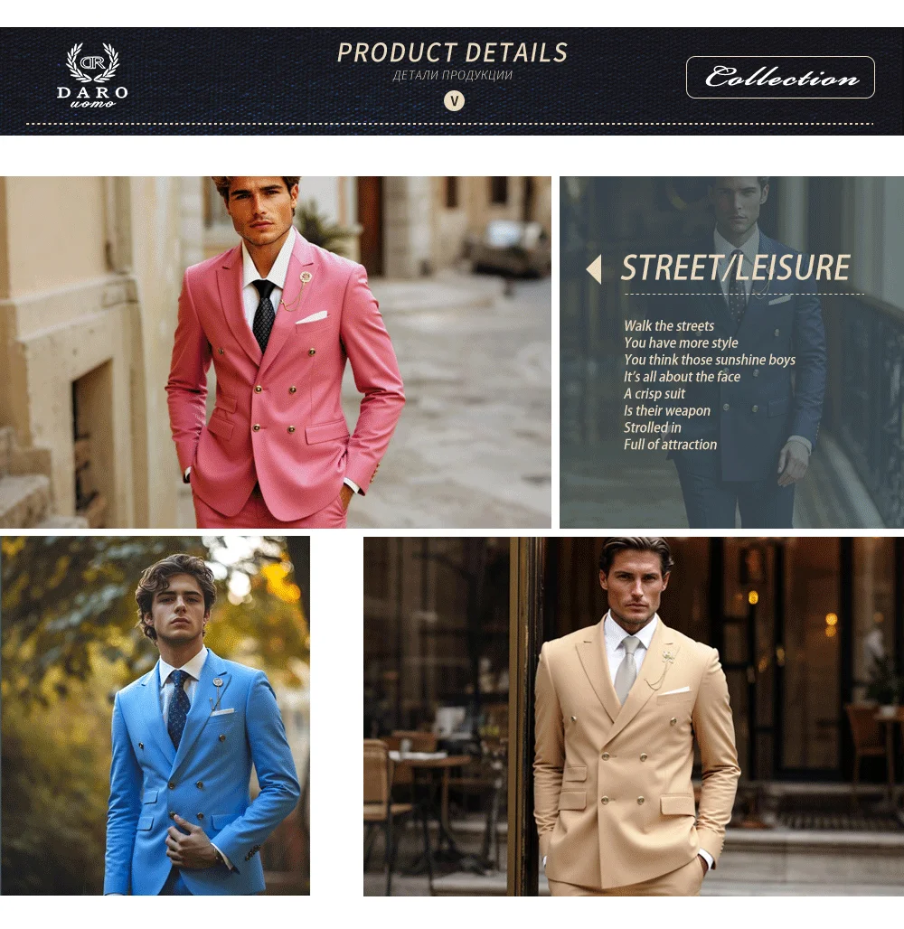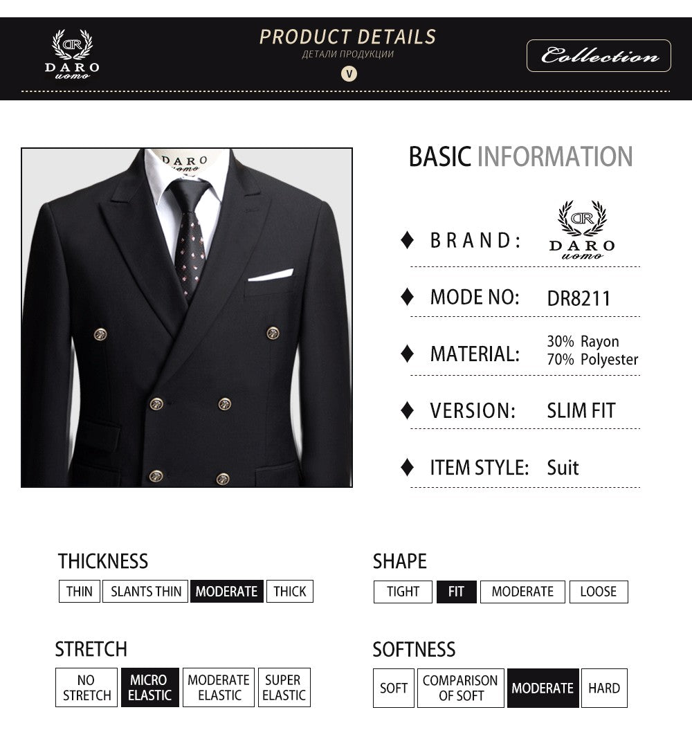 DAROuomo 2025 Men Suit Slim Fit Formal Business Work Wear Suits 2Pcs Set (Jacket+Pants)DR8211