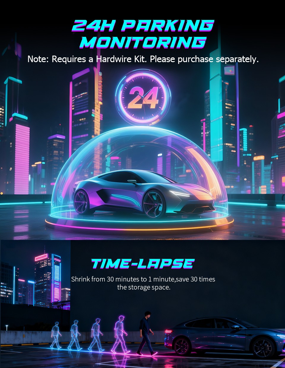 24/7 Parking Monitoring (Hardwire Kit Required)