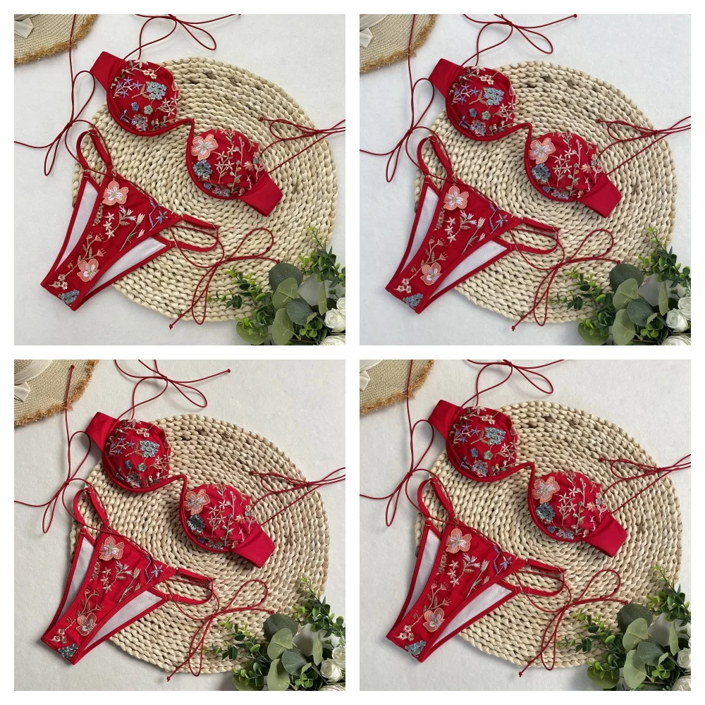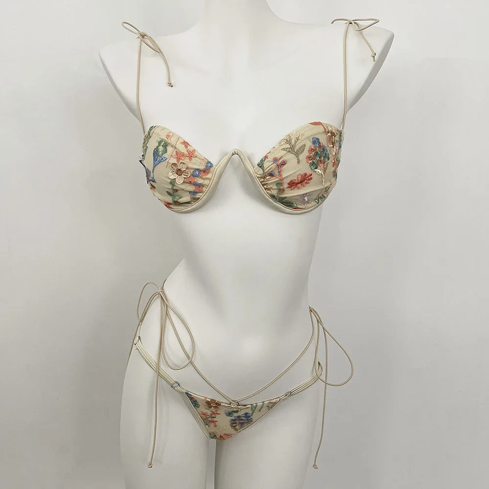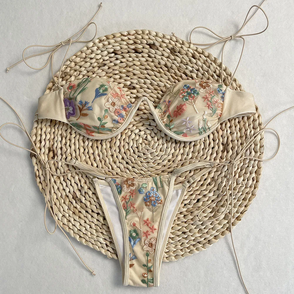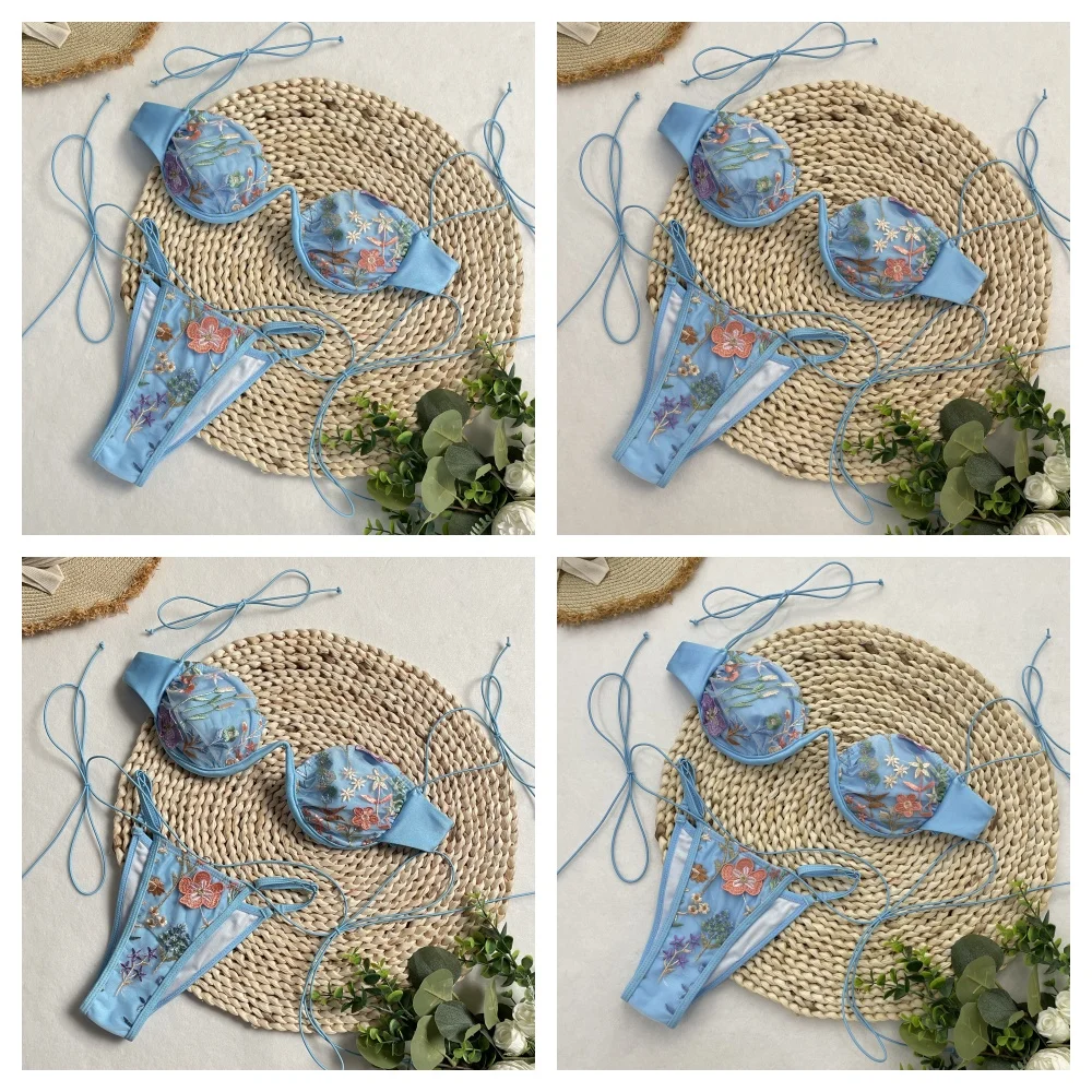 DEBAIOR 2025 Women Bikini Set Floral Embroidery Lingerie Set Women Sheer 2-Piece Boho Bra + Panty Underwear Set Intimates