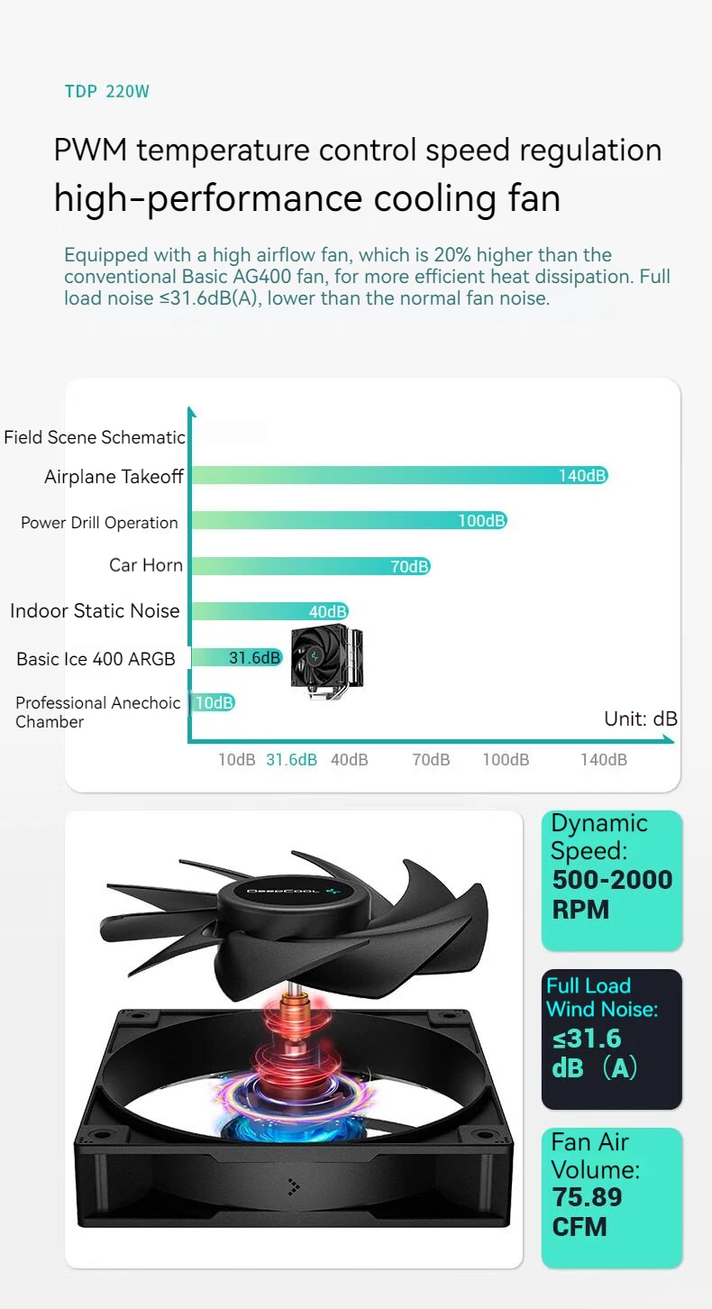 DEEPCOOL AG400 4 Heat pipes Dual Fan CPU Air-Cooling Radiator 2000RPM Desktop Cooling Fan For Intel LGA1700 1200 115X AMD AM4