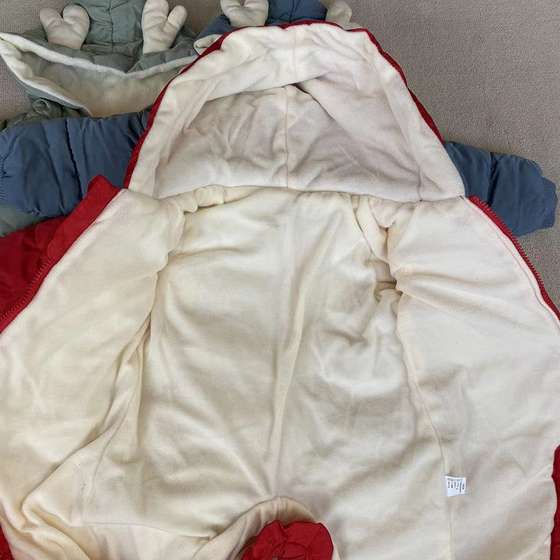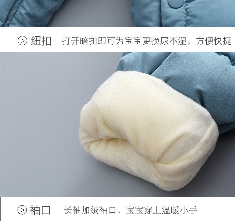 Demin-season Winter Kids Boys Rompers 2025 Cartoon Pockets Hooded Bodysuit For 0-3Y Newborn Infant Babys Boys One-piece Jumpsuit