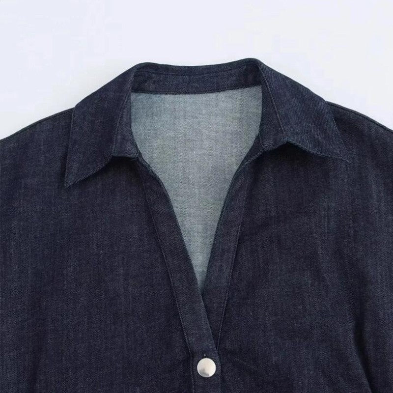 Denim Dress Women's Spring Summer Casual Long Dresses For Women 2025 New Fashion Ruched Short Sleeve Streetwear Midi Dress