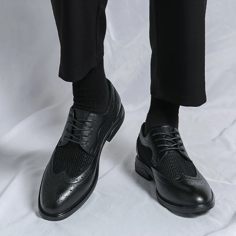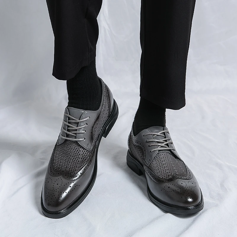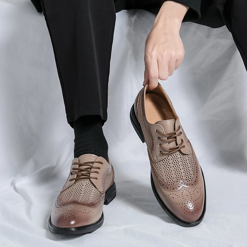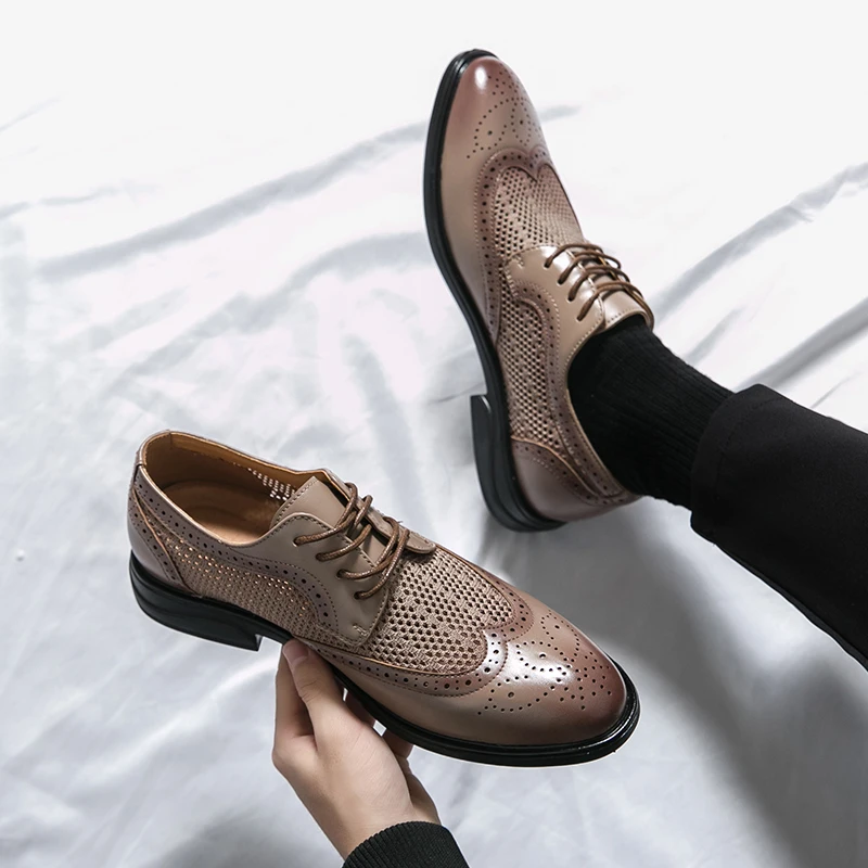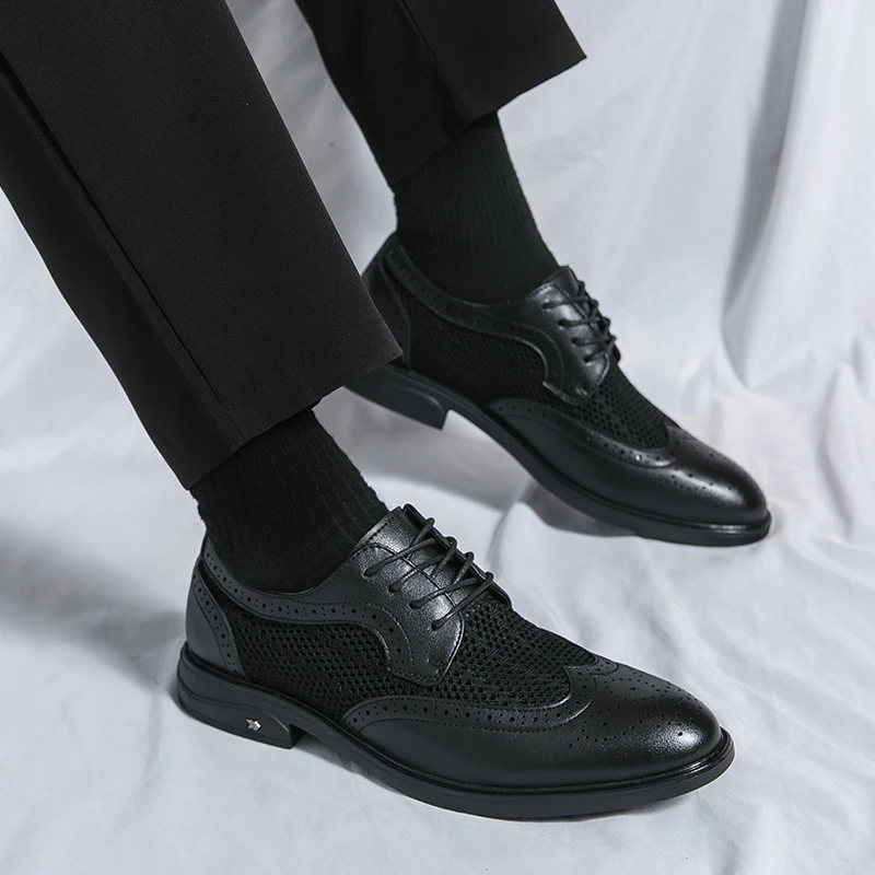 Designer New Brogue Men Brand Business Party Oxford Leather Shoes Male Fashion Summer Breathable Solid Color Leather Mesh Shoes