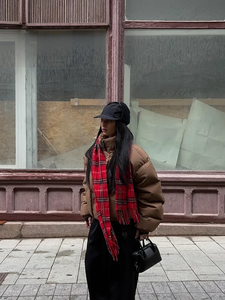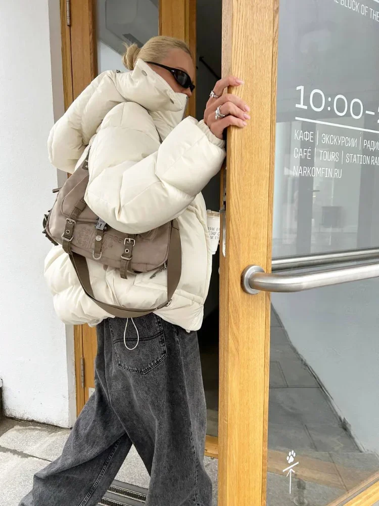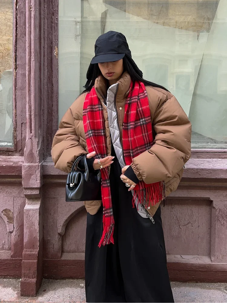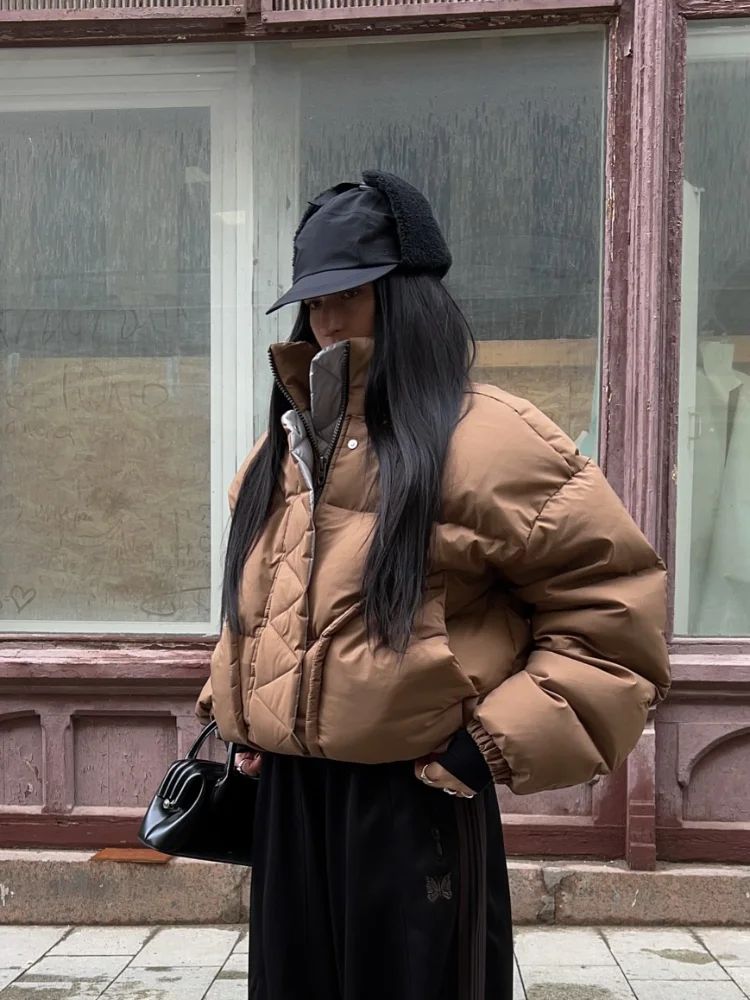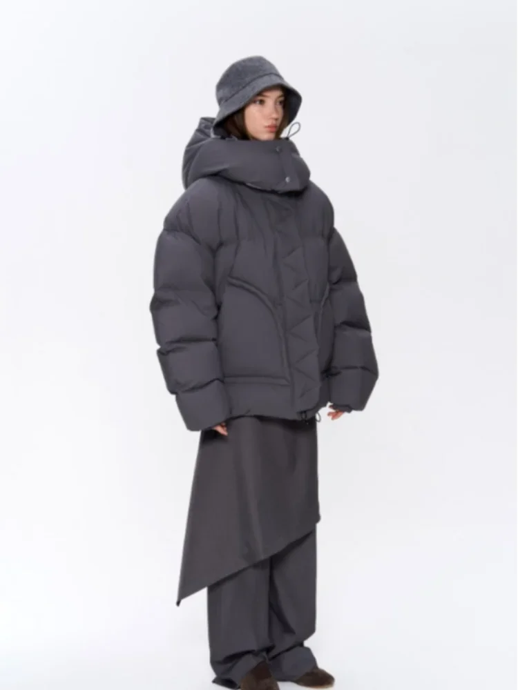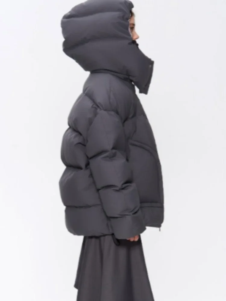 Detachable Hooded Padded Jackets Women's Loose Full Sleeves Zipper Pockets Stand Collar Coats 2025 Autumn Winter Female Outwear