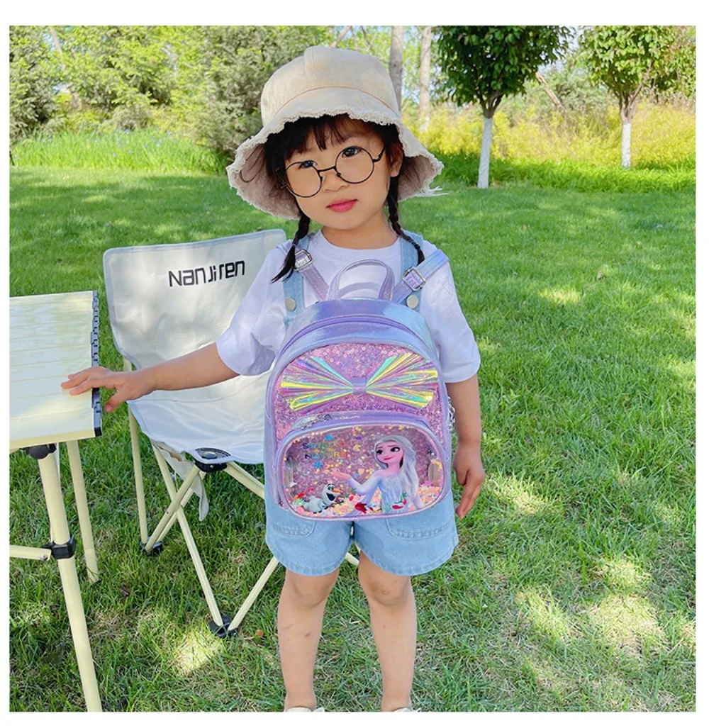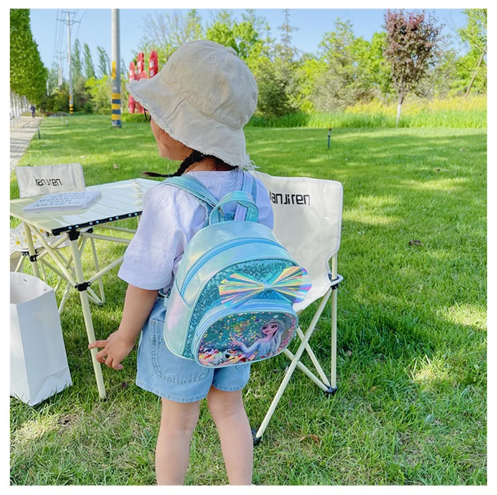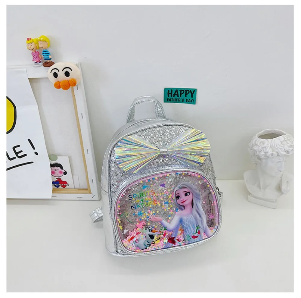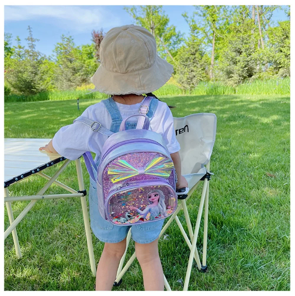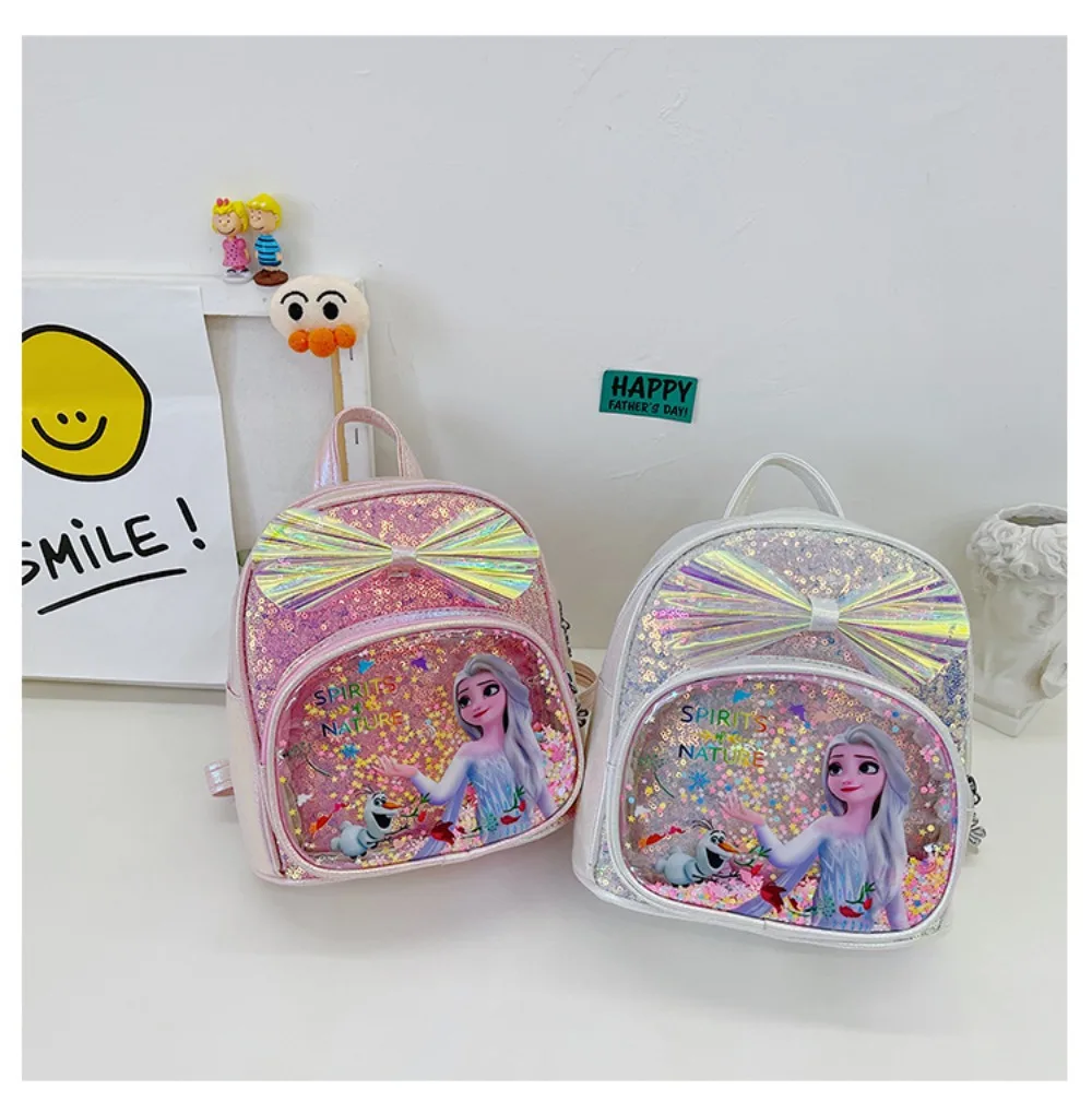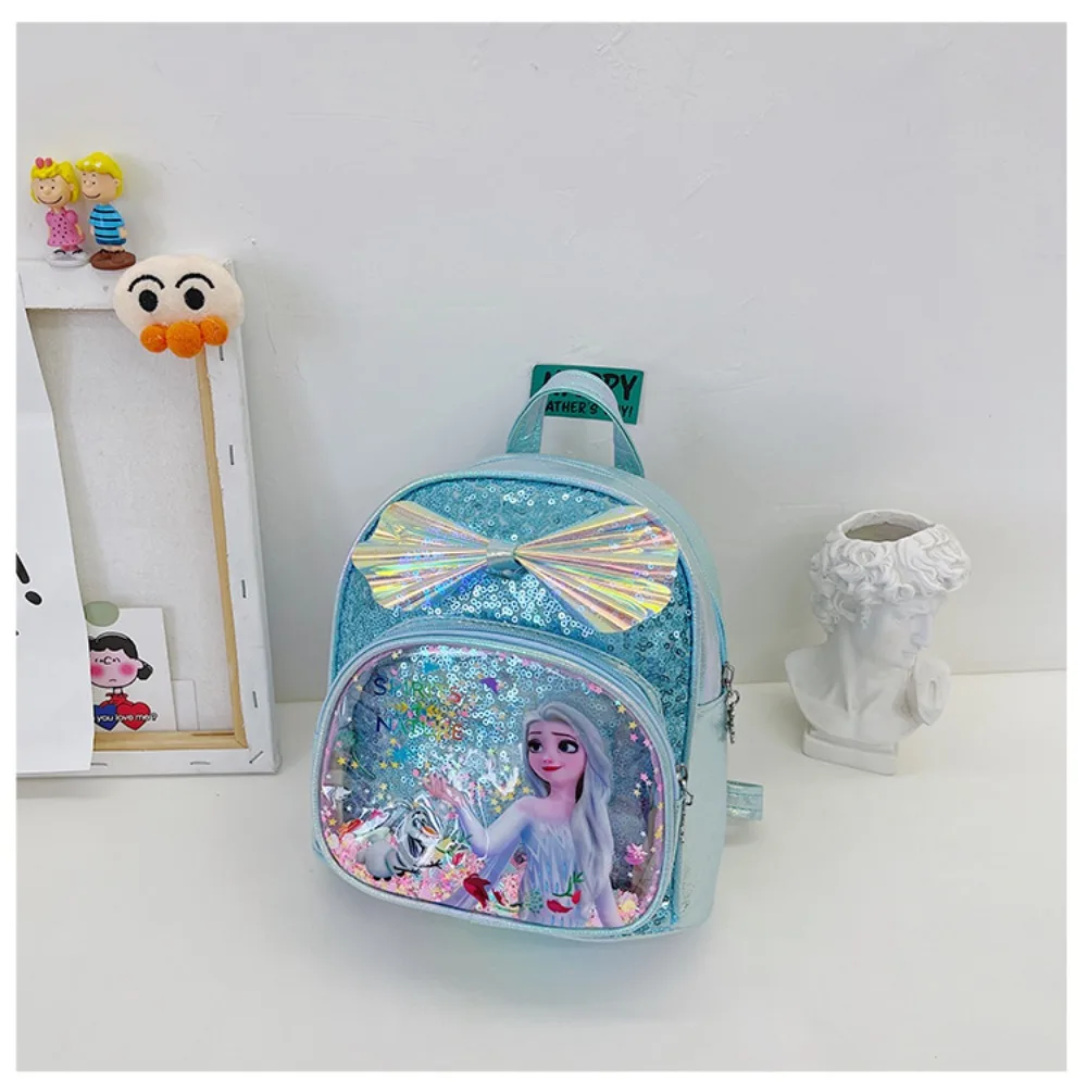 Disney Frozen Elsa Princess Glitter Mini Backpack Cute Bow Sequin Kindergarten Girls School Bag Kids Cartoon Double Shoulder Bag