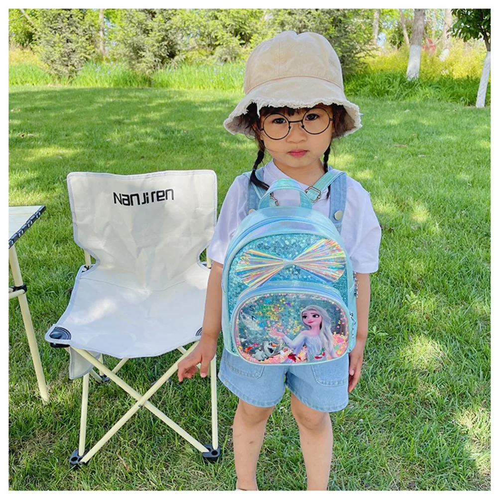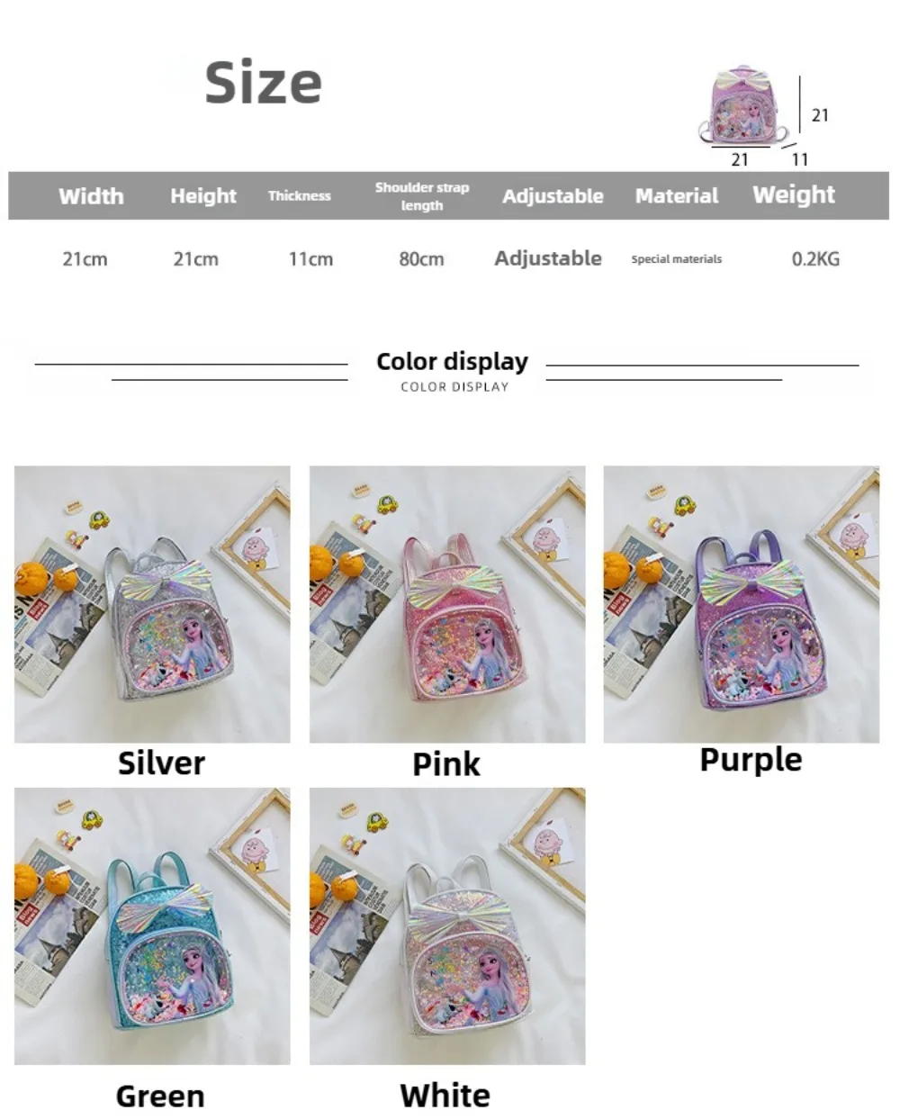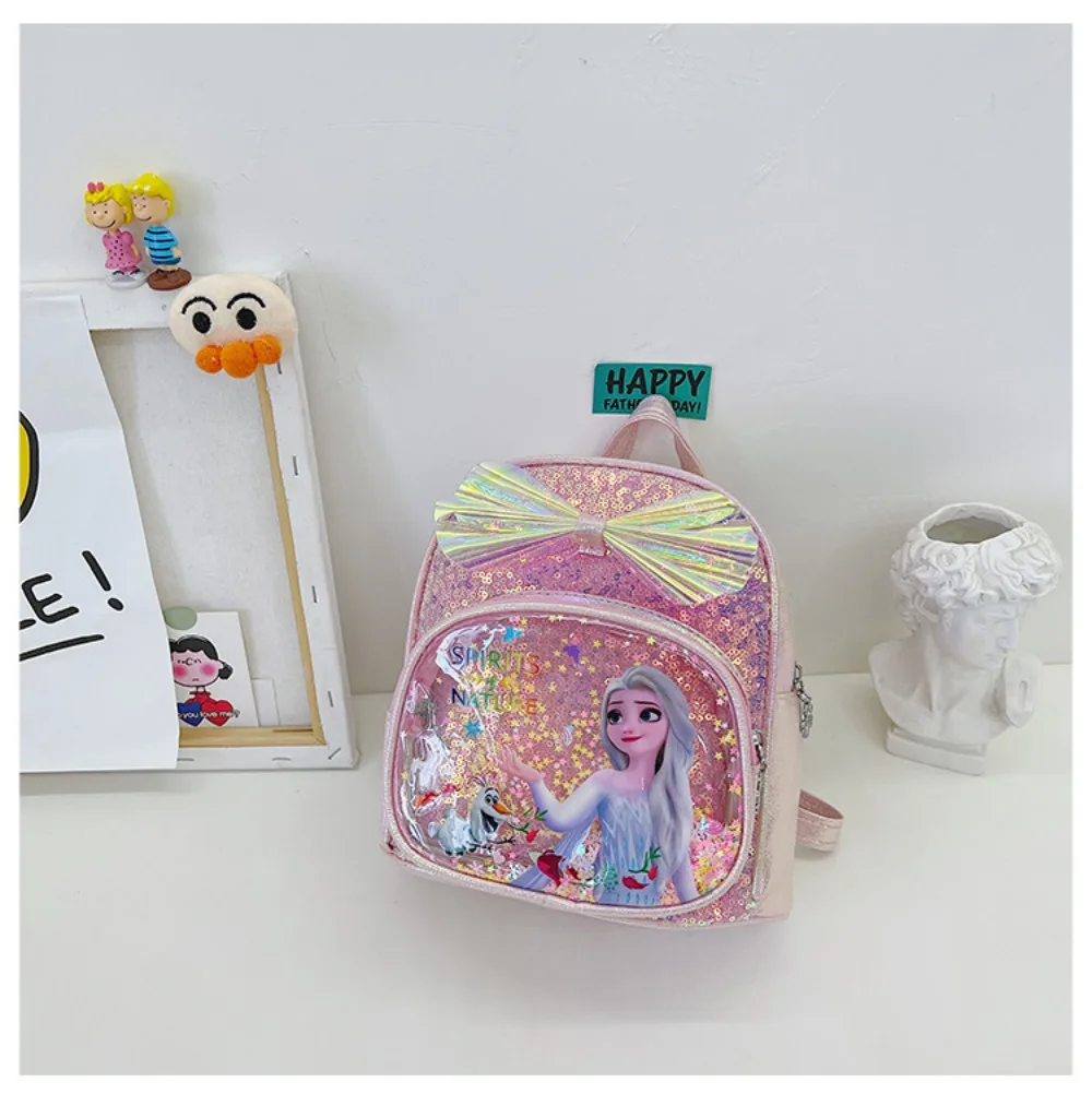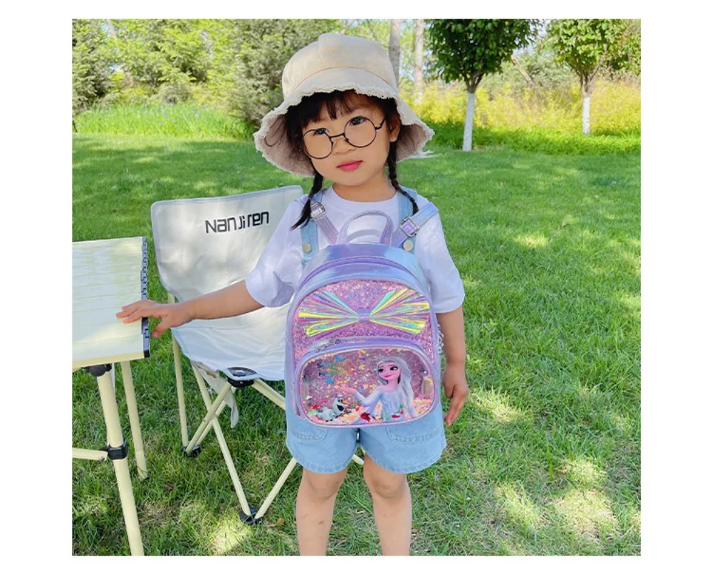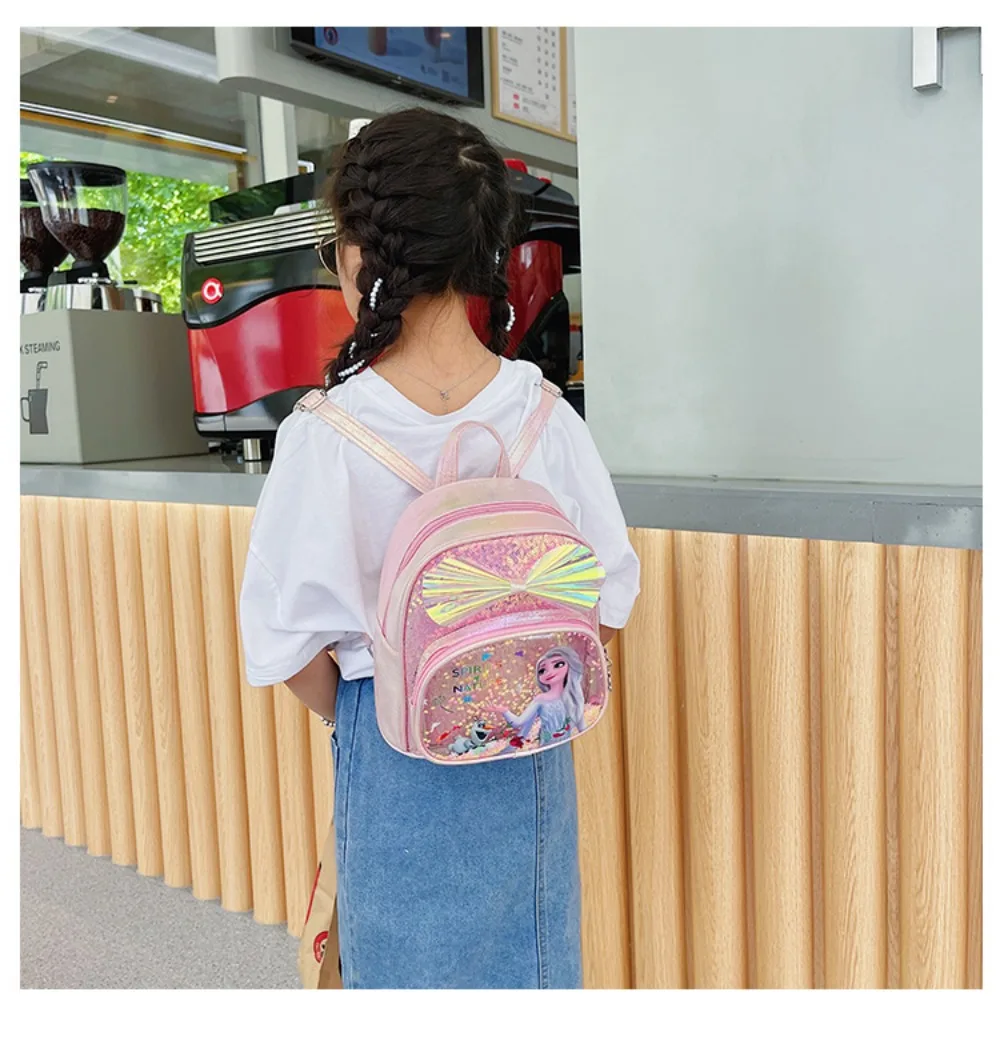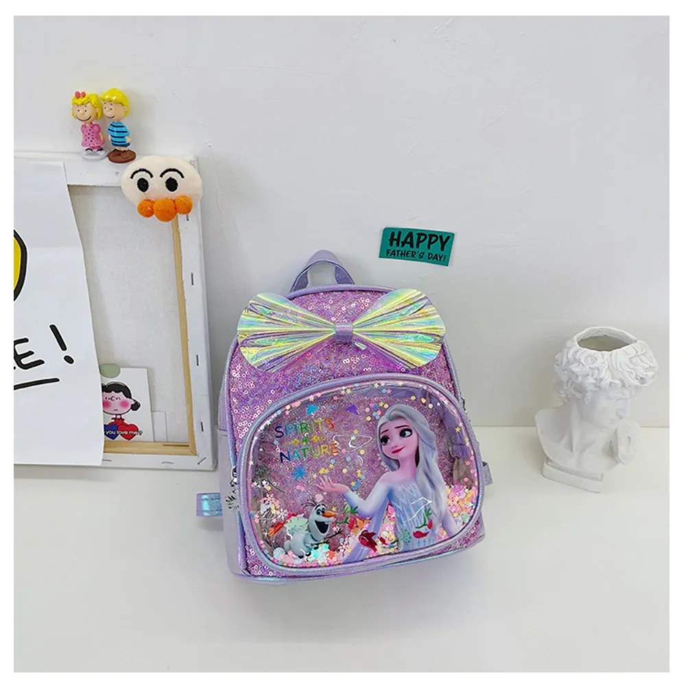 Disney Frozen Elsa Princess Glitter Mini Backpack Cute Bow Sequin Kindergarten Girls School Bag Kids Cartoon Double Shoulder Bag