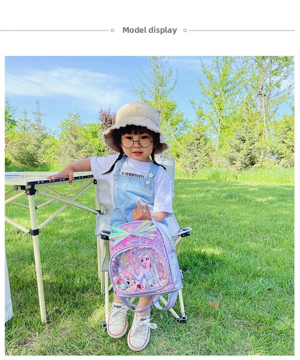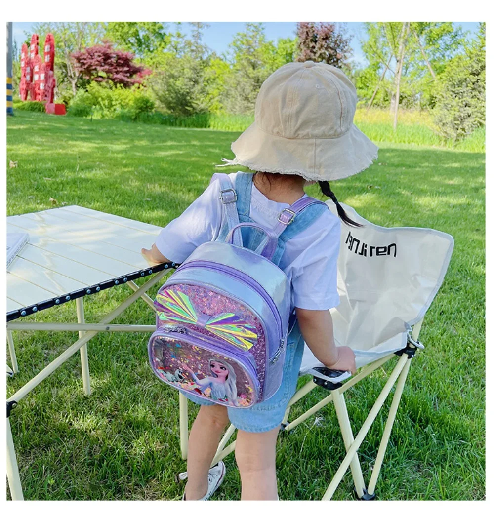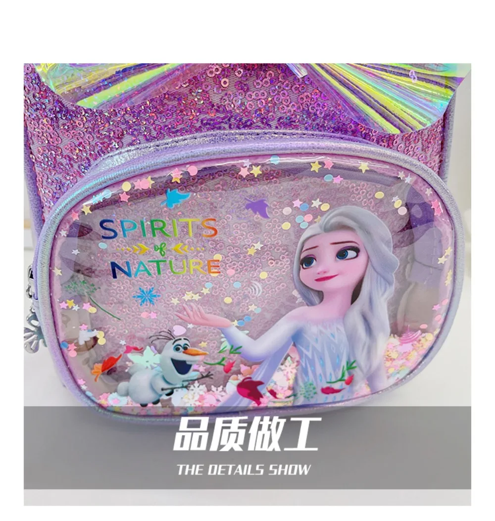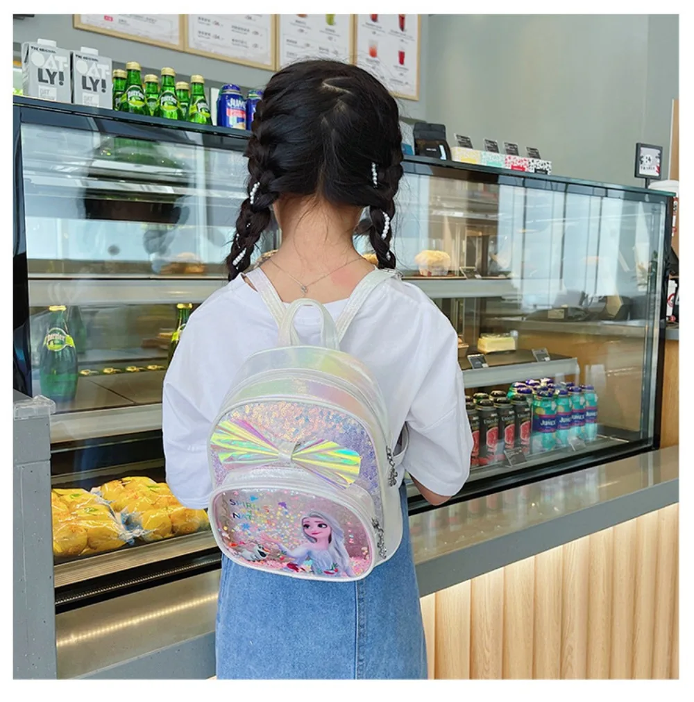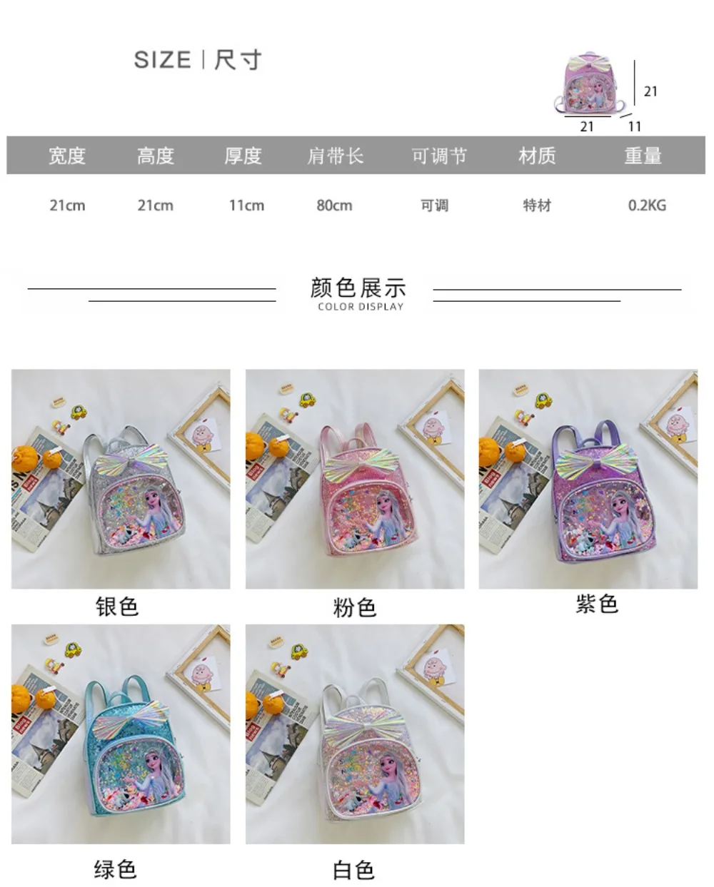 Disney Frozen Elsa Princess Glitter Mini Backpack Cute Bow Sequin Kindergarten Girls School Bag Kids Cartoon Double Shoulder Bag