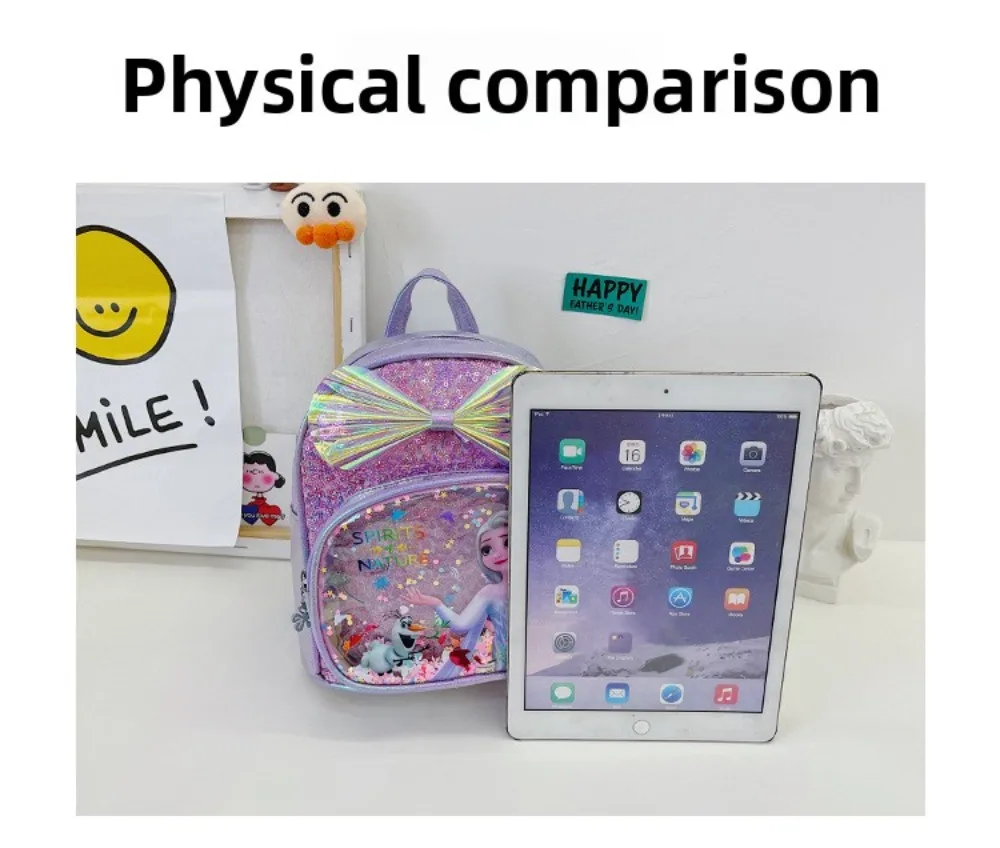 ✨ Sparkling Glitter & Sequin Panel: The front pocket is filled with dynamic, flowing glitter and sequins for a dazzling, eye-catching effect that girls will adore.