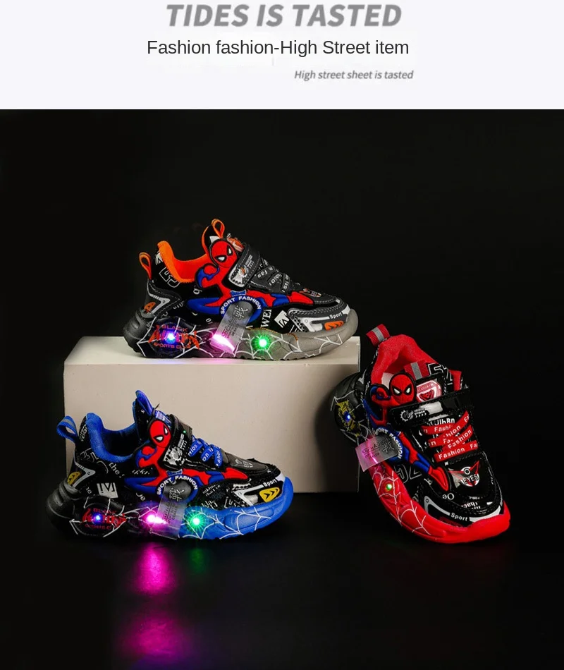 Disney LED Casual Sneakers Red Black For Spring Boys Spiderman Outdoor Shoes Children Lighted Non-slip Shoes Size 21-30