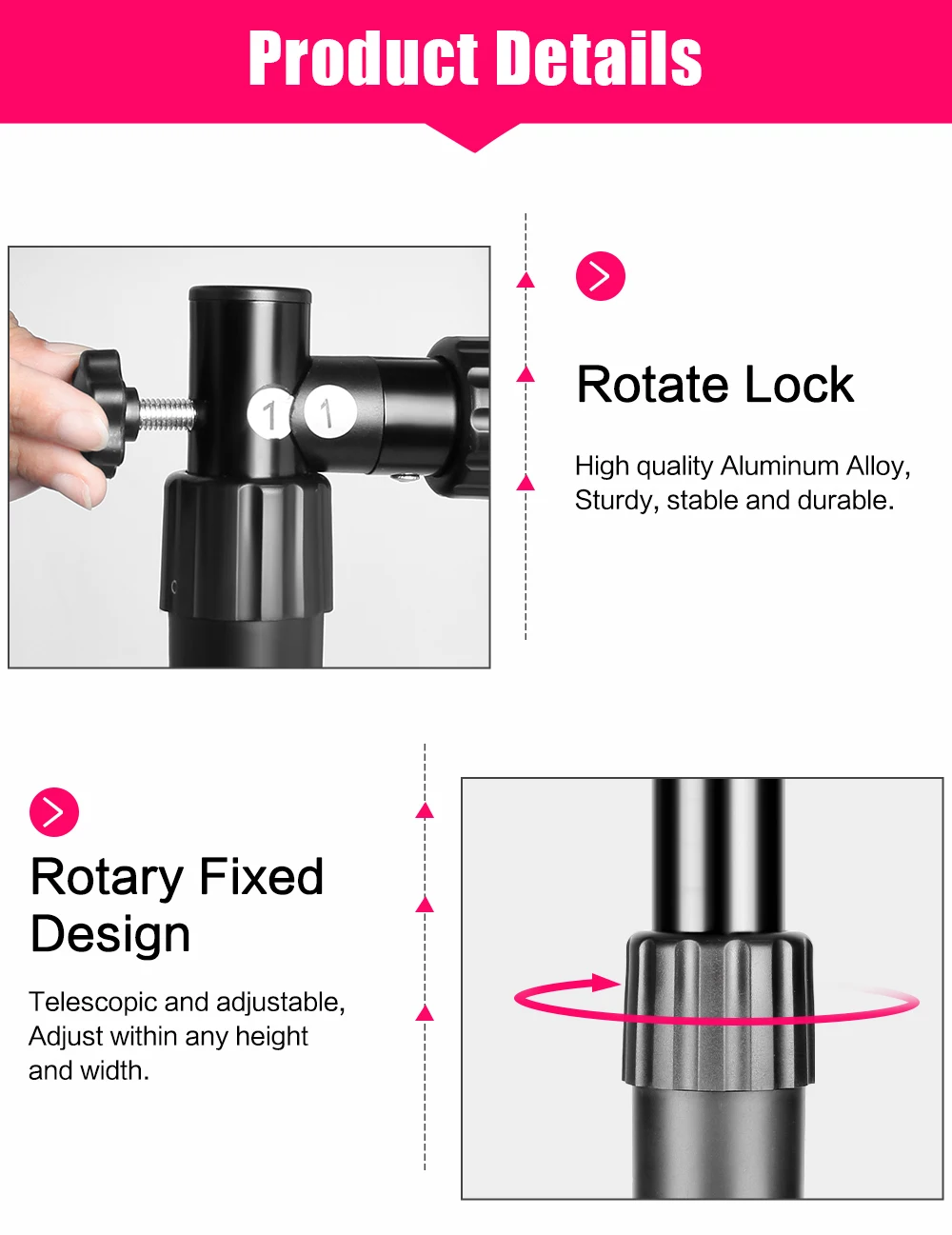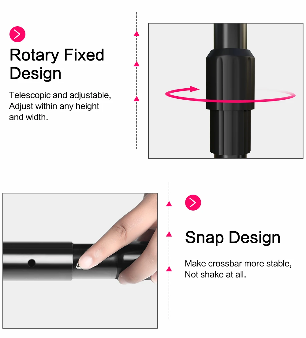 Use rotary fixed design,it is telescopic and adjustable,can adjust within any height and width.