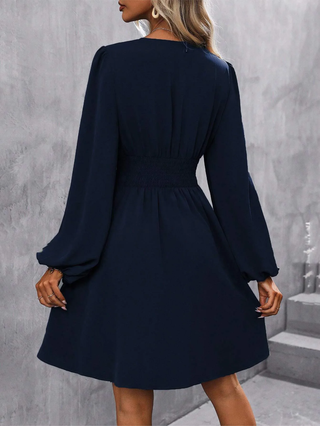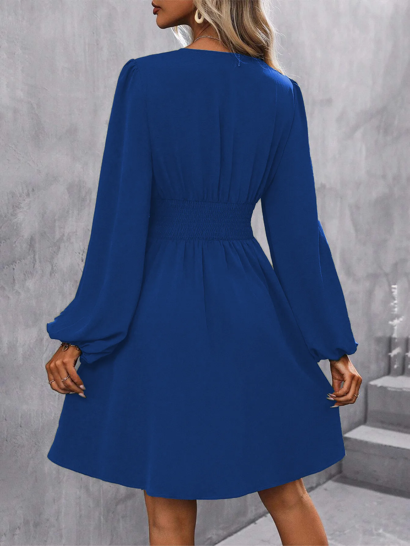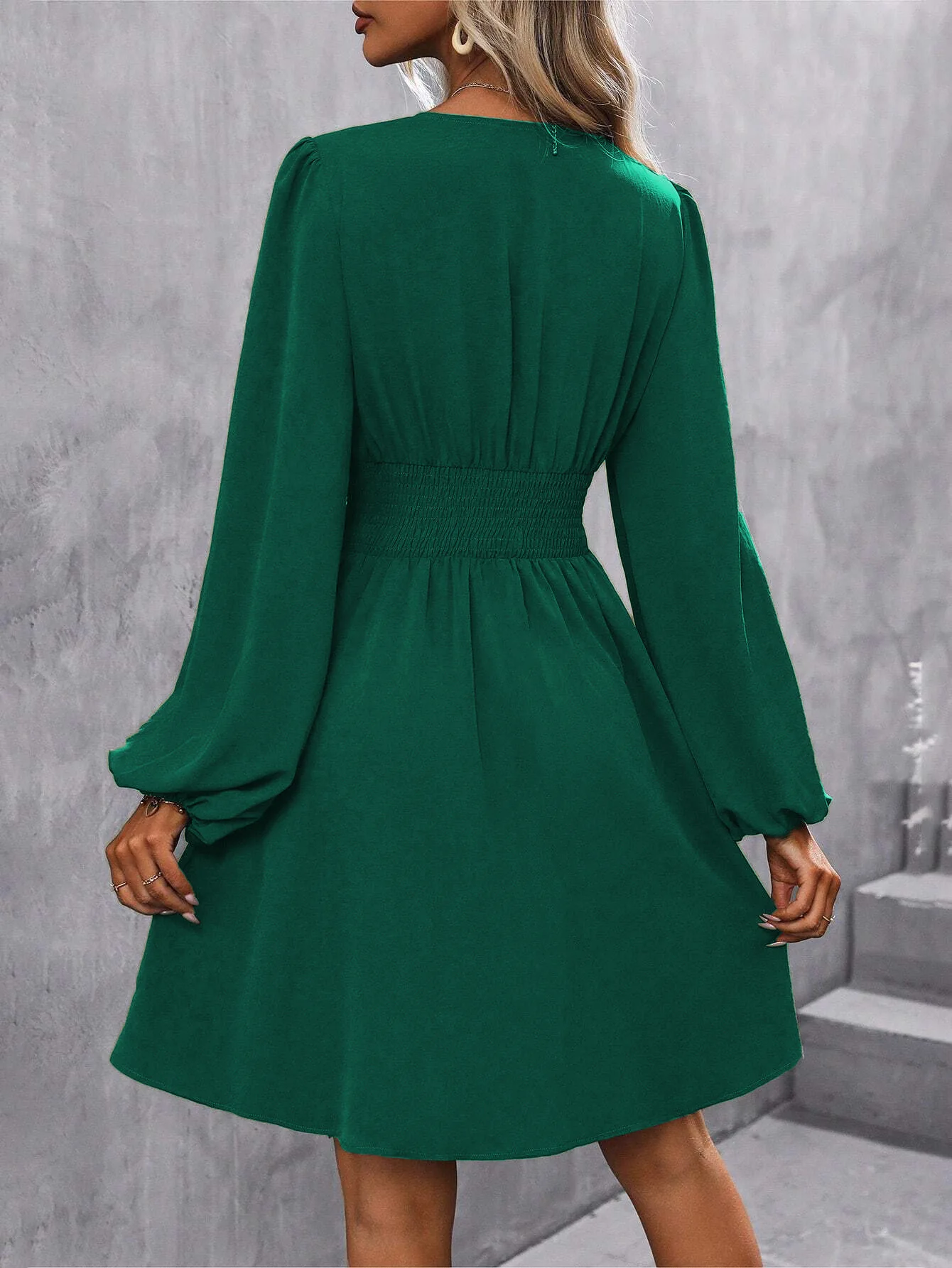 Dresses 2025 Woman Clothing V Neck Lantern Sleeve Wrap Mini Dress Ruched Waist Flowy Hem Elegant for Autumn and Party Styles ?