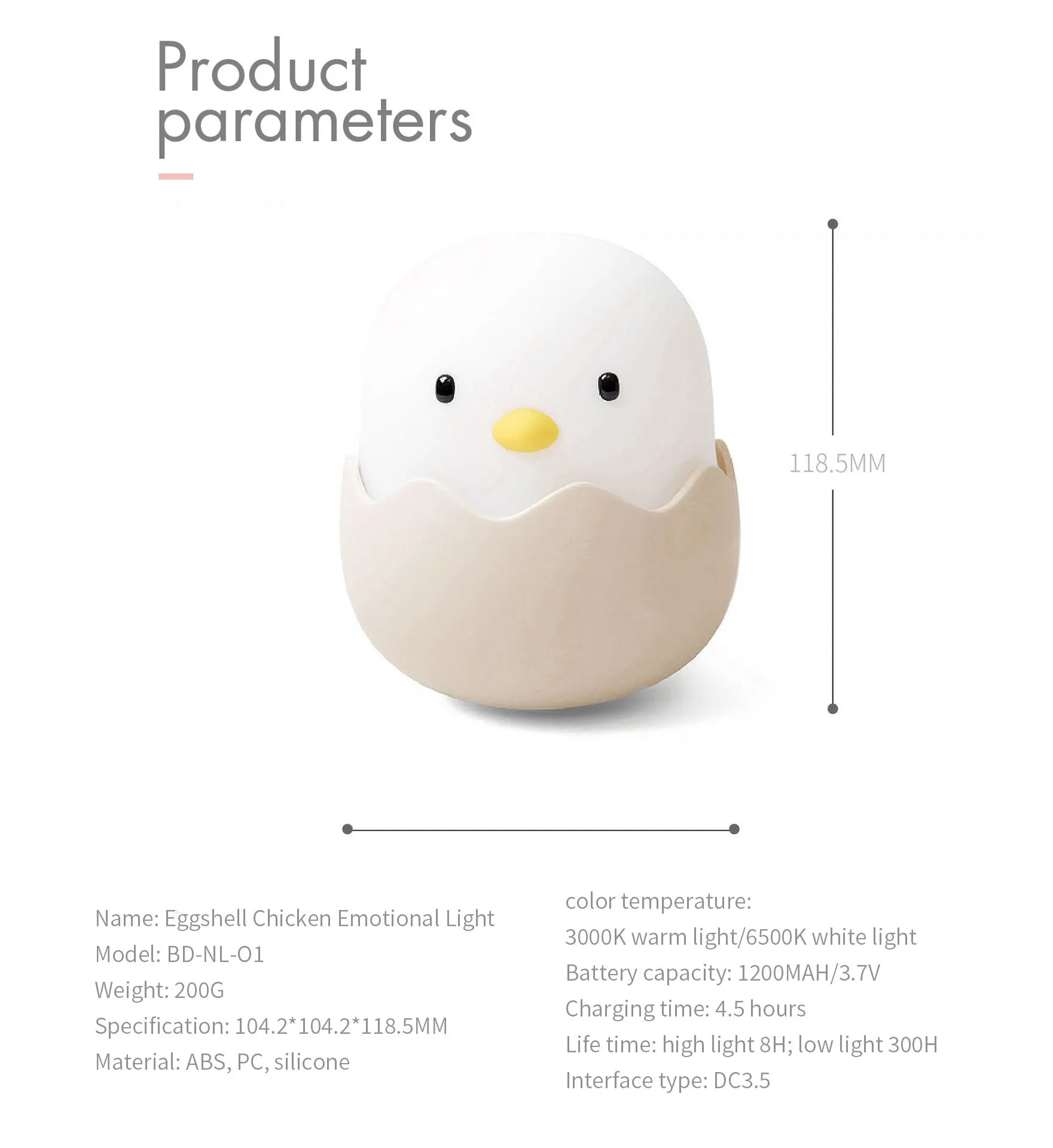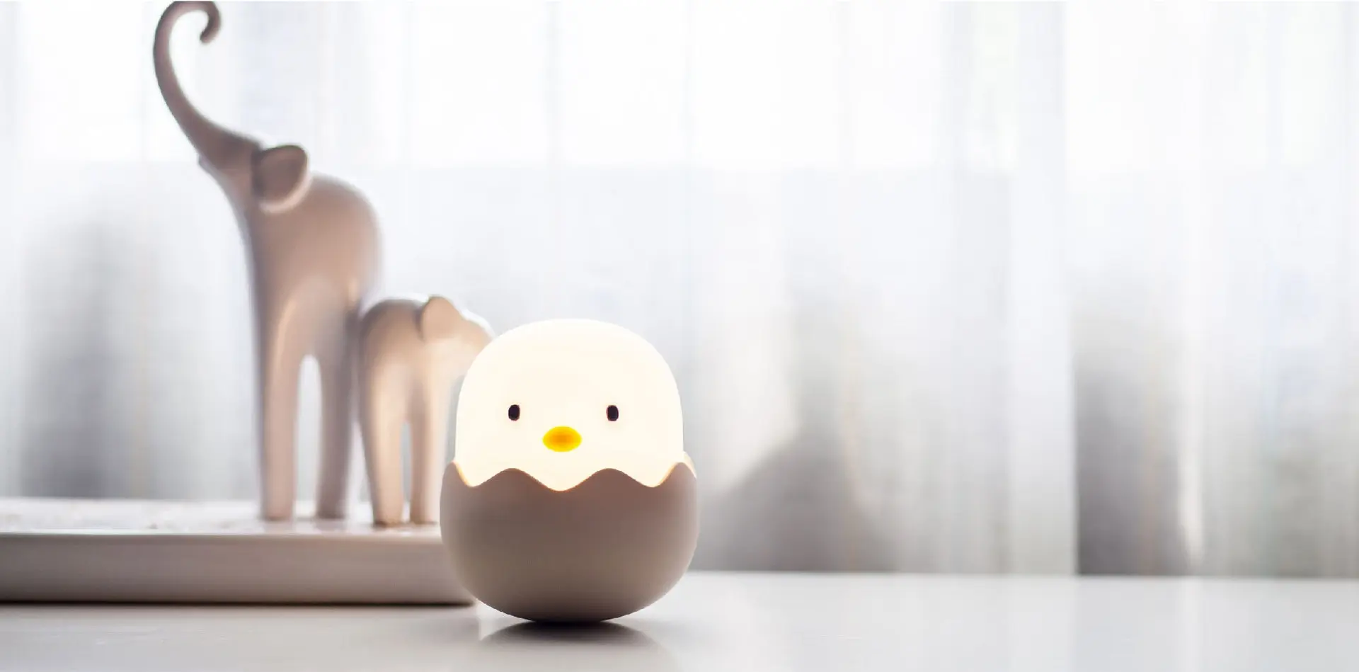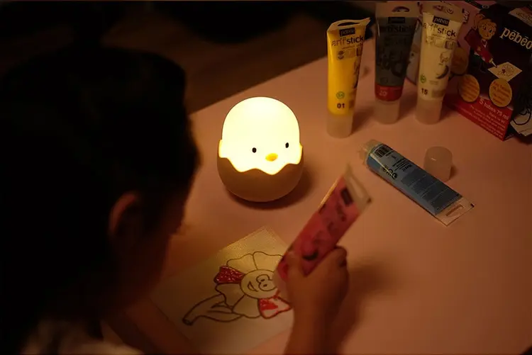 This small eggshell cartoon light-controlled night light, appearance itself is very pleasing to the eye, cute