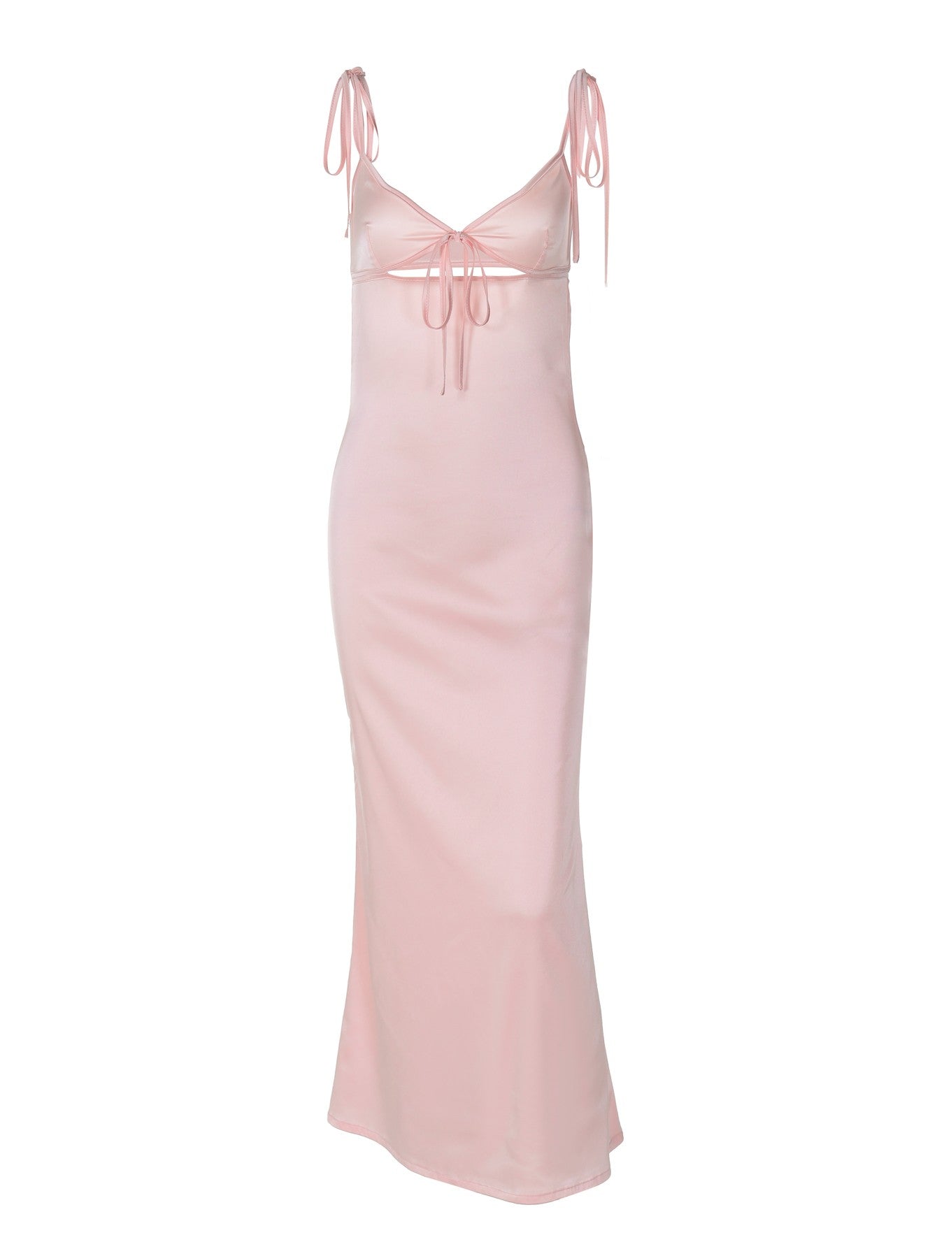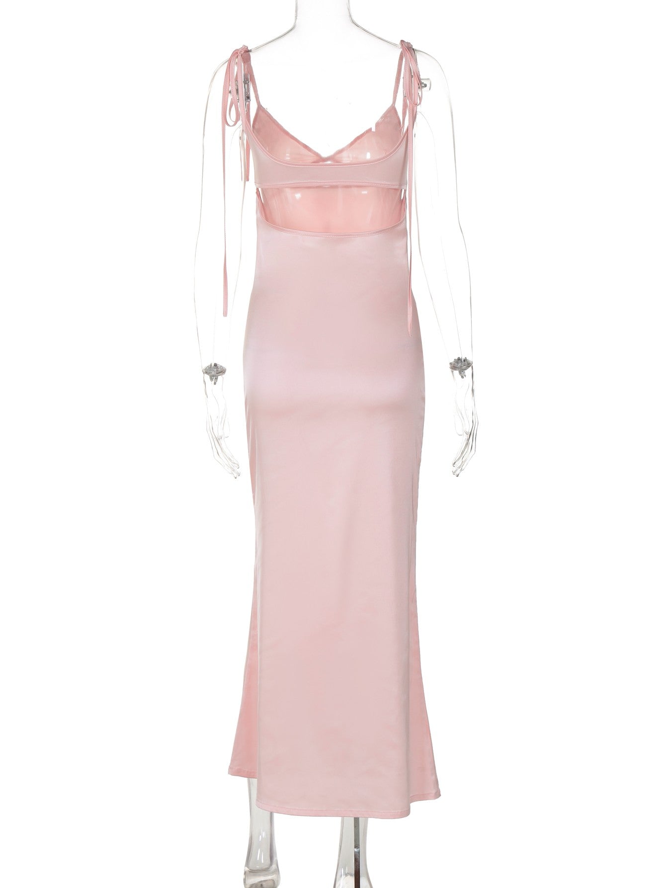 Dulzura Backless Lace Up Spaghetti Straps Cut Out Midi Dress Women Club Holiday