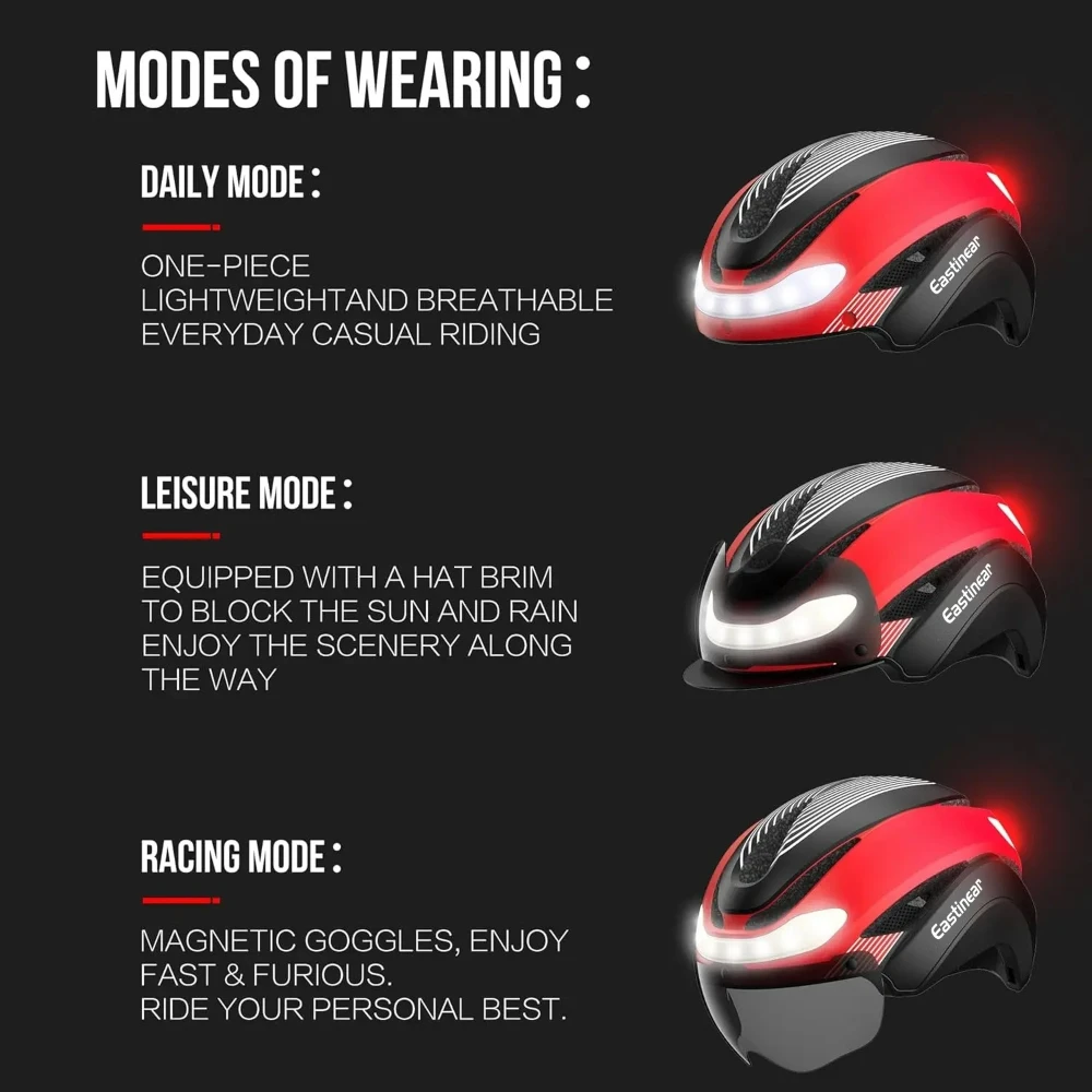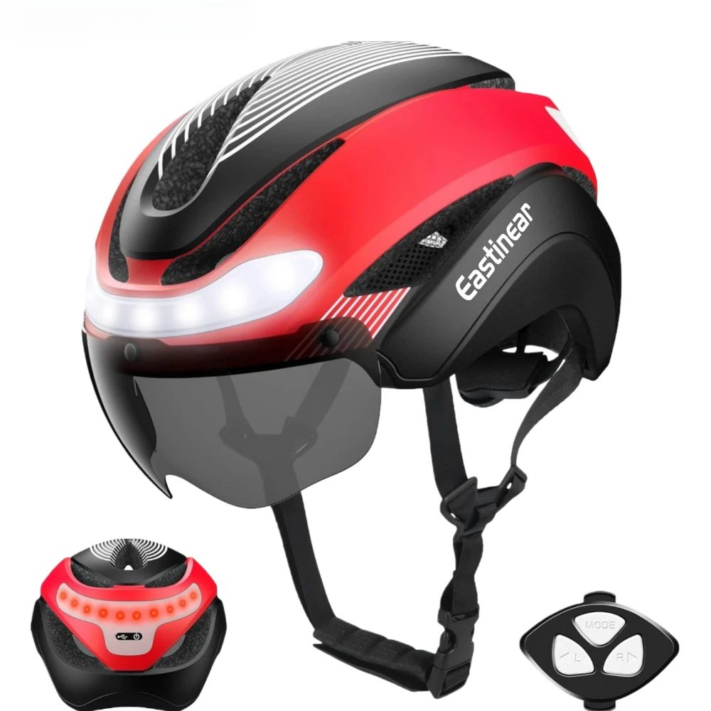 Eastinear Road Bicycle Helmet Rear Led Lights With Turn Signals With Magnetic Googles & Sun Road Bicycle Helmets For Men Women