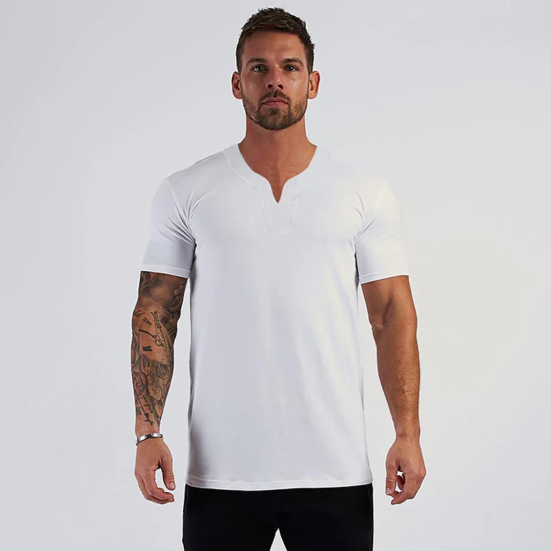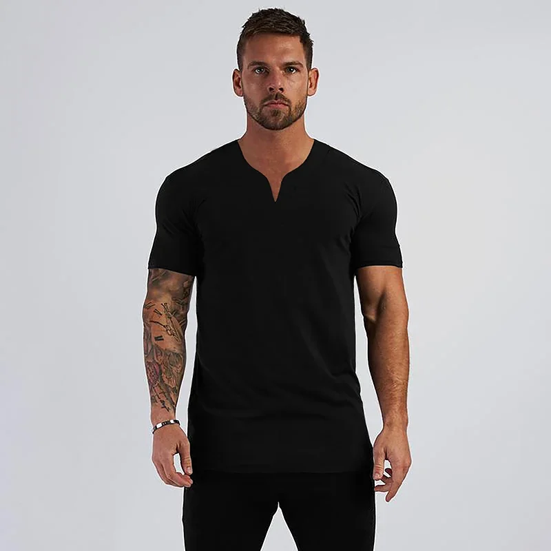 Elastic Slim Fit Summer Cool Quick Dry T-Shirts Mens Running Short Sleeve V-neck Shirts Gym Bodybuilding Fitness Muscle Clothing
