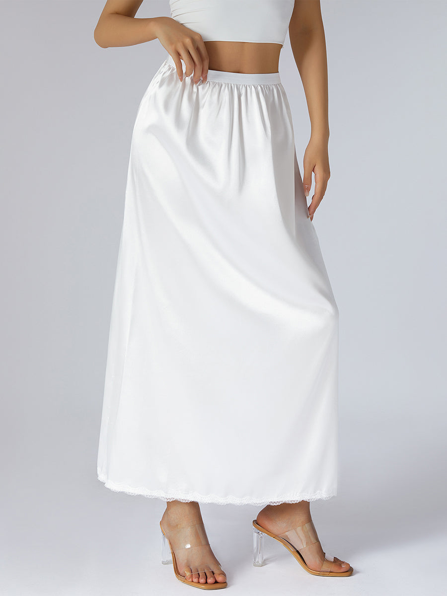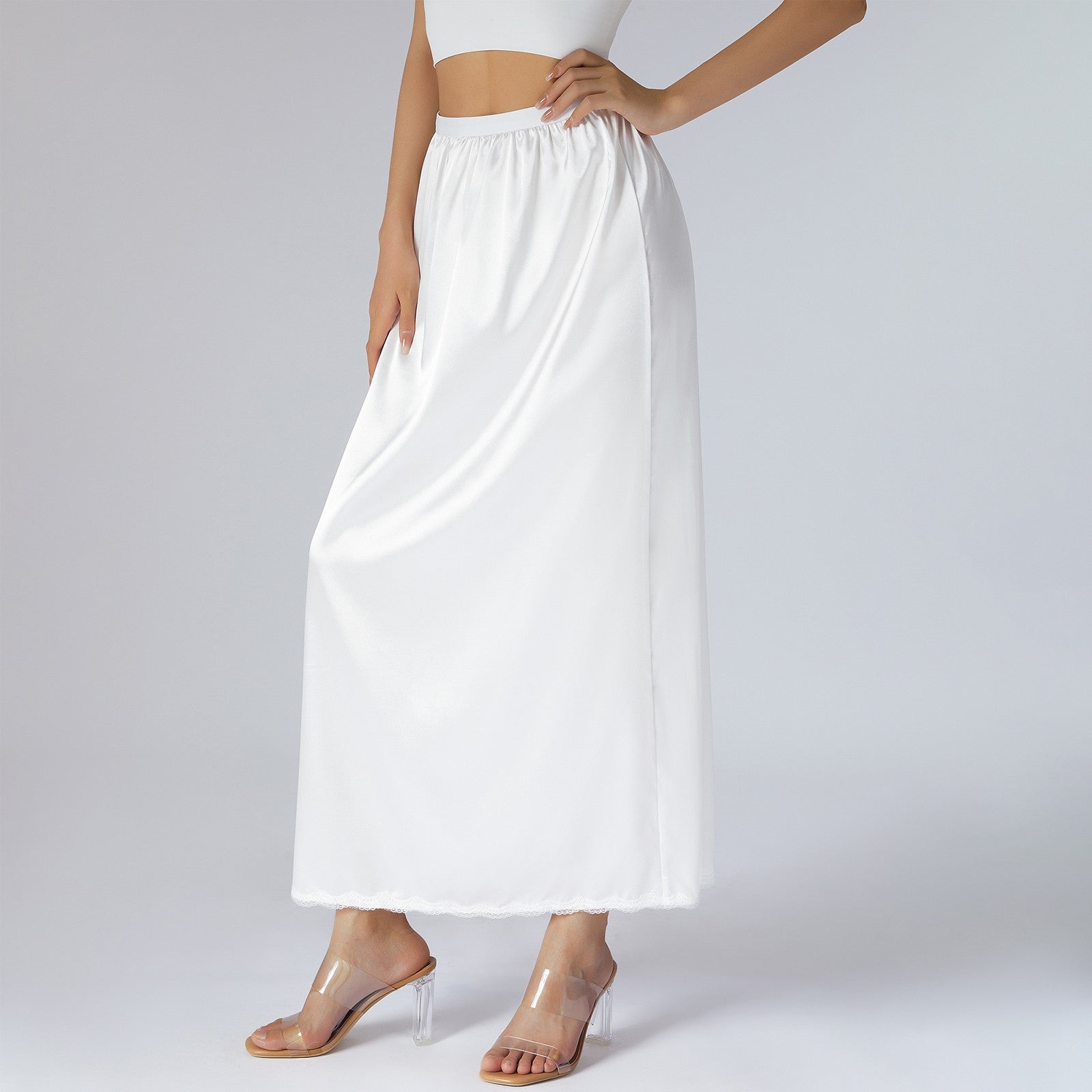Elastic Waist Inner Lining Midi Skirt Women Solid Color Satin Half Slip Underskirt Long Underskirt for Ladies White/Black/Yellow
