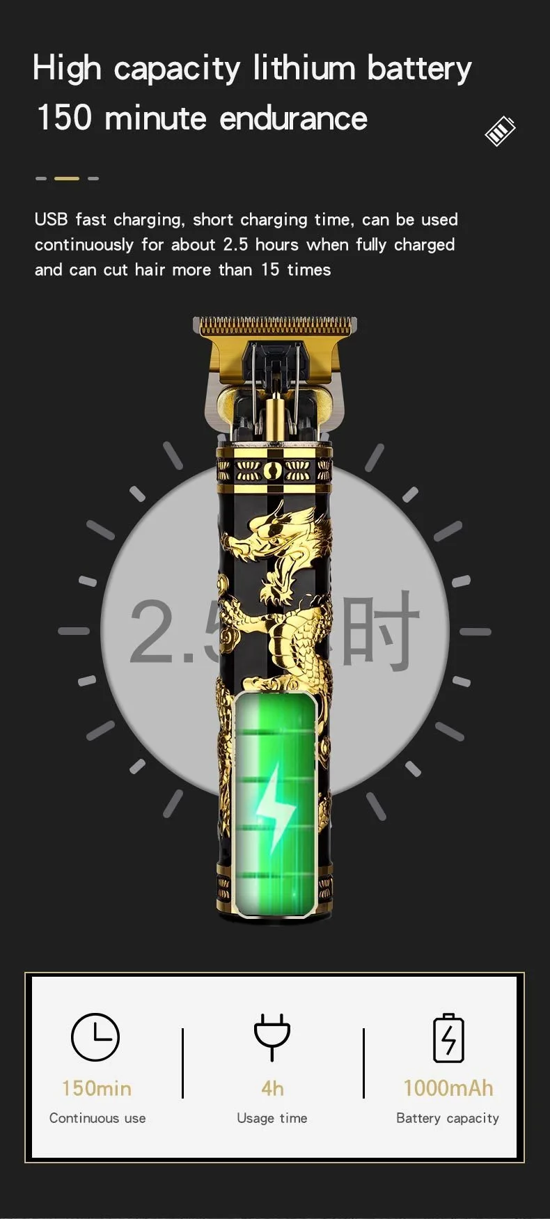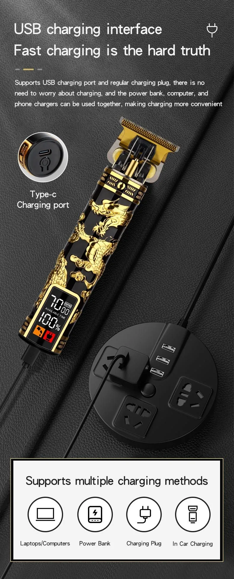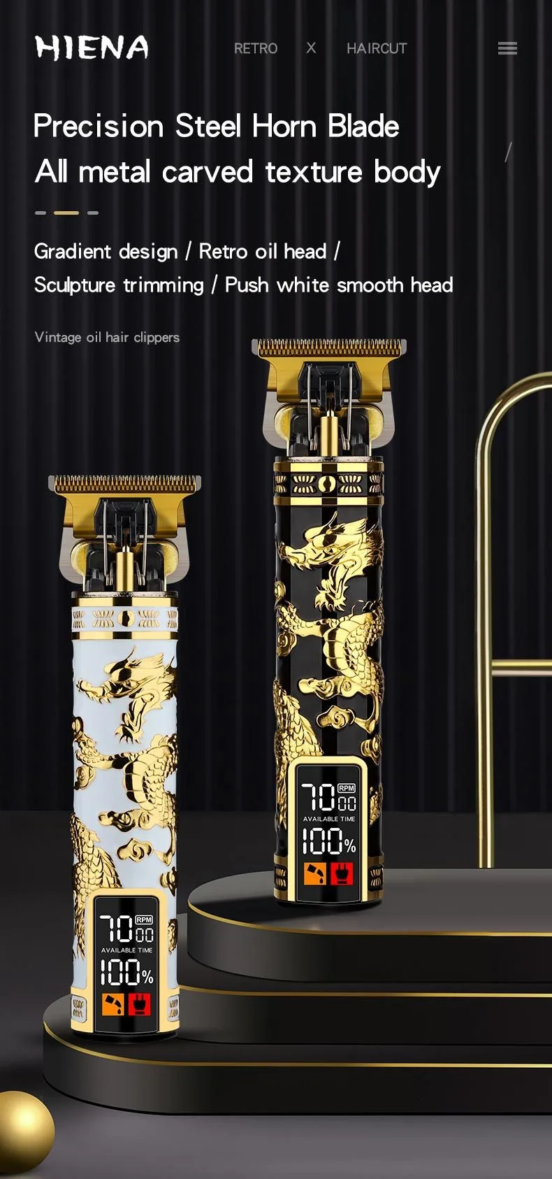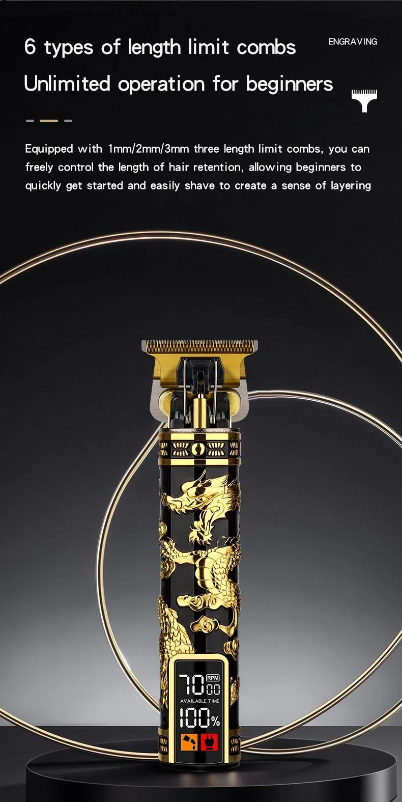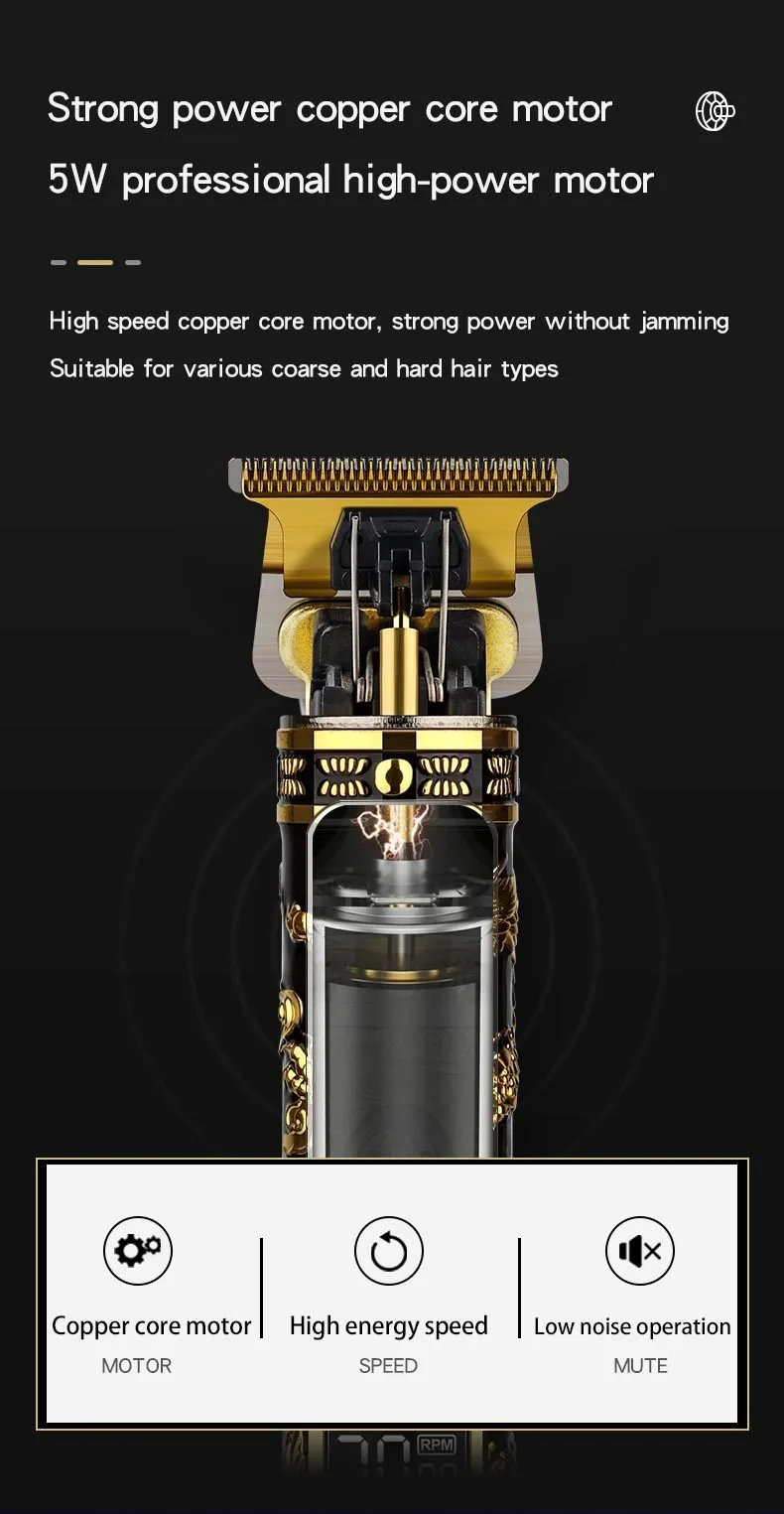 Electric Hair Clipper Professional Men's Hair Clipper LCD Display T-Blade Trimmer Zero Gap Cordless Rechargeable Men's Trimmer G