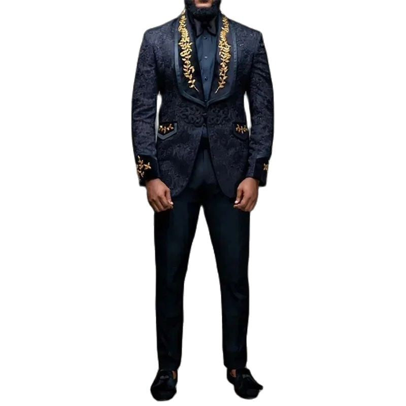 Elegant Black Blazer Formal Men's Suits Jacquard Fabric Shawl Lapel Single Breasted Luxury Male Clothing 1 Piece Jacket Costume