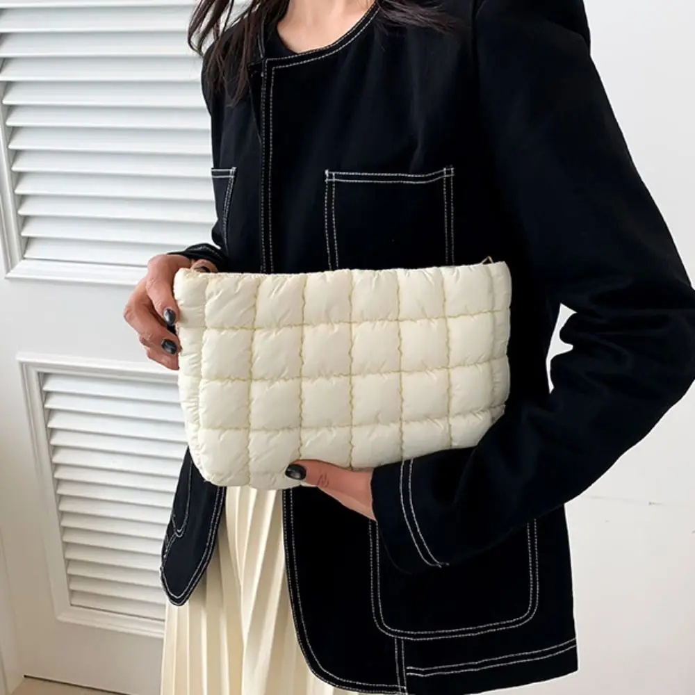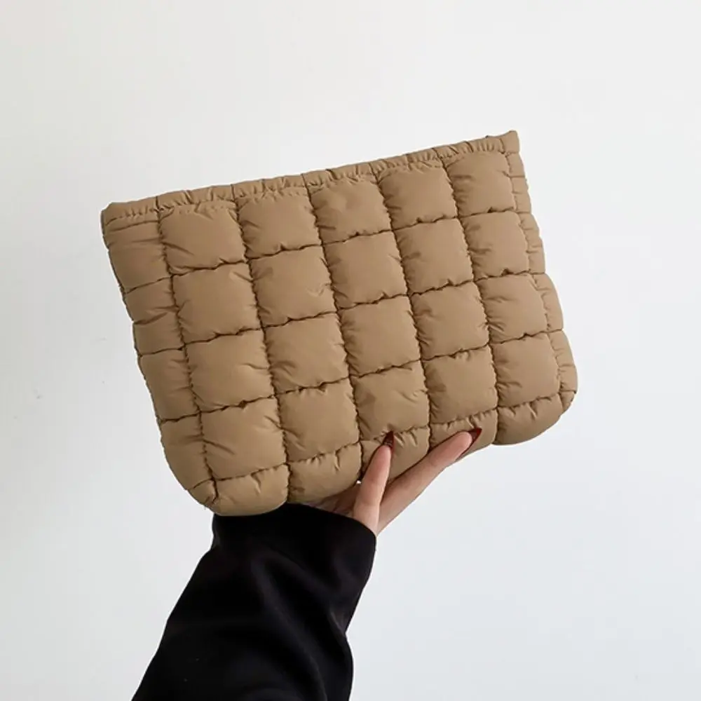 Elegant Puffy Quilted Padded Makeup Bag Zipper Storage Bag Cotton Clutch Bag Handbag Solid Color Cosmetic Bag Lady