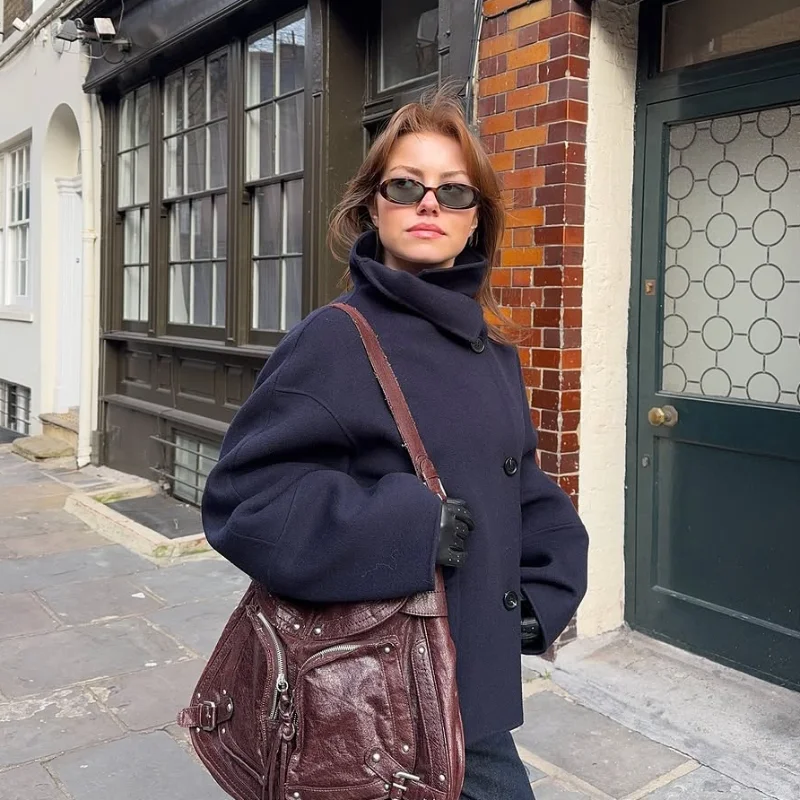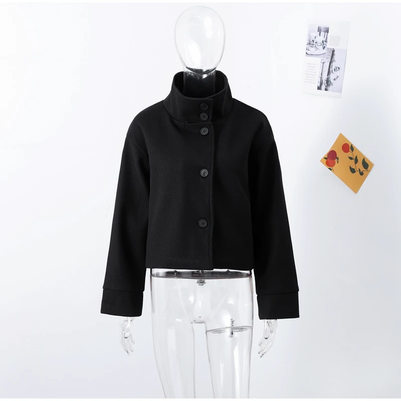 Elegant Stand Collar Woolen Jacket For Women Y2K Single Breasted Button Pockets Coat Lady 2025 Autumn Winter Street Chic Outwear